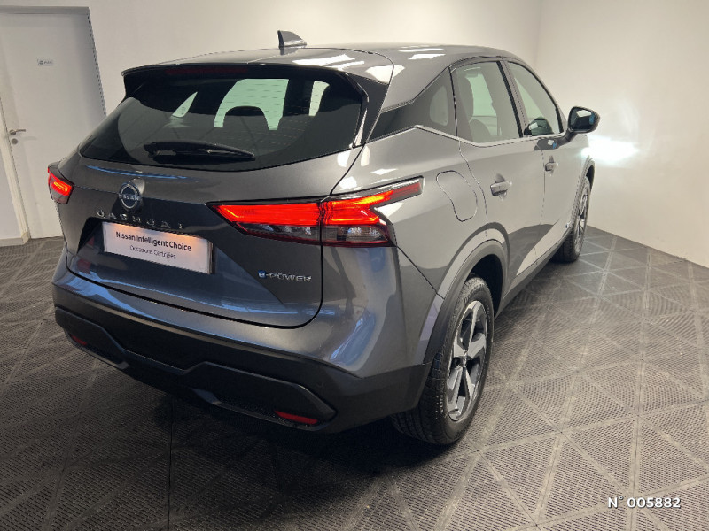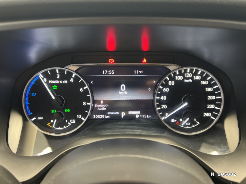 Freinage d'urgence anticollision AR / Système d'ouverture et de démarrage sans clé "Intelligent key" / Technologie e-Pedal Step / Trappe de carburant sans bouchon / Vitres électriques avec mode impulsionnel AV et AR et commande à distance / Volant et pommeau de levier de vitesses gainé cuir / Sélection du mode de conduite (ECO, STANDARD et SPORT) / Siège conducteur avec réglage lombaire électrique 2 voies / Siège conducteur avec réglage lombaire 2 voies / Système "Chassis Control" (contrôle actif de trajectoire et de l'assiette) / Système d'alerte anticollision AR intelligent avec détection des objets en mouvement / Système d'alerte prédictif anticollision frontale / Freinage d'urgence intelligent avec détection piétons, cyclistes et intersections / Habillage console centrale et contre-portes en TEP / Liseuses AV et AR / NBAS (amplificateur de freinage d'urgence) / Nissan Connect Services / Ouverture des portières AR à 85° / Pare-soleil côté conducteur et passager avec miroir de courtoisie éclairé / Poignées de maintien AV et AR / Poignées de maintien pour passager AV et AR / Points d'ancrage pour sièges enfants ISOFIX à l'AR (x2) / Port USB AV (USB-A) / Porte-gobelets AV (x2) / Prise 12V dans le coffre / Eclairage du coffre (x2) / Feu stop central LED / Feux de détresse à déclenchement automatique / Feux de route adaptatifs / Alarme périmétrique / Antenne aileron de requin / Badges e-POWER / Cache-bagages amovible / Chargeur à induction pour Smartphone 15W / Combiné d'instrumentation avec écran couleur TFT 7" / Commandes au volant: contrôle de l'ordinateur de bord, audio, téléphone, régulateur et limiteur de vitesse / Compartiment pour lunettes de soleil / Deuxième port USB AV (USB-A et USB-C) / ABS et EBD / Accoudoir central AR avec porte-gobelets (2) / Feux diurnes LED avec système Follow Me Home / Frein à main électrique avec aide au stationnement/démarrage et fonction Autohold