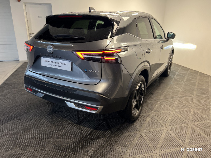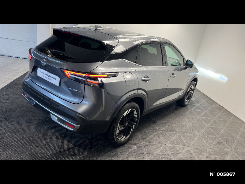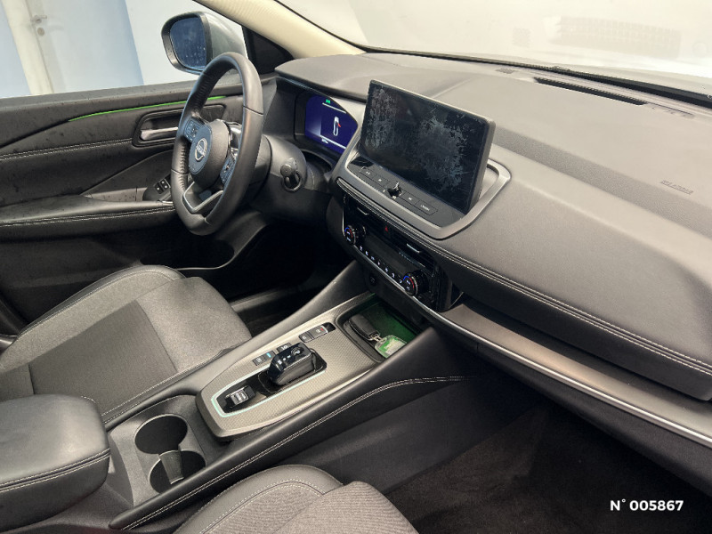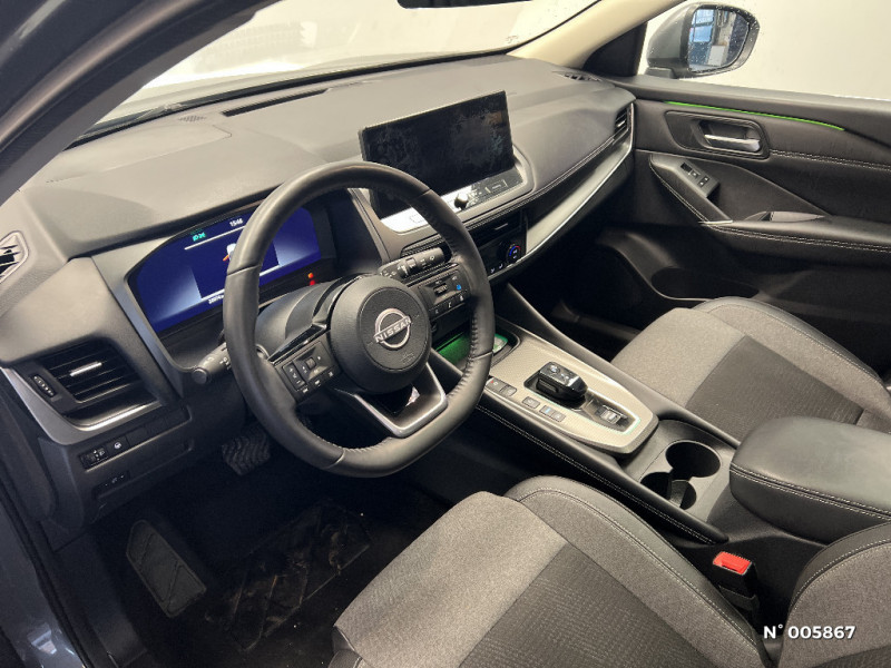 Rails de toit longitudinaux chromés / Régulateur de vitesse intelligent avec ajustement aux limitations de vitesse sur commande / Repose-genoux en TEP / Rétroviseur intérieur électrochromatique sans contour / Sélection du mode de conduite (ECO, STANDARD et SPORT) / Sellerie mixte TEP/Tissu (Noir) / Siège conducteur avec réglage lombaire électrique 2 voies / Système audio radio avec écran tactile 12,3" et 6 HP / Système "Chassis Control" (contrôle actif de trajectoire et de l'assiette) / Système d'alerte anticollision AR intelligent / Système d'alerte prédictif anticollision frontale / NissanConnect Services - Services télématiques avec accès à distance depuis un smartphone Service de commandes à distance, Géolocalisation du véhicule, Historique de conduite et de navigation, Rapports sur l'état de santé du véhicule et alertes de dysfonctionnement, Rappel des pas d'entretien, Aide et assistance Nissan, Point d'accès Wi-Fi, Alertes intelligentes, Compatibilité Amazon Alexa / Ouverture des portières AR à 85° / Pare-chocs AV et AR Noir mat / Pare-soleil côté conducteur et passager avec miroir de courtoisie éclairé / Plancher de coffre modulable / Poignées de maintien pour passager AV et AR / Points d'ancrage pour sièges enfants ISOFIX à l'AR (x2) / Porte-gobelets (x2) / Système de navigation NissanConnect avec services Google intégrés Google Maps, Google Assistant, Google Play Store, Live Traffic et cartes 3D, Navigation porte-à -porte, Recherche par Points d'Intérêt, Google Street View, Vue Satellite et Météo, Mise à jour des cartes et logiciels, Prix des carburants / Système d'ouverture et de démarrage sans clé "Intelligent key" avec fonction de verrouillage/ déverrouillage à l'approche du véhicule / Technologie e-Pedal Step / Trappe de carburant sans bouchon / 6 crochets de fixation dans le coffre (4 au plancher, 2 sur les côtés) / Feux de détresse à déclenchement automatique / Feux de route adaptatifs / Frein à main électrique avec aide au stationnement/démarrage et fonction Autohold / Freinage d'urgence anticollision AR / Freinage d'urgence intelligent avec détection piétons, cyclistes et intersections / Inserts de pare-chocs AV et AR Gris satiné / Kit de réparation pneumatique / Liseuses LED à l'AV et à l'AR / NBAS (amplificateur de freinage d'urgence) / Nissan AVM 3D - Vision Intelligente à 360° : système d'aide au stationnement qui facilite les manoeuvres de stationnement en vous offrant une vision à 360° : Caméra AR avec repères de gabarit, Caméra AV, Caméras latérales situées dans les rétroviseurs extérieurs, Radars 360°, Fonction ''capot transparent'', Mémorisation stationnement régulier et intersections / Prise 12V à l'AV (x1) et dans le coffre (x1) / ProPILOT avec Navi-link : technologie de conduite assistée Aide au maintien dans la voie, Freinage anticipé dans les courbes via la navigation, Assistant de conduite en embouteillage, Ajustement aux limitations de vitesse (automatique ou sur commande) / Alarme périmétrique / Alerte et prévention de sortie de voie / Antenne aileron de requin / Badges e-POWER / Boîte de vitesses automatique 1 rapports / Bouton d'accès rapide aux réglages des aides à la conduite / Buses de ventilation AR / Cache-bagages amovible / Chargeur à induction pour Smartphone 15W / Ciel de toit Gris clair / Clignotants AV et AR LED / Combiné d'instrumentation digital 12,3'' / Commandes au volant: contrôle de l'ordinateur de bord, audio, téléphone, régulateur et limiteur de vitesse / Compartiment pour lunettes de soleil (non disponible avec toit panoramique en verre) / Contre-portes et console centrale en TEP / Contrôle de traction électronique / Double port USB AR (USB-A et USB-C) / Double port USB AV et AR (USB-C) / Eclairage d'ambiance personnalisable (7 points lumineux) / Eclairage du coffre (x2) / Feu stop central LED / ABS (système antiblocage des freins) / Accoudoir central AR avec porte-gobelets (2)