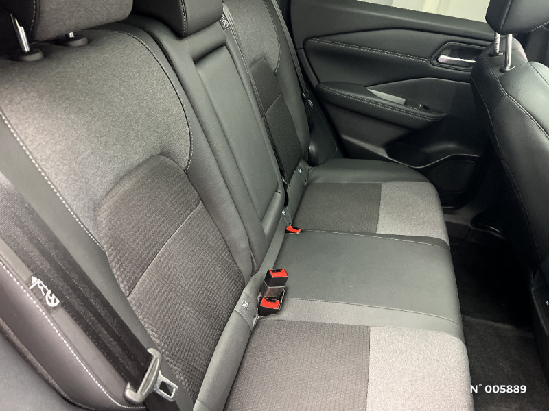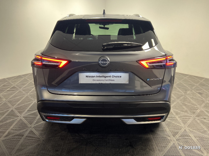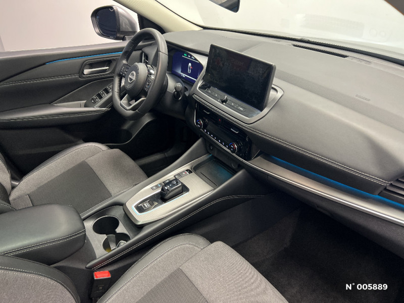 Boîte de vitesses automatique 1 rapports / Bouton d'accès rapide aux réglages des aides à la conduite / Buses de ventilation AR / Cache-bagages amovible / Chargeur à induction pour Smartphone 15W / Ciel de toit Gris clair / Clignotants AV et AR LED / Combiné d'instrumentation digital 12,3'' / Commandes au volant: contrôle de l'ordinateur de bord, audio, téléphone, régulateur et limiteur de vitesse / Compartiment pour lunettes de soleil (non disponible avec toit panoramique en verre) / Contre-portes et console centrale en TEP / Contrôle de traction électronique / NBAS (amplificateur de freinage d'urgence) / Nissan AVM 3D - Vision Intelligente à 360° : système d'aide au stationnement qui facilite les manoeuvres de stationnement en vous offrant une vision à 360° : Caméra AR avec repères de gabarit, Caméra AV, Caméras latérales situées dans les rétroviseurs extérieurs, Radars 360°, Fonction ''capot transparent'', Mémorisation stationnement régulier et intersections / NissanConnect Services - Services télématiques avec accès à distance depuis un smartphone Service de commandes à distance, Géolocalisation du véhicule, Historique de conduite et de navigation, Rapports sur l'état de santé du véhicule et alertes de dysfonctionnement, Rappel des pas d'entretien, Aide et assistance Nissan, Point d'accès Wi-Fi, Alertes intelligentes, Compatibilité Amazon Alexa / Ouverture des portières AR à 85° / Pare-chocs AV et AR Noir mat / Pare-soleil côté conducteur et passager avec miroir de courtoisie éclairé / ABS (système antiblocage des freins) / Accoudoir central AR avec porte-gobelets (2) / Alarme périmétrique / Alerte et prévention de sortie de voie / Antenne aileron de requin / Poignées de maintien pour passager AV et AR / Points d'ancrage pour sièges enfants ISOFIX à l'AR (x2) / Porte-gobelets (x2) / Prise 12V à l'AV (x1) et dans le coffre (x1) / ProPILOT avec Navi-link : technologie de conduite assistée Aide au maintien dans la voie, Freinage anticipé dans les courbes via la navigation, Assistant de conduite en embouteillage, Ajustement aux limitations de vitesse (automatique ou sur commande) / Rails de toit longitudinaux chromés / Régulateur de vitesse intelligent avec ajustement aux limitations de vitesse sur commande / Repose-genoux en TEP / Rétroviseur intérieur électrochromatique sans contour / Sélection du mode de conduite (ECO, STANDARD et SPORT) / Sellerie mixte TEP/Tissu (Noir) / Double port USB AR (USB-A et USB-C) / Double port USB AV et AR (USB-C) / Eclairage d'ambiance personnalisable (7 points lumineux) / Eclairage du coffre (x2) / Feu stop central LED / Feux de détresse à déclenchement automatique / Feux de route adaptatifs / Frein à main électrique avec aide au stationnement/démarrage et fonction Autohold / Freinage d'urgence anticollision AR / Freinage d'urgence intelligent avec détection piétons, cyclistes et intersections / Inserts de pare-chocs AV et AR Gris satiné / Kit de réparation pneumatique / Liseuses LED à l'AV et à l'AR / Siège conducteur avec réglage lombaire électrique 2 voies / Système audio radio avec écran tactile 12,3" et 6 HP / Système "Chassis Control" (contrôle actif de trajectoire et de l'assiette) / Système d'alerte anticollision AR intelligent / Système d'alerte prédictif anticollision frontale / Système de navigation NissanConnect avec services Google intégrés Google Maps, Google Assistant, Google Play Store, Live Traffic et cartes 3D, Navigation porte-à -porte, Recherche par Points d'Intérêt, Google Street View, Vue Satellite et Météo, Mise à jour des cartes et logiciels, Prix des carburants / Système d'ouverture et de démarrage sans clé "Intelligent key" avec fonction de verrouillage/ déverrouillage à l'approche du véhicule / Technologie e-Pedal Step / Trappe de carburant sans bouchon / 6 crochets de fixation dans le coffre (4 au plancher, 2 sur les côtés) / Plancher de coffre modulable / Badges e-POWER