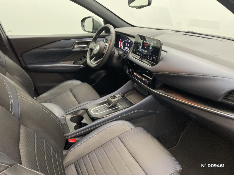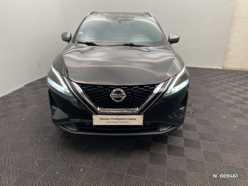 Feux de route intelligents avec 12 fasceaux indépendants / Feux diurnes LED avec système Follow Me Home / Frein à main électrique avec aide au stationnement/démarrage et fonction Autohold / Freinage d'urgence anticollision AR / Freinage d'urgence intelligent avec détection piétons, cyclistes et intersections / Habillage console centrale et contre-portes en TEP / Hayon électrique avec ouverture mains libres / Insert de pare-chocs AR couleur Argent / Insert de pare-chocs AR Gris satiné / Kit de réparation pneumatique / Liseuses AV et AR / NBAS (amplificateur de freinage d'urgence) / Nissan Connect Services / Ouverture des portières AR à 85° / Pack Navigation / Pack ProPilot / Pare-soleil côté conducteur et passager avec miroir de courtoisie éclairé / Peinture opaque monoton / Plancher de coffre modulable / Poignées de maintien AV et AR / Poignées de maintien pour passager AV et AR / Points d'ancrage pour sièges enfants ISOFIX à l'AR (x2) / Pommeau de levier de vitesse gainé de cuir / Port USB AV (USB-A) / Porte-gobelets AV (x2) / Prise 12V dans le coffre / ProPILOT avec Navi-link : technologie de conduite assistée / ABS et EBD / Accoudoir central AR avec porte-gobelets (2) / Alarme périmétrique / Système "Chassis Control" (contrôle actif de trajectoire et de l'assiette) / Système d'alerte anticollision AR intelligent avec détection des objets en mouvement / Système d'alerte prédictif anticollision frontale / Système d'ouverture et de démarrage sans clé "Intelligent key" / Trappe de carburant sans bouchon / Vitres électriques avec mode impulsionnel AV et AR et commande à distance / Volant et pommeau de levier de vitesses gainé cuir / Antenne aileron de requin / Buses de ventilation AR / Cache-bagages amovible / Chargeur à induction pour Smartphone 15W / Ciel de toit Noir / Clignotants AV et AR LED / Combiné d'instrumentation digital avec écran 12,3'' TFT / Repose-genoux en TEP (Tissu Enduit) / Rétroviseur intérieur électrochromatique / Sélection du mode de conduite (ECO, STANDARD et SPORT) / Sellerie mixte TEP/Tissu Noir Bleuté ou Gris Clair / Siège conducteur avec réglage lombaire électrique 8 voies / Siège passager avec réglage lombaire manuel 2 voies / Commandes au volant: contrôle de l'ordinateur de bord, audio, téléphone, régulateur et limiteur de vitesse / Compartiment pour lunettes de soleil / Crochets d'arrimage (6) dans le coffre / Deuxième port USB AV (USB-A et USB-C) / Double port USB AR (USB-A et USB-C) / Eclairage d'ambiance (contre-portes et console centrale) / Eclairage du coffre (x2) / Feu stop central LED / Feux de détresse à déclenchement automatique