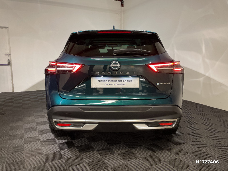 Nissan AVM 3D - Vision Intelligente à 360° : système d'aide au stationnement qui facilite les manoeuvres de stationnement en vous offrant une vision à 360° : Caméra AR avec repères de gabarit, Caméra AV, Caméras latérales situées dans les rétroviseurs extérieurs, Radars 360°, Fonction ''capot transparent'', Mémorisation stationnement régulier et intersections / NissanConnect Services - Services télématiques avec accès à distance depuis un smartphone Service de commandes à distance, Géolocalisation du véhicule, Historique de conduite et de navigation, Rapports sur l'état de santé du véhicule et alertes de dysfonctionnement, Rappel des pas d'entretien, Aide et assistance Nissan, Point d'accès Wi-Fi, Alertes intelligentes, Compatibilité Amazon Alexa / Ouverture des portières AR à 85° / Pare-chocs AV et AR Noir mat / Pare-soleil côté conducteur et passager avec miroir de courtoisie éclairé / Plancher de coffre modulable / Poignées de maintien pour passager AV et AR / Points d'ancrage pour sièges enfants ISOFIX à l'AR (x2) / Porte-gobelets (x2) / Prise 12V à l'AV (x1) et dans le coffre (x1) / ABS (système antiblocage des freins) / Accoudoir central AR avec porte-gobelets (2) / Alarme périmétrique / Alerte et prévention de sortie de voie / Antenne aileron de requin / Badges e-POWER / Boîte de vitesses automatique 1 rapports / Bouton d'accès rapide aux réglages des aides à la conduite / Buses de ventilation AR / Cache-bagages amovible / Chargeur à induction pour Smartphone 15W / Ciel de toit Gris clair / Liseuses LED à l'AV et à l'AR / Technologie e-Pedal Step / Trappe de carburant sans bouchon / 6 crochets de fixation dans le coffre (4 au plancher, 2 sur les côtés) / ProPILOT avec Navi-link : technologie de conduite assistée Aide au maintien dans la voie, Freinage anticipé dans les courbes via la navigation, Assistant de conduite en embouteillage, Ajustement aux limitations de vitesse (automatique ou sur commande) / Rails de toit longitudinaux chromés / Régulateur de vitesse intelligent avec ajustement aux limitations de vitesse sur commande / Repose-genoux en TEP / Rétroviseur intérieur électrochromatique sans contour / Sélection du mode de conduite (ECO, STANDARD et SPORT) / Sellerie mixte TEP/Tissu (Noir) / Siège conducteur avec réglage lombaire électrique 2 voies / Système audio radio avec écran tactile 12,3" et 6 HP / Système "Chassis Control" (contrôle actif de trajectoire et de l'assiette) / Système d'alerte anticollision AR intelligent / Système d'alerte prédictif anticollision frontale / Système de navigation NissanConnect avec services Google intégrés Google Maps, Google Assistant, Google Play Store, Live Traffic et cartes 3D, Navigation porte-à -porte, Recherche par Points d'Intérêt, Google Street View, Vue Satellite et Météo, Mise à jour des cartes et logiciels, Prix des carburants / Système d'ouverture et de démarrage sans clé "Intelligent key" avec fonction de verrouillage/ déverrouillage à l'approche du véhicule / Clignotants AV et AR LED / Combiné d'instrumentation digital 12,3'' / Commandes au volant: contrôle de l'ordinateur de bord, audio, téléphone, régulateur et limiteur de vitesse / Compartiment pour lunettes de soleil (non disponible avec toit panoramique en verre) / Contre-portes et console centrale en TEP / Contrôle de traction électronique / Double port USB AR (USB-A et USB-C) / Double port USB AV et AR (USB-C) / Eclairage d'ambiance personnalisable (7 points lumineux) / Eclairage du coffre (x2) / Feu stop central LED / Feux de détresse à déclenchement automatique / Feux de route adaptatifs / Frein à main électrique avec aide au stationnement/démarrage et fonction Autohold / Freinage d'urgence anticollision AR / Freinage d'urgence intelligent avec détection piétons, cyclistes et intersections / Inserts de pare-chocs AV et AR Gris satiné / Kit de réparation pneumatique / NBAS (amplificateur de freinage d'urgence)