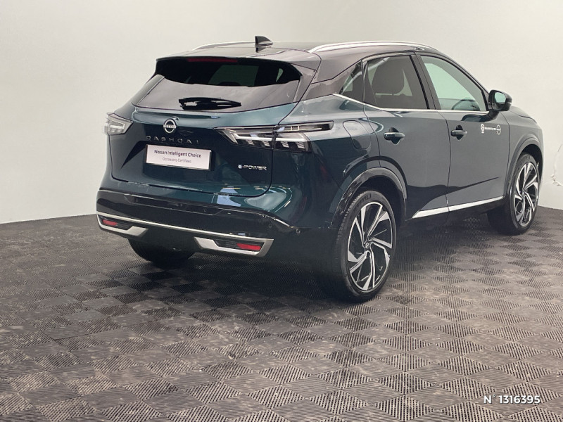 ABS (système antiblocage des freins) / Accoudoir central AR avec porte-gobelets (2) / Alarme périmétrique / Alerte et prévention de sortie de voie / Chargeur à induction pour Smartphone 15W / Ciel de toit Noir / Clignotants AV et AR à défilement / Clignotants AV et AR LED / Commandes au volant: contrôle de l'ordinateur de bord, audio, téléphone, régulateur et limiteur de vitesse / Compartiment pour lunettes de soleil / Contre-portes et console centrale en TEP / Contrôle de la traction (TCS) / Double port USB AR (USB-A et USB-C) / Double port USB AV et AR (USB-C) / Eclairage d'ambiance personnalisable / Eclairage du coffre (x2) / Feu stop central LED / Feux AR "Super-RED" / Feux de détresse à déclenchement automatique / Feux de route adaptatifs / Feux de route intelligents matrix LED avec 12 fasceaux indépendants / Frein à main électrique avec aide au stationnement/démarrage et fonction Autohold / Freinage d'urgence anticollision AR / Freinage d'urgence intelligent avec détection piétons, cyclistes et intersections / Garantie anticorrosion - perforation 12 ans, kilométrage illimité / Garantie Nissan Privilège Jusqu'à 8 ans de Garantie (moteur, boîte, pont) + Jusqu'à 8 ans d'Assistance 24h/24, 7j/7. Jusqu'à 8 ans ou 160 000 km, conditionnéà entretien annuel dans le réseau Nissan / Combiné d'instrumentation digital 12,3'' / Garantie peinture 3 ans, kilométrage illimité / Garantie sur tous les composants spécifiques Hybrid, e-POWER 5 ans (limitée à 100 000 km) Liste non exhaustive des composants inclus : batterie lithium-ion, moteur électrique, onduleur, générateur, système de refroidissement de la batterie, etc... / Garantie véhicule neuf 3 ans (limitée à 100 000 km) / Inserts de pare-chocs AV et AR Gris satiné / Kit de réparation pneumatique / Liseuses LED à l'AV et à l'AR / Mémorisation des réglages via l'Intelligent Key (siège conducteur et rétroviseurs extérieurs) / NBAS (amplificateur de freinage d'urgence) / Nissan AVM 3D - Vision Intelligente à 360° : système d'aide au stationnement qui facilite les manoeuvres de stationnement en vous offrant une vision à 360° : Caméra AR avec repères de gabarit, Caméra AV, Caméras latérales situées dans les rétroviseurs extérieurs, Radars 360°, Fonction ''capot transparent'', Mémorisation stationnement régulier et intersections / NissanConnect Services - Services télématiques avec accès à distance depuis un smartphone - Géolocalisation du véhicule - Historique de navigation - Point d'accès WiFi / NissanConnect Services - Services télématiques avec accès à distance depuis un smartphone Services de commandes à distance - Historique de conduite - Mise à jour à distance - Rapports sur l'état de santé du véhicule et alertes de dysfonctionnement - Rappels des pas d'entretien - Aide et assistance Nissan - Alertes intelligentes / Ouverture des portières AR à 85° / Pack Confort - Affichage tête haute 10,8" - Coffre électrique / Pack Confort Plus - Siège conducteur électrique et à mémoire - Rétroviseurs extérieurs à mémoire - Affichage tête haute 10,8" - Coffre électrique / Pack Hiver - Sièges AV chauffants - Volant chauffant - Pare-brise chauffant / Pare-chocs AV et AR Noir brillant / Pare-soleil côté conducteur et passager avec miroir de courtoisie éclairé / Peinture bi-ton / Planche de bord en suèdine / Planche de bord en TEP / Plancher de coffre modulable / Poignées de maintien pour passager AV et AR / Points d'ancrage pour sièges enfants ISOFIX à l'AR (x2) / Porte-gobelets (x2) / Prise 12V à l'AV (x1) et dans le coffre (x1) / ProPILOT avec Navi-link : technologie de conduite assistée Aide au maintien dans la voie, Freinage anticipé dans les courbes via la navigation, Assistant de conduite en embouteillage, Ajustement aux limitations de vitesse (automatique ou sur commande) / ProPILOT Park : technologie de stationnement automatique / Rails de toit longitudinaux chromés / Régulateur de vitesse intelligent avec ajustement aux limitations de vitesse sur commande / Repose-genoux en suédine / Rétroviseur intérieur électrochromatique sans contour / Sélection du mode de conduite (ECO, STANDARD et SPORT) / Sellerie en cuir matelassé Noir avec inserts suédine / Siège conducteur avec réglages électriques 8 voies / Siège passager avec réglage électrique / Siège passager avec réglage lombaire électrique 4 voies / Sièges AV avec fonction massage (3 modes) / Signature lumineuse AV à 2 étages / Système audio Bose Premium avec 10 HP et un caisson de basses Acoustimass / Système "Chassis Control" (contrôle actif de trajectoire et de l'assiette) / Système d'alerte anticollision AR intelligent / Système d'alerte prédictif anticollision frontale / Système de navigation NissanConnect avec services Google intégrés Google Maps, Google Assistant, Google Play Store, Live Traffic et cartes 3D, Navigation porte-à -porte, Recherche par Points d'Intérêt, Google Street View, Vue Satellite et Météo, Mise à jour des cartes et logiciels, Prix des carburants / Système d'ouverture et de démarrage sans clé "Intelligent key" avec fonction de verrouillage/ déverrouillage à l'approche du véhicule / Technologie e-Pedal Step / Trappe de carburant sans bouchon / 6 crochets de fixation dans le coffre (4 au plancher, 2 sur les côtés) / Antenne aileron de requin Noir / Badges e-POWER / Bas de caisse noir brillant / Boîte de vitesses automatique 1 rapports / Bouton d'accès rapide aux réglages des aides à la conduite / Buses de ventilation AR / Cache-bagages amovible