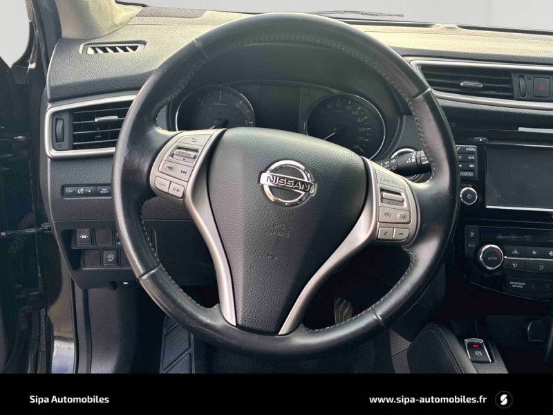 ABS et EBD / Accoudoir AR avec porte-gobelets / Ajustement lombaire sur sièges AV / Contour des vitres latérales chromé / Démarrage avec bouton Stop/Start / Direction assistée électrique ajustable (mode Sport ou Normal) / Eclairage d'ambiance intérieur / Feux antibrouillard AV avec cerclages chromés / Feux diurnes à LED avec signature lumineuse / Frein à main électrique / Kit de réparation pneumatique / Nissan AVM - Vision 360° / Nissan Safety Shield / Ordinateur de bord avec écran TFT couleur HD 5" / Pare-soleil conducteur et passager avec miroir de courtoisie / Plancher de coffre modulable / Poignées de portières extérieures couleur carrosserie / Points d'ancrage de siège enfants ISOFIX à l'AR / Pommeau de levier de vitesses et volant gainés cuir / Prise 12V sur console centrale AV / Prise auxiliaire jack 3.5" dans accoudoir central AV / Protection de bas de caisse noire / Rétroviseur intérieur électrochromatique / Sièges AV anti-fatigue / Stop/Start Nissan / Système "Châssis Control" / Système d'ouverture et de démarrage sans clé "Intelligent key" / Vitres latérales AR et vitre de hayon surteintées