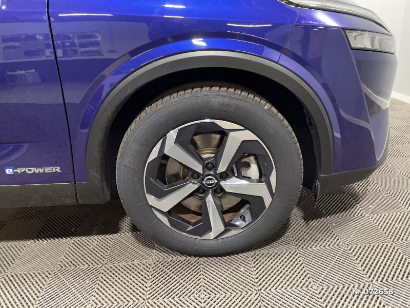 ABS et EBD / Badges e-POWER / Système d'alerte prédictif anticollision frontale / Deuxième port USB AV (USB-A et USB-C) / Double port USB AR (USB-A et USB-C) / Eclairage d'ambiance (console centrale) / Eclairage d'ambiance linéaire / Eclairage du coffre (x2) / Feu stop central LED / Feux de détresse à déclenchement automatique / Feux de route adaptatifs / Feux diurnes LED avec système Follow Me Home / Frein à main électrique avec aide au stationnement/démarrage et fonction Autohold / Freinage d'urgence anticollision AR / Freinage d'urgence intelligent avec détection piétons, cyclistes et intersections / Habillage console centrale et contre-portes en TEP / Insert de pare-chocs AR Gris satiné / Kit de réparation pneumatique / NBAS (amplificateur de freinage d'urgence) / Nissan Connect Services / Ouverture des portières AR à 85° / Pack Navigation / Pare-soleil côté conducteur et passager avec miroir de courtoisie éclairé / Peinture opaque monoton / Plancher de coffre modulable / Poignées de maintien AV et AR / Poignées de maintien pour passager AV et AR / Points d'ancrage pour sièges enfants ISOFIX à l'AR (x2) / Port USB AV (USB-A) / Porte-gobelets AV (x2) / Prise 12V dans le coffre / Buses de ventilation AR / Cache-bagages amovible / Chargeur à induction pour Smartphone 15W / Combiné d'instrumentation digital avec écran 12,3'' TFT / Commandes au volant: contrôle de l'ordinateur de bord, audio, téléphone, régulateur et limiteur de vitesse / Compartiment pour lunettes de soleil / Crochets d'arrimage (6) dans le coffre / Accoudoir central AR avec porte-gobelets (2) / Alarme périmétrique / Antenne aileron de requin / Liseuses AV et AR / Repose-genoux en TEP (Tissu Enduit) / Rétroviseur intérieur électrochromatique / Sélection du mode de conduite (ECO, STANDARD et SPORT) / Sellerie Tissu Noir et Gris / Siège conducteur avec réglage lombaire électrique 2 voies / Siège conducteur avec réglage lombaire 2 voies / Système "Chassis Control" (contrôle actif de trajectoire et de l'assiette) / Système d'alerte anticollision AR intelligent avec détection des objets en mouvement / Vitres électriques avec mode impulsionnel AV et AR et commande à distance / Volant et pommeau de levier de vitesses gainé cuir / Système d'ouverture et de démarrage sans clé "Intelligent key" / Technologie e-Pedal Step / Trappe de carburant sans bouchon