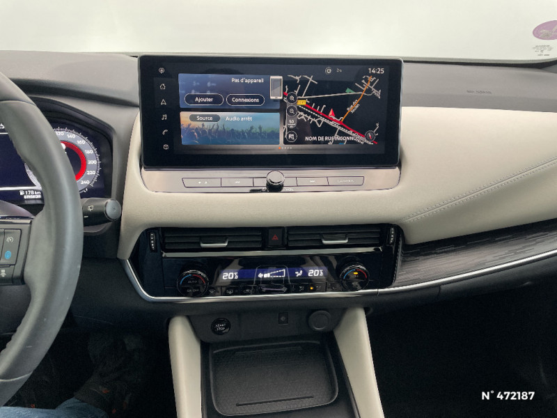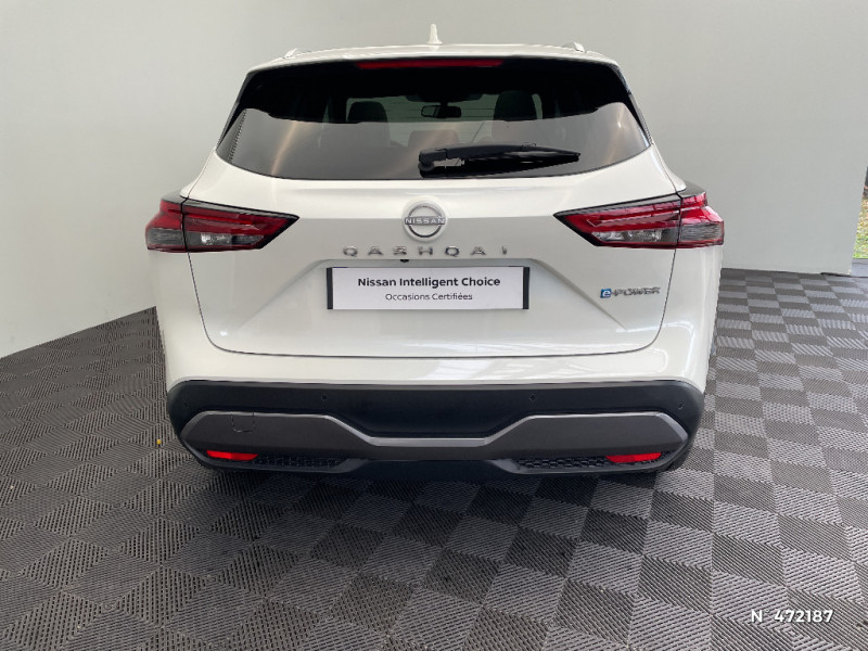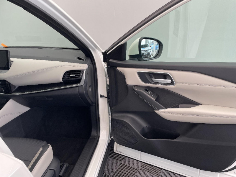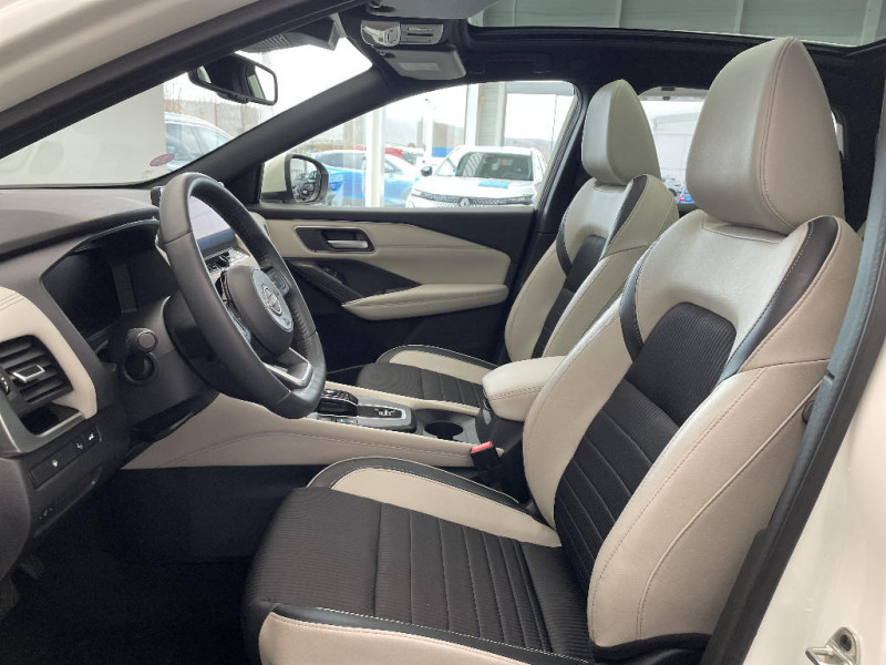 Repose-genoux en TEP (Tissu Enduit) / Rétroviseur intérieur électrochromatique / Système d'ouverture et de démarrage sans clé "Intelligent key" / Technologie e-Pedal Step / Trappe de carburant sans bouchon / Vitres électriques avec mode impulsionnel AV et AR et commande à distance / Volant et pommeau de levier de vitesses gainé cuir / Deuxième port USB AV (USB-A et USB-C) / Double port USB AR (USB-A et USB-C) / Eclairage d'ambiance (contre-portes et console centrale) / Eclairage du coffre (x2) / Feu stop central LED / Feux de détresse à déclenchement automatique / Feux de route intelligents avec 12 fasceaux indépendants / Feux diurnes LED avec système Follow Me Home / Frein à main électrique avec aide au stationnement/démarrage et fonction Autohold / Freinage d'urgence anticollision AR / Freinage d'urgence intelligent avec détection piétons, cyclistes et intersections / Habillage console centrale et contre-portes en TEP / Hayon électrique avec ouverture mains libres / Insert de pare-chocs AR Gris satiné / Kit de réparation pneumatique / Liseuses AV et AR / NBAS (amplificateur de freinage d'urgence) / Nissan Connect Services / Ouverture des portières AR à 85° / Pack Navigation / Pack ProPilot / Pare-soleil côté conducteur et passager avec miroir de courtoisie éclairé / Peinture opaque monoton / Plancher de coffre modulable / Poignées de maintien AV et AR / Poignées de maintien pour passager AV et AR / Points d'ancrage pour sièges enfants ISOFIX à l'AR (x2) / Port USB AV (USB-A) / Porte-gobelets AV (x2) / Prise 12V dans le coffre / ProPILOT Park : technologie de stationnement automatique / Sélection du mode de conduite (ECO, STANDARD et SPORT) / Sellerie mixte TEP/Tissu Noir Bleuté ou Gris Clair / Siège conducteur avec réglage lombaire électrique 8 voies / Siège passager avec réglage lombaire manuel 2 voies / Système "Chassis Control" (contrôle actif de trajectoire et de l'assiette) / Système d'alerte anticollision AR intelligent avec détection des objets en mouvement / Système d'alerte prédictif anticollision frontale / ABS et EBD / Accoudoir central AR avec porte-gobelets (2) / Alarme périmétrique / Antenne aileron de requin / Badges e-POWER / Buses de ventilation AR / Cache-bagages amovible / Chargeur à induction pour Smartphone 15W / Ciel de toit Noir / Clignotants AV et AR LED / Combiné d'instrumentation digital avec écran 12,3'' TFT / Commandes au volant: contrôle de l'ordinateur de bord, audio, téléphone, régulateur et limiteur de vitesse / Compartiment pour lunettes de soleil / Crochets d'arrimage (6) dans le coffre