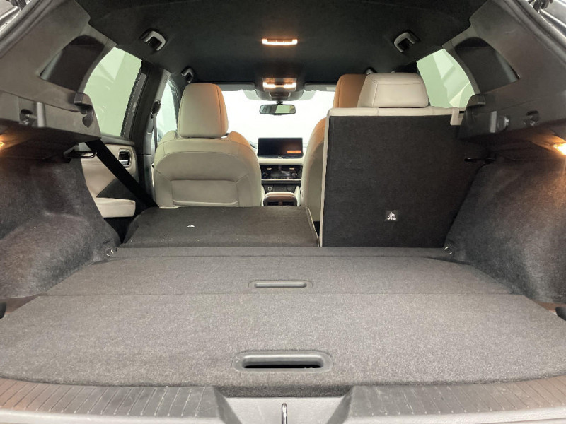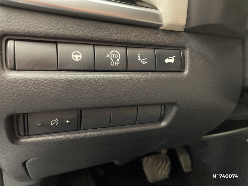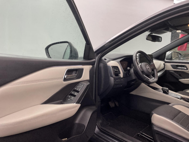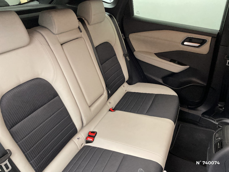 Vitres électriques avec mode impulsionnel AV et AR et commande à distance / Volant et pommeau de levier de vitesses gainé cuir / Habillage console centrale et contre-portes en TEP / Hayon électrique avec ouverture mains libres / Insert de pare-chocs AR couleur Argent / Insert de pare-chocs AR Gris satiné / Kit de réparation pneumatique / Liseuses AV et AR / NBAS (amplificateur de freinage d'urgence) / Nissan Connect Services / Ouverture des portières AR à 85° / Pack Navigation / Pack ProPilot / Pare-soleil côté conducteur et passager avec miroir de courtoisie éclairé / Peinture opaque monoton / Plancher de coffre modulable / Poignées de maintien AV et AR / Poignées de maintien pour passager AV et AR / Points d'ancrage pour sièges enfants ISOFIX à l'AR (x2) / Combiné d'instrumentation digital avec écran 12,3'' TFT / Commandes au volant: contrôle de l'ordinateur de bord, audio, téléphone, régulateur et limiteur de vitesse / Compartiment pour lunettes de soleil / Crochets d'arrimage (6) dans le coffre / Deuxième port USB AV (USB-A et USB-C) / Double port USB AR (USB-A et USB-C) / Eclairage d'ambiance (contre-portes et console centrale) / Eclairage du coffre (x2) / Feu stop central LED / Feux de détresse à déclenchement automatique / Feux de route intelligents avec 12 fasceaux indépendants / Feux diurnes LED avec système Follow Me Home / Frein à main électrique avec aide au stationnement/démarrage et fonction Autohold / Freinage d'urgence anticollision AR / Freinage d'urgence intelligent avec détection piétons, cyclistes et intersections / Sélection du mode de conduite (ECO, STANDARD et SPORT) / Sellerie mixte TEP/Tissu Noir Bleuté ou Gris Clair / Siège conducteur avec réglage lombaire électrique 8 voies / Siège passager avec réglage lombaire manuel 2 voies / Système "Chassis Control" (contrôle actif de trajectoire et de l'assiette) / Système d'alerte anticollision AR intelligent avec détection des objets en mouvement / Système d'alerte prédictif anticollision frontale / Système d'ouverture et de démarrage sans clé "Intelligent key" / Trappe de carburant sans bouchon / Pommeau de levier de vitesse gainé de cuir / Port USB AV (USB-A) / Porte-gobelets AV (x2) / Prise 12V dans le coffre / ProPILOT avec Navi-link : technologie de conduite assistée / Repose-genoux en TEP (Tissu Enduit) / Rétroviseur intérieur électrochromatique / ABS et EBD / Accoudoir central AR avec porte-gobelets (2) / Alarme périmétrique / Antenne aileron de requin / Buses de ventilation AR / Cache-bagages amovible / Chargeur à induction pour Smartphone 15W / Ciel de toit Noir / Clignotants AV et AR LED