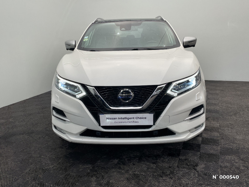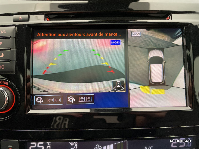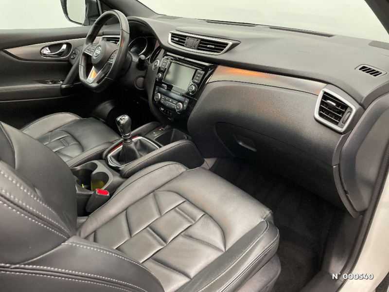 Pare-brise chauffant / Pare-soleil côtés conducteur et passager avec miroir de courtoisie éclairé / Peinture opaque / Plancher de coffre modulable - 16 combinaisons / Poignée interieure d'ouverture porte chromée / Poignées de porte couleur carrosserie / Points d'ancrage de siège enfants ISOFIX à l'AR / Porte-gobelets AR / Porte-gobelets AV / Prise auxiliaire jack 3.5" dans accoudoir central AV / Radio digitale-Réception (DAB) / Rétroviseurs extérieurs avec finition argent premium / Rétroviseurs extérieurs avec fonction mémoire et fonction marche AR / Rétroviseurs extérieurs avec indicateurs de changement de direction à LED / Sellerie Cuir Nappa Noire ou Prune (sièges AV électriques, siège conducteur/rétroviseurs avec fonction mémoire, ciel de toit Noir, réglage lombaire électrique pour le conducteur) / Siège conducteur avec réglage lombaire électrique / Sièges AV avec réglage lombaire / Sièges AV "monoform style" / Sièges AV réglables électriquement (conducteur avec fonction mémoire) / Sièges AV sport "monoform style" / Système audio Premium BOSE, 8 haut-parleurs (dont 2 caissons de basse), amplificateur digital / Système audio radio avec ecran tactile 7" avec interface personnalisable, Apple CarPlay, Android Auto, commandes vocales / Système audio Radio, CD/MP3, connexion USB / ABS Système antiblocage des freins / Allumage intelligent des phares / Antenne aileron de requin / Barres de toit longitudinales couleur argent / Système "Châssis Control" / Système d'aide au stationnement : Caméra AR avec repères de gabarit, Caméra AV, Caméras latérales si situées dans les rétroviseurs extérieurs / Vitres latérales AR et vitre de hayon surteintées / Volant et levier de vitesse gainés cuir / Ciel de toit noir / Commandes au volant (audio, Bluetooth, régulateur et limiteur de vitesse, contrôle de l'ordinateur de bord) / Contour des vitres latérales chromé / Direction assistée électrique ajustable (mode Sport ou Normal) / Eclairage d'ambiance intérieur / Fermeture et ouverture centralisées des portes et vitres à distance / Feux AR avec signature LED et effet 3D / Feux de routes LED directionnels / Feux diurnes à LED avec signature lumineuse / Feux diurnes LED avec clignotants intégrés / Fonction Autohold (aide au stationnement/démarrage) / Frein à main électrique / Inserts couleur argent pare-chocs AR / Inserts couleur argent pare-chocs AV / Inserts de porte et planche de bord en argent mat 3D / Kit de réparation pneumatique / Nissan Connect : Système de navigation multimédia avec écran tactile couleur 7" / Ordinateur de bord avec écran TFT couleur HD 5" / Pack Design / Pack Navi / Pack Securité / Pack Securité Plus