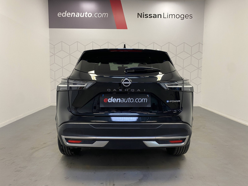6 crochets de fixation dans le coffre (4 au plancher, 2 sur les côtés) / ABS (système antiblocage des freins) / Accoudoir central AR avec porte-gobelets (2) / Alarme périmétrique / Alerte et prévention de sortie de voie / Antenne aileron de requin Noir / Badges e-POWER / Boîte de vitesses automatique 1 rapports / Bouton d'accès rapide aux réglages des aides à la conduite / Buses de ventilation AR / Cache-bagages amovible / Chargeur à induction pour Smartphone 15W / Ciel de toit Gris clair / Clignotants AV et AR LED / Combiné d'instrumentation digital 12,3'' / Commandes au volant: contrôle de l'ordinateur de bord, audio, téléphone, régulateur et limiteur de vitesse / Compartiment pour lunettes de soleil / Contre-portes et console centrale en TEP / Contrôle de la traction (TCS) / Double port USB AR (USB-A et USB-C) / Double port USB AV et AR (USB-C) / Eclairage d'ambiance personnalisable / Eclairage du coffre (x2) / Feu stop central LED / Feux de détresse à déclenchement automatique / Feux de route adaptatifs / Freinage d'urgence anticollision AR / Freinage d'urgence intelligent avec détection piétons, cyclistes et intersections / Frein à main électrique avec aide au stationnement/démarrage et fonction Autohold / Garantie anticorrosion - perforation 12 ans, kilométrage illimité / Garantie Nissan Privilège Jusqu'à 8 ans de Garantie (moteur, boîte, pont) + Jusqu'à 8 ans d'Assistance 24h/24, 7j/7. Jusqu'à 8 ans ou 160 000 km, conditionnéà entretien annuel dans le réseau Nissan / Garantie peinture 3 ans, kilométrage illimité / Garantie sur tous les composants spécifiques Hybrid, e-POWER 5 ans (limitée à 100 000 km) Liste non exhaustive des composants inclus : batterie lithium-ion, moteur électrique, onduleur, générateur, système de refroidissement de la batterie, etc... / Garantie véhicule neuf 3 ans (limitée à 100 000 km) / Inserts de pare-chocs AV et AR Gris satiné / Kit de réparation pneumatique / Liseuses LED à l'AV et à l'AR / NBAS (amplificateur de freinage d'urgence) / Nissan AVM 3D - Vision Intelligente à 360° : système d'aide au stationnement qui facilite les manoeuvres de stationnement en vous offrant une vision à 360° : Caméra AR avec repères de gabarit, Caméra AV, Caméras latérales situées dans les rétroviseurs extérieurs, Radars 360°, Fonction ''capot transparent'', Mémorisation stationnement régulier et intersections / NissanConnect Services - Services télématiques avec accès à distance depuis un smartphone - Géolocalisation du véhicule - Historique de navigation - Point d'accès WiFi / NissanConnect Services - Services télématiques avec accès à distance depuis un smartphone Services de commandes à distance - Historique de conduite - Mise à jour à distance - Rapports sur l'état de santé du véhicule et alertes de dysfonctionnement - Rappels des pas d'entretien - Aide et assistance Nissan - Alertes intelligentes / Ouverture des portières AR à 85° / Pare-chocs AV et AR Noir mat / Pare-soleil côté conducteur et passager avec miroir de courtoisie éclairé / Planche de bord en TEP / Plancher de coffre modulable / Poignées de maintien pour passager AV et AR / Points d'ancrage pour sièges enfants ISOFIX à l'AR (x2) / Porte-gobelets (x2) / Prise 12V à l'AV (x1) et dans le coffre (x1) / ProPILOT avec Navi-link : technologie de conduite assistée Aide au maintien dans la voie, Freinage anticipé dans les courbes via la navigation, Assistant de conduite en embouteillage, Ajustement aux limitations de vitesse (automatique ou sur commande) / ProPILOT Park : technologie de stationnement automatique / Rails de toit longitudinaux chromés / Régulateur de vitesse intelligent avec ajustement aux limitations de vitesse sur commande / Repose-genoux en TEP / Rétroviseur intérieur électrochromatique sans contour / Sélection du mode de conduite (ECO, STANDARD et SPORT) / Sellerie mixte TEP/Tissu (Noir) / Siège conducteur avec réglage lombaire électrique 2 voies / Système audio radio avec écran tactile 12,3" et 6 HP / Système "Chassis Control" (contrôle actif de trajectoire et de l'assiette) / Système d'alerte anticollision AR intelligent / Système d'alerte prédictif anticollision frontale / Système de navigation NissanConnect avec services Google intégrés Google Maps, Google Assistant, Google Play Store, Live Traffic et cartes 3D, Navigation porte-à-porte, Recherche par Points d'Intérêt, Google Street View, Vue Satellite et Météo, Mise à jour des cartes et logiciels, Prix des carburants / Système d'ouverture et de démarrage sans clé "Intelligent key" avec fonction de verrouillage/ déverrouillage à l'approche du véhicule / Technologie e-Pedal Step / Trappe de carburant sans bouchon