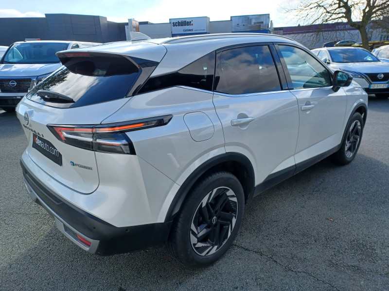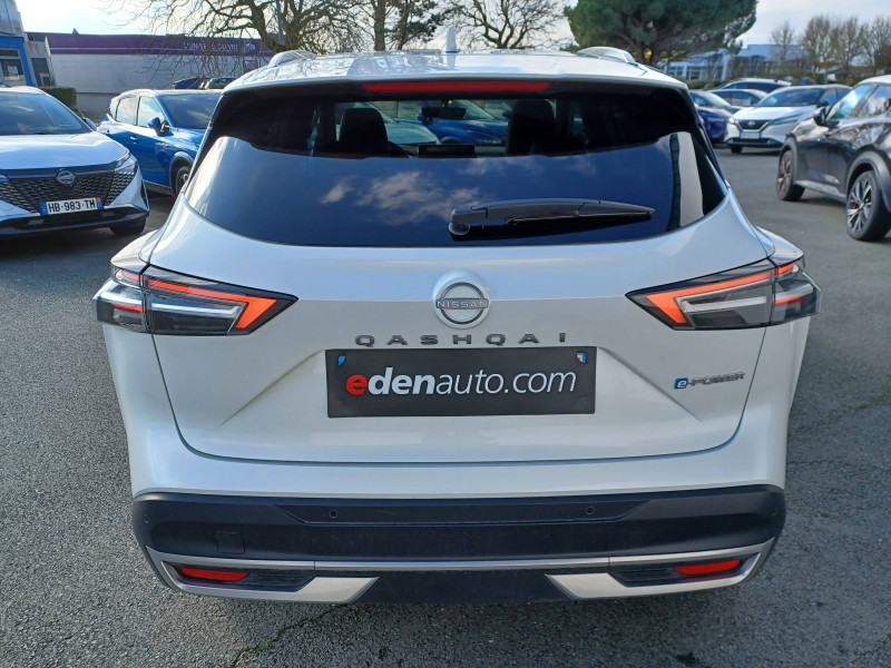 6 crochets de fixation dans le coffre (4 au plancher, 2 sur les côtés) / ABS (système antiblocage des freins) / Accoudoir central AR avec porte-gobelets (2) / Alarme périmétrique / Alerte et prévention de sortie de voie / Antenne aileron de requin Noir / Badges e-POWER / Boîte de vitesses automatique 1 rapports / Bouton d'accès rapide aux réglages des aides à la conduite / Buses de ventilation AR / Cache-bagages amovible / Chargeur à induction pour Smartphone 15W / Ciel de toit Gris clair / Clignotants AV et AR LED / Combiné d'instrumentation digital 12,3'' / Commandes au volant: contrôle de l'ordinateur de bord, audio, téléphone, régulateur et limiteur de vitesse / Compartiment pour lunettes de soleil / Contre-portes et console centrale en TEP / Contrôle de la traction (TCS) / Double port USB AR (USB-A et USB-C) / Double port USB AV et AR (USB-C) / Eclairage d'ambiance personnalisable / Eclairage du coffre (x2) / Feu stop central LED / Feux de détresse à déclenchement automatique / Feux de route adaptatifs / Freinage d'urgence anticollision AR / Freinage d'urgence intelligent avec détection piétons, cyclistes et intersections / Frein à main électrique avec aide au stationnement/démarrage et fonction Autohold / Garantie anticorrosion - perforation 12 ans, kilométrage illimité / Garantie Nissan Privilège Jusqu'à 8 ans de Garantie (moteur, boîte, pont) + Jusqu'à 8 ans d'Assistance 24h/24, 7j/7. Jusqu'à 8 ans ou 160 000 km, conditionnéà entretien annuel dans le réseau Nissan / Garantie peinture 3 ans, kilométrage illimité / Garantie sur tous les composants spécifiques Hybrid, e-POWER 5 ans (limitée à 100 000 km) Liste non exhaustive des composants inclus : batterie lithium-ion, moteur électrique, onduleur, générateur, système de refroidissement de la batterie, etc... / Garantie véhicule neuf 3 ans (limitée à 100 000 km) / Inserts de pare-chocs AV et AR Gris satiné / Kit de réparation pneumatique / Liseuses LED à l'AV et à l'AR / NBAS (amplificateur de freinage d'urgence) / Nissan AVM 3D - Vision Intelligente à 360° : système d'aide au stationnement qui facilite les manoeuvres de stationnement en vous offrant une vision à 360° : Caméra AR avec repères de gabarit, Caméra AV, Caméras latérales situées dans les rétroviseurs extérieurs, Radars 360°, Fonction ''capot transparent'', Mémorisation stationnement régulier et intersections / NissanConnect Services - Services télématiques avec accès à distance depuis un smartphone - Géolocalisation du véhicule - Historique de navigation - Point d'accès WiFi / NissanConnect Services - Services télématiques avec accès à distance depuis un smartphone Services de commandes à distance - Historique de conduite - Mise à jour à distance - Rapports sur l'état de santé du véhicule et alertes de dysfonctionnement - Rappels des pas d'entretien - Aide et assistance Nissan - Alertes intelligentes / Ouverture des portières AR à 85° / Pare-chocs AV et AR Noir mat / Pare-soleil côté conducteur et passager avec miroir de courtoisie éclairé / Planche de bord en TEP / Plancher de coffre modulable / Poignées de maintien pour passager AV et AR / Points d'ancrage pour sièges enfants ISOFIX à l'AR (x2) / Porte-gobelets (x2) / Prise 12V à l'AV (x1) et dans le coffre (x1) / ProPILOT avec Navi-link : technologie de conduite assistée Aide au maintien dans la voie, Freinage anticipé dans les courbes via la navigation, Assistant de conduite en embouteillage, Ajustement aux limitations de vitesse (automatique ou sur commande) / ProPILOT Park : technologie de stationnement automatique / Rails de toit longitudinaux chromés / Régulateur de vitesse intelligent avec ajustement aux limitations de vitesse sur commande / Repose-genoux en TEP / Rétroviseur intérieur électrochromatique sans contour / Sélection du mode de conduite (ECO, STANDARD et SPORT) / Sellerie mixte TEP/Tissu (Noir) / Siège conducteur avec réglage lombaire électrique 2 voies / Système audio radio avec écran tactile 12,3" et 6 HP / Système "Chassis Control" (contrôle actif de trajectoire et de l'assiette) / Système d'alerte anticollision AR intelligent / Système d'alerte prédictif anticollision frontale / Système de navigation NissanConnect avec services Google intégrés Google Maps, Google Assistant, Google Play Store, Live Traffic et cartes 3D, Navigation porte-à-porte, Recherche par Points d'Intérêt, Google Street View, Vue Satellite et Météo, Mise à jour des cartes et logiciels, Prix des carburants / Système d'ouverture et de démarrage sans clé "Intelligent key" avec fonction de verrouillage/ déverrouillage à l'approche du véhicule / Technologie e-Pedal Step / Trappe de carburant sans bouchon