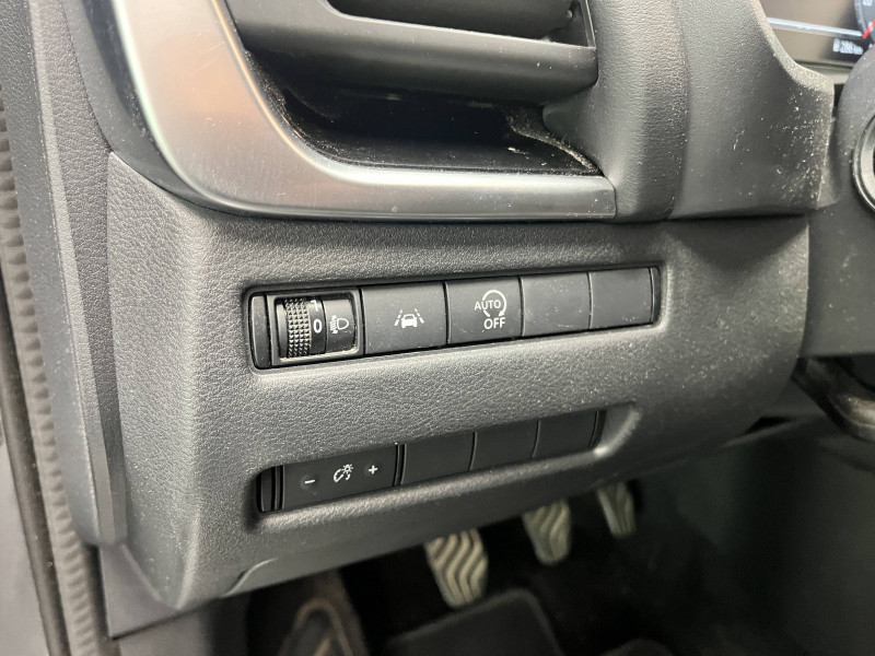 ABS et EBD / Alarme périmétrique / Antenne aileron de requin / Buses de ventilation AR / Cache-bagages amovible / Chargeur à induction pour Smartphone 15W / Combiné d'instrumentation digital avec écran 12,3'' TFT / Commandes au volant: contrôle de l'ordinateur de bord, audio, téléphone, régulateur et limiteur de vitesse / Compartiment pour lunettes de soleil / Crochets d'arrimage (6) dans le coffre / Deuxième port USB AV (USB-A et USB-C) / Double port USB AR (USB-A et USB-C) / Eclairage d'ambiance linéaire / Eclairage du coffre (2x) / Feu stop central LED / Feux de détresse à déclenchement automatique / Feux de route adaptatifs / Feux diurnes LED avec système Follow Me Home / Freinage d'urgence anticollision AR / Freinage d'urgence intelligent avec détection piétons, cyclistes et intersections / Frein à main électrique avec aide au stationnement/démarrage et fonction Autohold / Habillage console centrale et contre-portes en TEP / Insert de pare-chocs AR Gris satiné / Kit de réparation pneumatique / Liseuses AV et AR / NBAS (amplificateur de freinage d'urgence) / Ouverture des portières AR à 85° / Pack Navigation / Pare-soleil côté conducteur et passager avec miroir de courtoisie éclairé / Peinture opaque / Plancher de coffre modulable / Poignées de maintien AV et AR / Points d'ancrage pour sièges enfants ISOFIX à l'AR (x2) / Porte-gobelets AV (x2) / Port USB AV (USB-A) / Prise 12V dans le coffre / Repose-genoux en TEP (Tissu Enduit) / Rétroviseur intérieur électrochromatique / Sélection du mode de conduite (ECO, STANDARD et SPORT) / Sellerie Tissu Noir et Gris / Siège conducteur avec réglage lombaire 2 voies / Système "Chassis Control" (contrôle actif de trajectoire et de l'assiette) / Système d'alerte anticollision AR intelligent avec détection des objets en mouvement / Système d'alerte prédictif anticollision frontale / Système d'ouverture et de démarrage sans clé "Intelligent key" / Technologie e-Pedal Step / Trappe de carburant sans bouchon / Vitres électriques avec mode impulsionnel AV et AR et commande à distance / Volant et pommeau de levier de vitesses gainé cuir