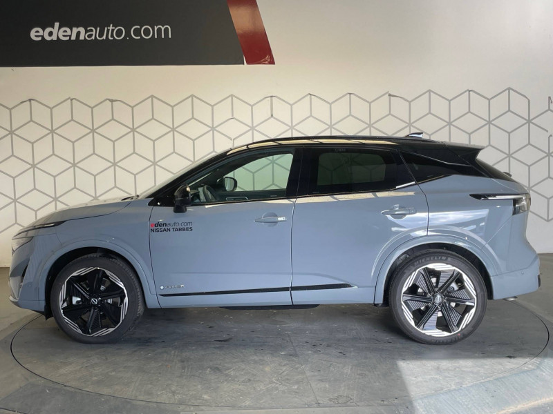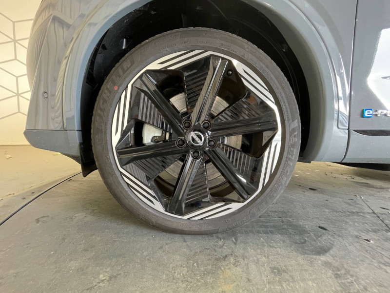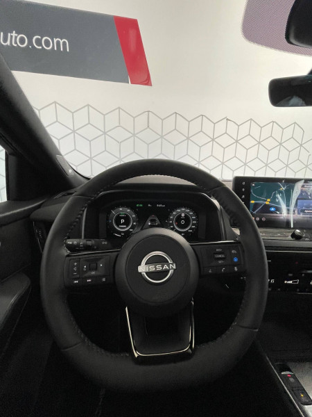 6 crochets de fixation dans le coffre (4 au plancher, 2 sur les côtés) / ABS (système antiblocage des freins) / Accoudoir central AR avec porte-gobelets (2) / Affichage tête haute avec projection sur le pare-brise 10,8" / Alarme périmétrique / Alerte et prévention de sortie de voie / Antenne aileron de requin / Badges e-POWER / Boîte de vitesses automatique 1 rapports / Bouton d'accès rapide aux réglages des aides à la conduite / Buses de ventilation AR / Cache-bagages amovible / Chargeur à induction pour Smartphone 15W / Ciel de toit Noir / Clignotants AV et AR à défilement / Clignotants AV et AR LED / Combiné d'instrumentation digital 12,3'' / Commandes au volant: contrôle de l'ordinateur de bord, audio, téléphone, régulateur et limiteur de vitesse / Contre-portes et console centrale en Alcantara / Contrôle de traction électronique / Double port USB AR (USB-A et USB-C) / Double port USB AV et AR (USB-C) / Eclairage d'ambiance personnalisable (11 points lumineux) / Eclairage du coffre (2x) / Feu stop central LED / Feux AR "Super-RED" / Feux de détresse à déclenchement automatique / Feux de route adaptatifs / Feux de route intelligents avec 12 fasceaux indépendants / Freinage d'urgence anticollision AR / Freinage d'urgence intelligent avec détection piétons, cyclistes et intersections / Frein à main électrique avec aide au stationnement/démarrage et fonction Autohold / Hayon électrique avec ouverture mains libres / Inserts de pare-chocs AV et AR Noir brillant / Jantes alliage 20" avec suspension AR multibras / Kit de réparation pneumatique / Liseuses LED à l'AV et à l'AR / Mémorisation des réglages via l'Intelligent Key (siège conducteur et rétroviseurs extérieurs) / NBAS (amplificateur de freinage d'urgence) / Nissan AVM 3D - Vision Intelligente à 360° : système d'aide au stationnement qui facilite les manoeuvres de stationnement en vous offrant une vision à 360° : Caméra arrière avec repères de gabarit, Caméra AV, Caméras latérales situées dans les rétroviseurs extérieurs, Radars 360°, Fonction "capot transparent", Mémorisation stationnement régulier et intersections / NissanConnect Services - Services télématiques avec accès à distance depuis un smartphone Service de commandes à distance, Géolocalisation du véhicule, Historique de conduite et de navigation, Rapports sur l'état de santé du véhicule et alertes de dysfonctionnement, Rappel des pas d'entretien, Aide et assistance Nissan, Point d'accès Wi-Fi, Alertes intelligentes, Compatibilité Amazon Alexa / Ouverture des portières AR à 85° / Pack Hiver - Sièges AV chauffants - Volant chauffant - Pare-brise chauffant / Pare-soleil côté conducteur et passager avec miroir de courtoisie éclairé / Plancher de coffre modulable / Poignées de maintien pour passager AV et AR / Points d'ancrage pour sièges enfants ISOFIX à l'AR (x2) / Porte-gobelets (2x) / Prise 12V à l'AV (x1) et dans le coffre (x1) / ProPILOT avec Navi-link : technologie de conduite assistée Aide au maintien dans la voie, Freinage anticipé dans les courbes via la navigation, Assistant de conduite en embouteillage, Ajustement aux limitations de vitesse (automatique ou sur commande) / ProPILOT Park : technologie de stationnement automatique / Rails de toit longitudinaux noirs / Régulateur de vitesse intelligent avec ajustement aux limitations de vitesse sur commande / Repose-genoux en Alcantara / Rétroviseur intérieur électrochromatique sans contour / Rétroviseurs extérieurs avec fonction mémoire et fonction marche AR / Sélection du mode de conduite (ECO, STANDARD et SPORT) / Siège conducteur avec fonction mémoire / Siège conducteur avec réglage lombaire électrique 2 voies / Siège conducteur avec réglages électriques 8 voies / Siège passager avec réglage lombaire manuel 2 voies / Système audio Bose Premium avec 10 HP et un caisson de basses Acoustimass / Système "Chassis Control" (contrôle actif de trajectoire et de l'assiette) / Système d'alerte anticollision AR intelligent / Système d'alerte prédictif anticollision frontale / Système de navigation NissanConnect avec services Google intégrés Google Maps, Google Assistant, Google Play Store, Live Traffic et cartes 3D, Navigation porte-à-porte, Recherche par Points d'Intérêt, Google Street View, Vue Satellite et Météo, Mise à jour des cartes et logiciels, Prix des carburants / Système d'ouverture et de démarrage sans clé "Intelligent key" avec fonction de verrouillage/ déverrouillage à l'approche du véhicule / Technologie e-Pedal Step / Trappe de carburant sans bouchon