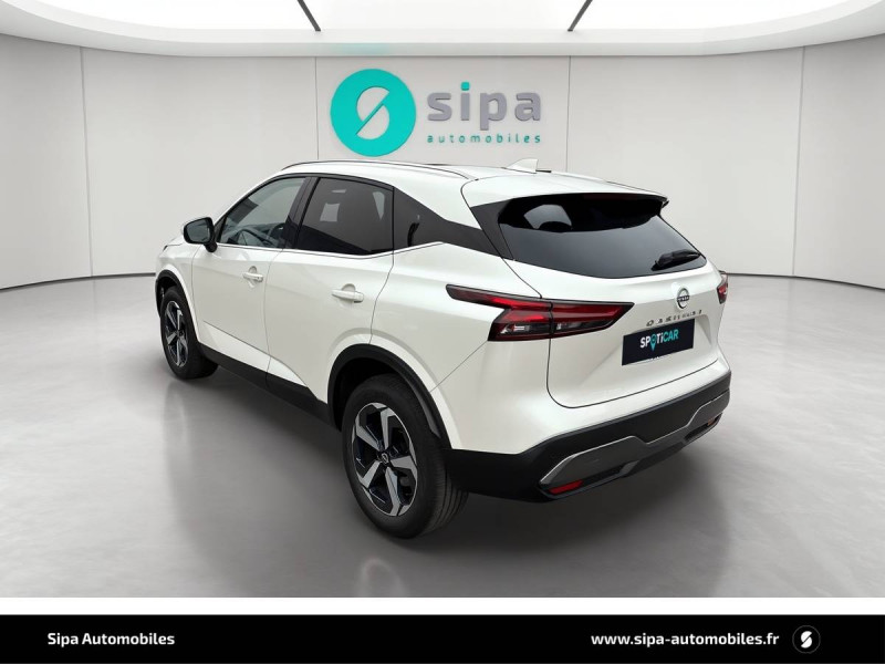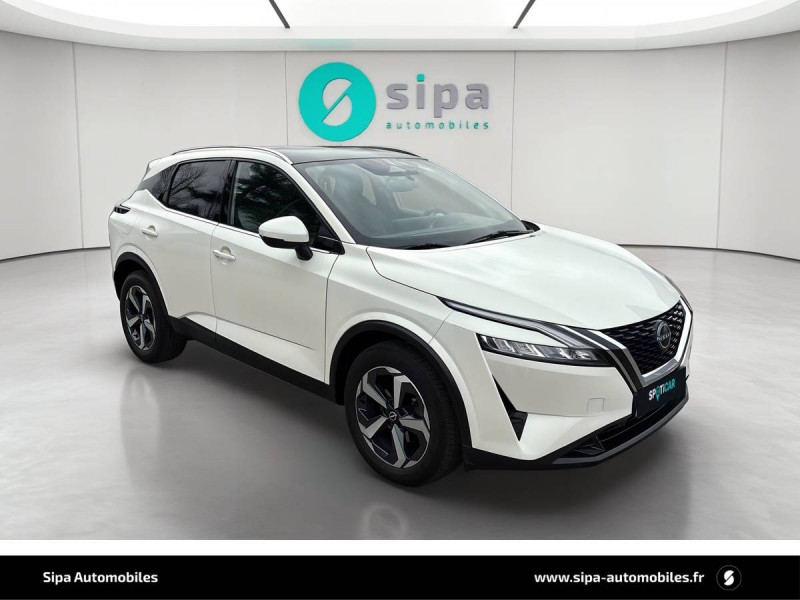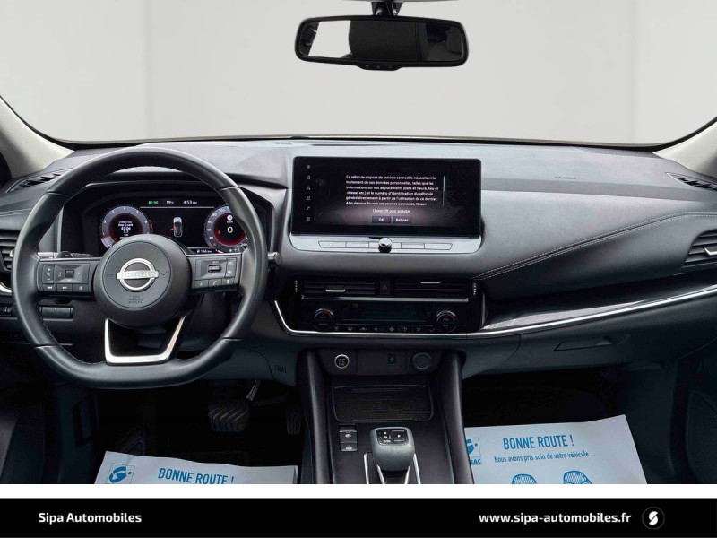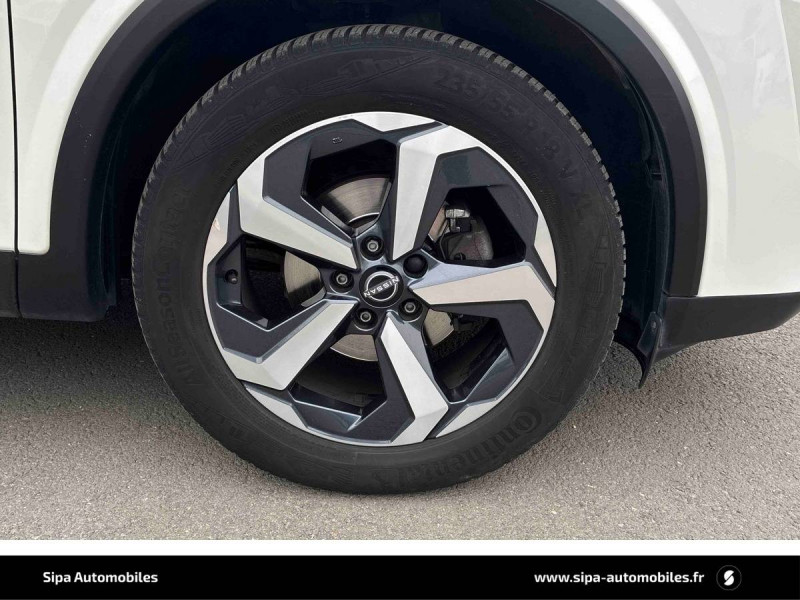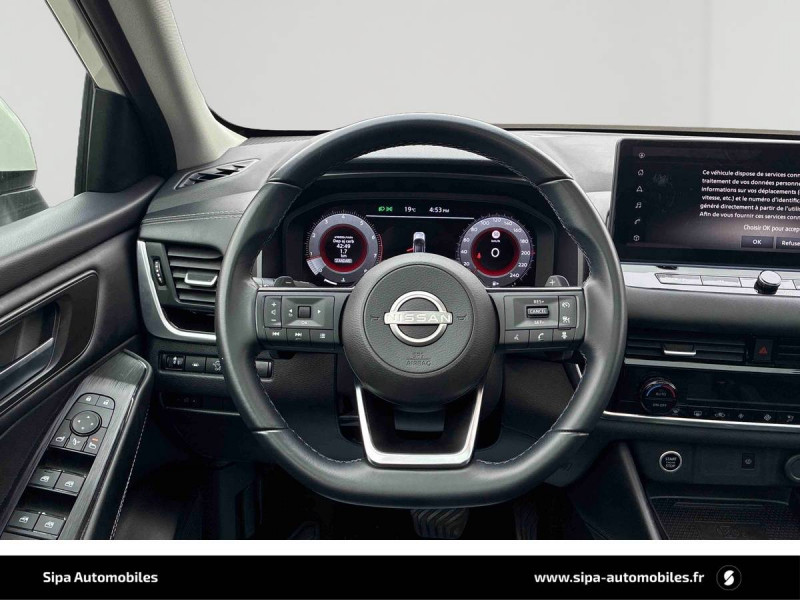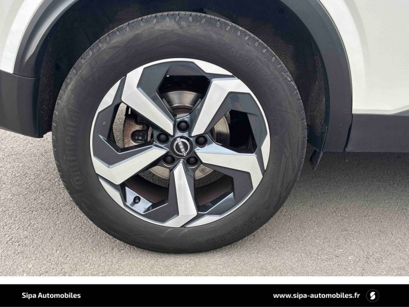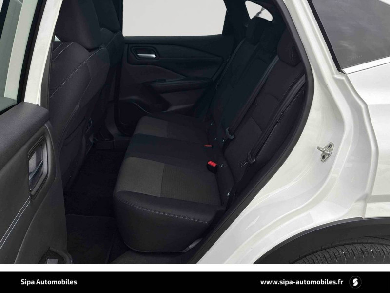 ABS et EBD / Accoudoir central AR avec porte-gobelets (2) / Alarme périmétrique / Antenne aileron de requin / Buses de ventilation AR / Cache-bagages amovible / Chargeur à induction pour Smartphone 15W / Combiné d'instrumentation digital avec écran 12,3'' TFT / Commandes au volant: contrôle de l'ordinateur de bord, audio, téléphone, régulateur et limiteur de vitesse / Compartiment pour lunettes de soleil / Crochets d'arrimage (6) dans le coffre / Deuxième port USB AV (USB-A et USB-C) / Double port USB AR (USB-A et USB-C) / Eclairage d'ambiance (console centrale) / Eclairage du coffre (x2) / Feu stop central LED / Feux de détresse à déclenchement automatique / Feux de route adaptatifs / Freinage d'urgence anticollision AR / Freinage d'urgence intelligent avec détection piétons, cyclistes et intersections / Frein à main électrique avec aide au stationnement/démarrage et fonction Autohold / Habillage console centrale et contre-portes en TEP / Insert de pare-chocs AR Gris satiné / Kit de réparation pneumatique / Liseuses AV et AR / NBAS (amplificateur de freinage d'urgence) / Nissan AVM - Vision Intelligente à 360° / Nissan Connect Services / Ouverture des portières AR à 85° / Pack Navigation / Pare-soleil côté conducteur et passager avec miroir de courtoisie éclairé / Peinture opaque monoton / Plancher de coffre modulable / Poignées de maintien pour passager AV et AR / Points d'ancrage pour sièges enfants ISOFIX à l'AR (x2) / Pommeau de levier de vitesse gainé de cuir / Porte-gobelets AV (x2) / Port USB AV (USB-A) / Prise 12V dans le coffre / Repose-genoux en TEP (Tissu Enduit) / Rétroviseur intérieur électrochromatique / Sélection du mode de conduite (ECO, STANDARD et SPORT) / Sellerie Tissu Noir et Gris / Siège conducteur avec réglage lombaire électrique 2 voies / Système "Chassis Control" (contrôle actif de trajectoire et de l'assiette) / Système d'alerte anticollision AR intelligent avec détection des objets en mouvement / Système d'alerte prédictif anticollision frontale / Système d'ouverture et de démarrage sans clé "Intelligent key" / Trappe de carburant sans bouchon