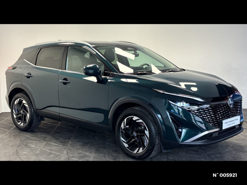 Contre-portes et console centrale en TEP / Contrôle de la traction (TCS) / Double port USB AR (USB-A et USB-C) / Double port USB AV et AR (USB-C) / ABS (système antiblocage des freins) / Accoudoir central AR avec porte-gobelets (2) / Alarme périmétrique / Alerte et prévention de sortie de voie / Antenne aileron de requin Noir / Eclairage d'ambiance personnalisable / Eclairage du coffre (x2) / Feu stop central LED / Feux de détresse à déclenchement automatique / Feux de route adaptatifs / Frein à main électrique avec aide au stationnement/démarrage et fonction Autohold / Freinage d'urgence anticollision AR / Freinage d'urgence intelligent avec détection piétons, cyclistes et intersections / Garantie anticorrosion - perforation 12 ans, kilométrage illimité / Garantie Nissan Privilège Jusqu'à 8 ans de Garantie (moteur, boîte, pont) + Jusqu'à 8 ans d'Assistance 24h/24, 7j/7. Jusqu'à 8 ans ou 160 000 km, conditionnéà entretien annuel dans le réseau Nissan / Garantie peinture 3 ans, kilométrage illimité / Garantie véhicule neuf 3 ans (limitée à 100 000 km) / Inserts de pare-chocs AV et AR Gris satiné / Kit de réparation pneumatique / Système audio radio avec écran tactile 12,3" et 6 HP / Système "Chassis Control" (contrôle actif de trajectoire et de l'assiette) / Système d'alerte anticollision AR intelligent / Système d'alerte prédictif anticollision frontale / Système de navigation NissanConnect avec services Google intégrés Google Maps, Google Assistant, Google Play Store, Live Traffic et cartes 3D, Navigation porte-à-porte, Recherche par Points d'Intérêt, Google Street View, Vue Satellite et Météo, Mise à jour des cartes et logiciels, Prix des carburants / Système d'ouverture et de démarrage sans clé "Intelligent key" avec fonction de verrouillage/ déverrouillage à l'approche du véhicule / NissanConnect Services - Services télématiques avec accès à distance depuis un smartphone - Géolocalisation du véhicule - Historique de navigation - Point d'accès WiFi / Liseuses LED à l'AV et à l'AR / NBAS (amplificateur de freinage d'urgence) / Nissan AVM 3D - Vision Intelligente à 360° : système d'aide au stationnement qui facilite les manoeuvres de stationnement en vous offrant une vision à 360° : Caméra AR avec repères de gabarit, Caméra AV, Caméras latérales situées dans les rétroviseurs extérieurs, Radars 360°, Fonction ''capot transparent'', Mémorisation stationnement régulier et intersections / Trappe de carburant sans bouchon / 6 crochets de fixation dans le coffre (4 au plancher, 2 sur les côtés) / NissanConnect Services - Services télématiques avec accès à distance depuis un smartphone Services de commandes à distance - Historique de conduite - Mise à jour à distance - Rapports sur l'état de santé du véhicule et alertes de dysfonctionnement - Rappels des pas d'entretien - Aide et assistance Nissan - Alertes intelligentes / Ouverture des portières AR à 85° / Pare-chocs AV et AR Noir mat / Pare-soleil côté conducteur et passager avec miroir de courtoisie éclairé / Planche de bord en TEP / Plancher de coffre modulable / Poignées de maintien pour passager AV et AR / Points d'ancrage pour sièges enfants ISOFIX à l'AR (x2) / Pommeau de levier de vitesse gainé de cuir / Porte-gobelets (x2) / Prise 12V à l'AV (x1) et dans le coffre (x1) / ProPILOT avec Navi-link : technologie de conduite assistée Aide au maintien dans la voie, Freinage anticipé dans les courbes via la navigation, Assistant de conduite en embouteillage, Ajustement aux limitations de vitesse (automatique ou sur commande) / Rails de toit longitudinaux chromés / Régulateur de vitesse intelligent avec ajustement aux limitations de vitesse sur commande / Repose-genoux en TEP / Rétroviseur intérieur électrochromatique sans contour / Sélection du mode de conduite (ECO, STANDARD et SPORT) / Sellerie mixte TEP/Tissu (Noir) / Siège conducteur avec réglage lombaire électrique 2 voies / Boîte de vitesses automatique 7 rapports / Bouton d'accès rapide aux réglages des aides à la conduite / Buses de ventilation AR / Cache-bagages amovible / Chargeur à induction pour Smartphone 15W / Ciel de toit Gris clair / Clignotants AV et AR LED / Combiné d'instrumentation digital 12,3'' / Commandes au volant: contrôle de l'ordinateur de bord, audio, téléphone, régulateur et limiteur de vitesse / Compartiment pour lunettes de soleil