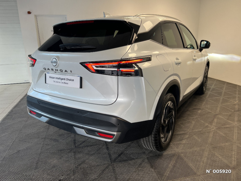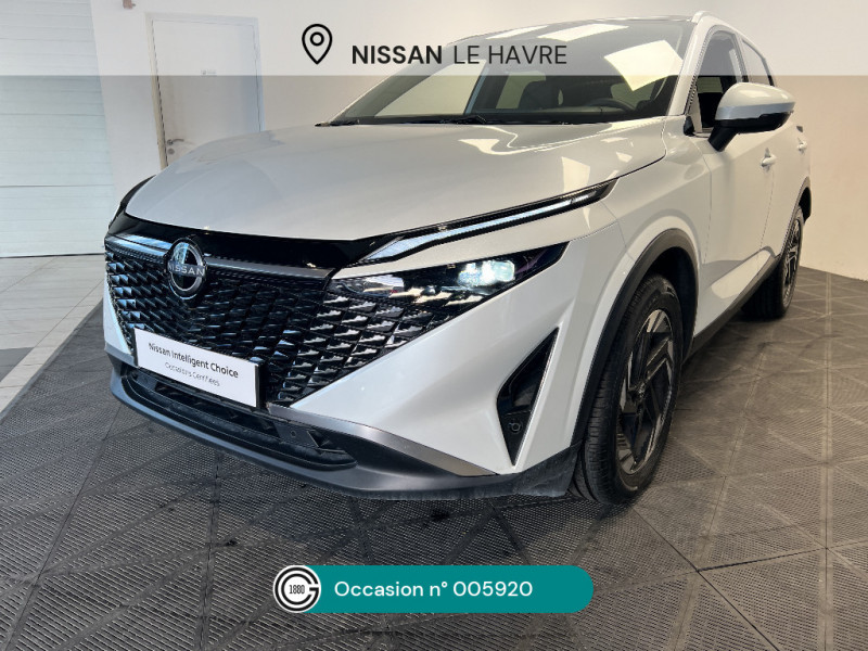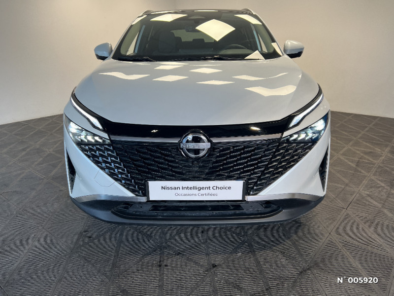 Combiné d'instrumentation digital 12,3'' / Commandes au volant: contrôle de l'ordinateur de bord, audio, téléphone, régulateur et limiteur de vitesse / Compartiment pour lunettes de soleil / NissanConnect Services - Services télématiques avec accès à distance depuis un smartphone - Géolocalisation du véhicule - Historique de navigation - Point d'accès WiFi / Liseuses LED à l'AV et à l'AR / NBAS (amplificateur de freinage d'urgence) / Nissan AVM 3D - Vision Intelligente à 360° : système d'aide au stationnement qui facilite les manoeuvres de stationnement en vous offrant une vision à 360° : Caméra AR avec repères de gabarit, Caméra AV, Caméras latérales situées dans les rétroviseurs extérieurs, Radars 360°, Fonction ''capot transparent'', Mémorisation stationnement régulier et intersections / Contre-portes et console centrale en TEP / Contrôle de la traction (TCS) / Double port USB AR (USB-A et USB-C) / Double port USB AV et AR (USB-C) / Eclairage d'ambiance personnalisable / Eclairage du coffre (x2) / Feu stop central LED / Feux de détresse à déclenchement automatique / Feux de route adaptatifs / Frein à main électrique avec aide au stationnement/démarrage et fonction Autohold / Freinage d'urgence anticollision AR / Freinage d'urgence intelligent avec détection piétons, cyclistes et intersections / Garantie anticorrosion - perforation 12 ans, kilométrage illimité / Garantie Nissan Privilège Jusqu'à 8 ans de Garantie (moteur, boîte, pont) + Jusqu'à 8 ans d'Assistance 24h/24, 7j/7. Jusqu'à 8 ans ou 160 000 km, conditionnéà entretien annuel dans le réseau Nissan / Garantie peinture 3 ans, kilométrage illimité / Garantie véhicule neuf 3 ans (limitée à 100 000 km) / Inserts de pare-chocs AV et AR Gris satiné / Kit de réparation pneumatique / ABS (système antiblocage des freins) / Accoudoir central AR avec porte-gobelets (2) / Alarme périmétrique / Alerte et prévention de sortie de voie / Antenne aileron de requin Noir / Boîte de vitesses automatique 7 rapports / Bouton d'accès rapide aux réglages des aides à la conduite / Buses de ventilation AR / Cache-bagages amovible / Chargeur à induction pour Smartphone 15W / Ciel de toit Gris clair / Clignotants AV et AR LED / Système audio radio avec écran tactile 12,3" et 6 HP / Système "Chassis Control" (contrôle actif de trajectoire et de l'assiette) / Système d'alerte anticollision AR intelligent / Système d'alerte prédictif anticollision frontale / Système de navigation NissanConnect avec services Google intégrés Google Maps, Google Assistant, Google Play Store, Live Traffic et cartes 3D, Navigation porte-à-porte, Recherche par Points d'Intérêt, Google Street View, Vue Satellite et Météo, Mise à jour des cartes et logiciels, Prix des carburants / Système d'ouverture et de démarrage sans clé "Intelligent key" avec fonction de verrouillage/ déverrouillage à l'approche du véhicule / Trappe de carburant sans bouchon / NissanConnect Services - Services télématiques avec accès à distance depuis un smartphone Services de commandes à distance - Historique de conduite - Mise à jour à distance - Rapports sur l'état de santé du véhicule et alertes de dysfonctionnement - Rappels des pas d'entretien - Aide et assistance Nissan - Alertes intelligentes / Ouverture des portières AR à 85° / Pare-chocs AV et AR Noir mat / Pare-soleil côté conducteur et passager avec miroir de courtoisie éclairé / Planche de bord en TEP / Plancher de coffre modulable / Poignées de maintien pour passager AV et AR / Points d'ancrage pour sièges enfants ISOFIX à l'AR (x2) / Pommeau de levier de vitesse gainé de cuir / Porte-gobelets (x2) / Prise 12V à l'AV (x1) et dans le coffre (x1) / 6 crochets de fixation dans le coffre (4 au plancher, 2 sur les côtés) / ProPILOT avec Navi-link : technologie de conduite assistée Aide au maintien dans la voie, Freinage anticipé dans les courbes via la navigation, Assistant de conduite en embouteillage, Ajustement aux limitations de vitesse (automatique ou sur commande) / Rails de toit longitudinaux chromés / Régulateur de vitesse intelligent avec ajustement aux limitations de vitesse sur commande / Repose-genoux en TEP / Rétroviseur intérieur électrochromatique sans contour / Sélection du mode de conduite (ECO, STANDARD et SPORT) / Sellerie mixte TEP/Tissu (Noir) / Siège conducteur avec réglage lombaire électrique 2 voies