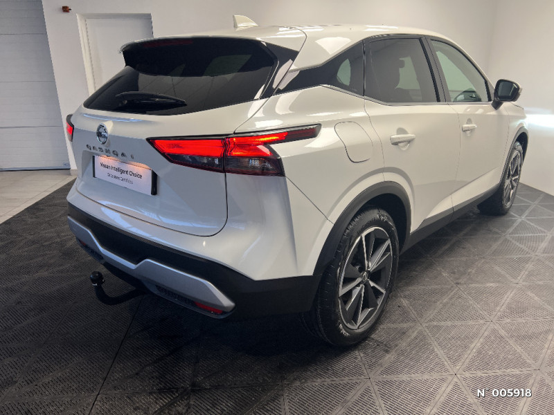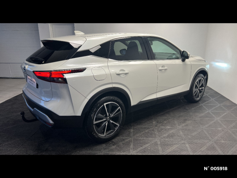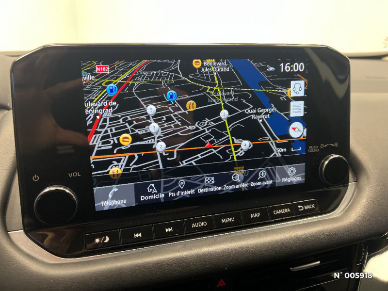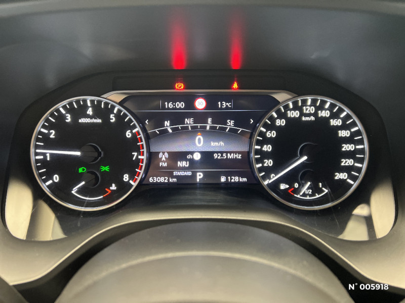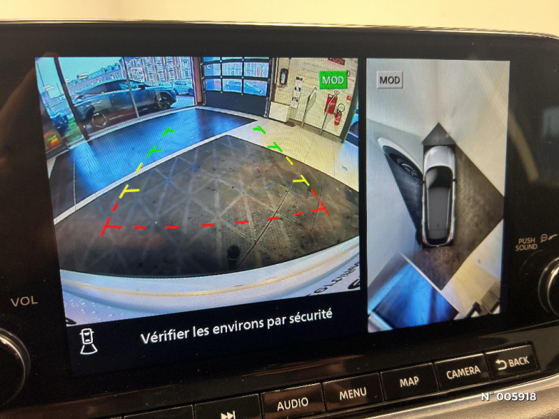 Feu stop central LED / Feux de détresse à déclenchement automatique / Feux de route adaptatifs / Feux diurnes LED avec système Follow Me Home / Frein à main électrique avec aide au stationnement/démarrage et fonction Autohold / Freinage d'urgence anticollision AR / Freinage d'urgence intelligent avec détection piétons, cyclistes et intersections / Habillage console centrale et contre-portes en TEP / Insert de pare-chocs AR couleur Argent / Kit de réparation pneumatique / Liseuses AV et AR / NBAS (amplificateur de freinage d'urgence) / Nissan AVM - Vision Intelligente à 360° / Nissan Connect Services / Ouverture des portières AR à 85° / Pare-soleil côté conducteur et passager avec miroir de courtoisie éclairé / Peinture opaque monoton / Plancher de coffre modulable / Poignées de maintien AV et AR / Points d'ancrage pour sièges enfants ISOFIX à l'AR (x2) / Port USB AV (USB-A) / Porte-gobelets (x2) / Buses de ventilation AR / Cache-bagages amovible / Chargeur à induction pour Smartphone 15W / Combiné d'instrumentation avec écran couleur TFT 7" / Commandes au volant: contrôle de l'ordinateur de bord, audio, téléphone, régulateur et limiteur de vitesse / Compartiment pour lunettes de soleil / Crochets d'arrimage (6) dans le coffre / Crochets de cintres à l'AR / Deuxième port USB AV (USB-A et USB-C) / Double port USB AR (USB-A et USB-C) / Eclairage d'ambiance linéaire / Eclairage du coffre (x2) / Système de navigation NissanConnect avec écran tactile 9" / Système d'ouverture et de démarrage sans clé "Intelligent key" / Trappe de carburant sans bouchon / Vitres électriques avec mode impulsionnel AV et AR et commande à distance / Volant et pommeau de levier de vitesses gainé cuir / Repose-genoux en TEP (Tissu Enduit) / Rétroviseur intérieur électrochromatique / Sélection du mode de conduite (ECO, STANDARD et SPORT) / Sellerie Tissu Noir et Gris / Siège conducteur avec réglage lombaire 2 voies / Système "Chassis Control" (contrôle actif de trajectoire et de l'assiette) / Système d'alerte anticollision AR intelligent avec détection des objets en mouvement / Système d'alerte prédictif anticollision frontale / Prise 12V dans le coffre / ABS et EBD / Alarme périmétrique / Antenne aileron de requin