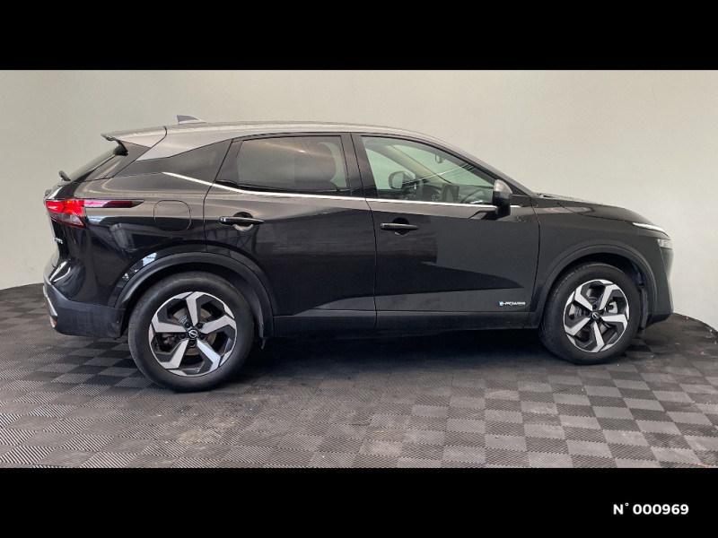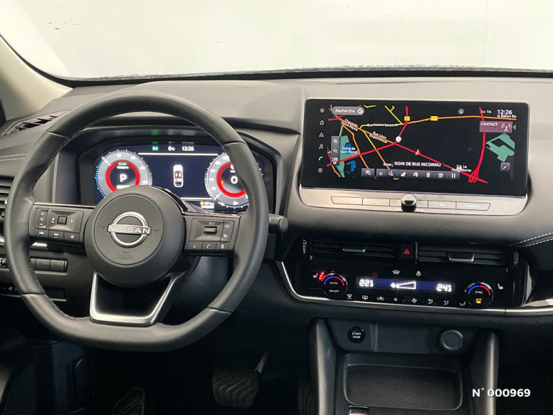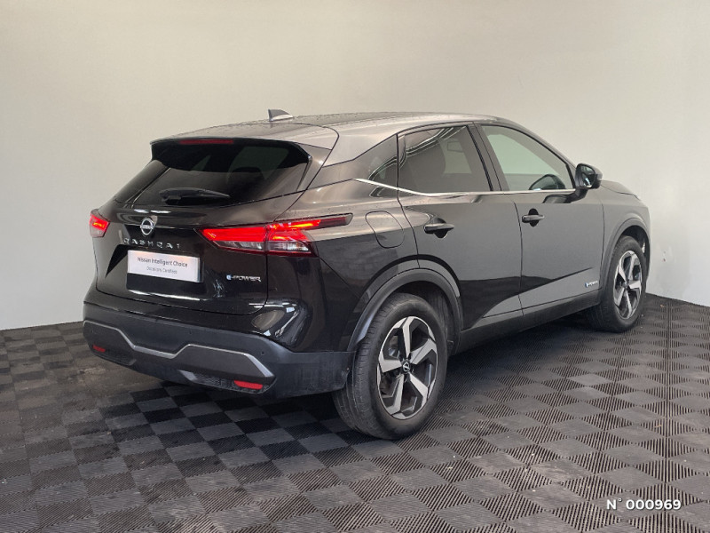Siège conducteur avec réglage lombaire électrique 2 voies / Siège conducteur avec réglage lombaire 2 voies / Chargeur à induction pour Smartphone 15W / Combiné d'instrumentation digital avec écran 12,3'' TFT / Commandes au volant: contrôle de l'ordinateur de bord, audio, téléphone, régulateur et limiteur de vitesse / Compartiment pour lunettes de soleil / Crochets d'arrimage (6) dans le coffre / Deuxième port USB AV (USB-A et USB-C) / NBAS (amplificateur de freinage d'urgence) / Nissan Connect Services / Ouverture des portières AR à 85° / Pack Navigation / Pare-soleil côté conducteur et passager avec miroir de courtoisie éclairé / Peinture opaque monoton / Plancher de coffre modulable / Poignées de maintien AV et AR / Poignées de maintien pour passager AV et AR / Points d'ancrage pour sièges enfants ISOFIX à l'AR (x2) / Port USB AV (USB-A) / Porte-gobelets AV (x2) / Prise 12V dans le coffre / Sélection du mode de conduite (ECO, STANDARD et SPORT) / Sellerie Tissu Noir et Gris / Double port USB AR (USB-A et USB-C) / Eclairage d'ambiance (console centrale) / Eclairage d'ambiance linéaire / Eclairage du coffre (x2) / Feu stop central LED / Feux de détresse à déclenchement automatique / Feux de route adaptatifs / Feux diurnes LED avec système Follow Me Home / Frein à main électrique avec aide au stationnement/démarrage et fonction Autohold / Freinage d'urgence anticollision AR / Freinage d'urgence intelligent avec détection piétons, cyclistes et intersections / Habillage console centrale et contre-portes en TEP / Insert de pare-chocs AR Gris satiné / Kit de réparation pneumatique / Liseuses AV et AR / Système "Chassis Control" (contrôle actif de trajectoire et de l'assiette) / Système d'alerte anticollision AR intelligent avec détection des objets en mouvement / Système d'alerte prédictif anticollision frontale / Système d'ouverture et de démarrage sans clé "Intelligent key" / Technologie e-Pedal Step / Trappe de carburant sans bouchon / Vitres électriques avec mode impulsionnel AV et AR et commande à distance / Volant et pommeau de levier de vitesses gainé cuir / Repose-genoux en TEP (Tissu Enduit) / Rétroviseur intérieur électrochromatique / Accoudoir central AR avec porte-gobelets (2) / ABS et EBD / Alarme périmétrique / Antenne aileron de requin / Badges e-POWER / Buses de ventilation AR / Cache-bagages amovible