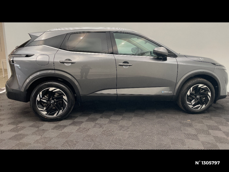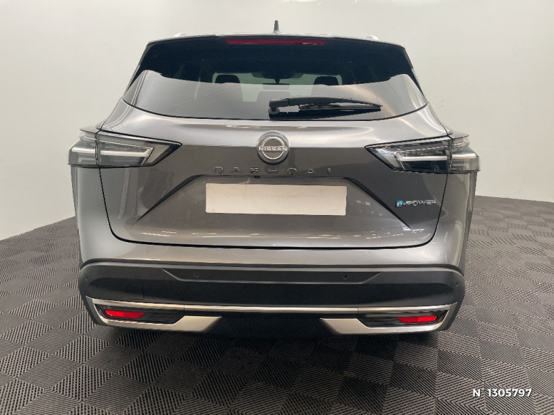 Rails de toit longitudinaux chromés / Régulateur de vitesse intelligent avec ajustement aux limitations de vitesse sur commande / Repose-genoux en TEP / Rétroviseur intérieur électrochromatique sans contour / Sélection du mode de conduite (ECO, STANDARD et SPORT) / Sellerie mixte TEP/Tissu (Noir) / Siège conducteur avec réglage lombaire électrique 2 voies / Système audio radio avec écran tactile 12,3" et 6 HP / Système "Chassis Control" (contrôle actif de trajectoire et de l'assiette) / Système d'alerte anticollision AR intelligent / Système d'alerte prédictif anticollision frontale / Système de navigation NissanConnect avec services Google intégrés Google Maps, Google Assistant, Google Play Store, Live Traffic et cartes 3D, Navigation porte-à-porte, Recherche par Points d'Intérêt, Google Street View, Vue Satellite et Météo, Mise à jour des cartes et logiciels, Prix des carburants / Système d'ouverture et de démarrage sans clé "Intelligent key" avec fonction de verrouillage/ déverrouillage à l'approche du véhicule / Technologie e-Pedal Step / Trappe de carburant sans bouchon / 6 crochets de fixation dans le coffre (4 au plancher, 2 sur les côtés) / ABS (système antiblocage des freins) / Accoudoir central AR avec porte-gobelets (2) / Alarme périmétrique / Alerte et prévention de sortie de voie / Antenne aileron de requin / Badges e-POWER / Boîte de vitesses automatique 1 rapports / Bouton d'accès rapide aux réglages des aides à la conduite / Buses de ventilation AR / Cache-bagages amovible / Chargeur à induction pour Smartphone 15W / Ciel de toit Gris clair / Clignotants AV et AR LED / Combiné d'instrumentation digital 12,3'' / Commandes au volant: contrôle de l'ordinateur de bord, audio, téléphone, régulateur et limiteur de vitesse / Compartiment pour lunettes de soleil (non disponible avec toit panoramique en verre) / Contre-portes et console centrale en TEP / Contrôle de traction électronique / Double port USB AR (USB-A et USB-C) / Double port USB AV et AR (USB-C) / Eclairage d'ambiance personnalisable (7 points lumineux) / Eclairage du coffre (x2) / Feu stop central LED / Feux de détresse à déclenchement automatique / Feux de route adaptatifs / Frein à main électrique avec aide au stationnement/démarrage et fonction Autohold / Freinage d'urgence anticollision AR / Freinage d'urgence intelligent avec détection piétons, cyclistes et intersections / Inserts de pare-chocs AV et AR Gris satiné / Kit de réparation pneumatique / Liseuses LED à l'AV et à l'AR / NBAS (amplificateur de freinage d'urgence) / Nissan AVM 3D - Vision Intelligente à 360° : système d'aide au stationnement qui facilite les manoeuvres de stationnement en vous offrant une vision à 360° : Caméra AR avec repères de gabarit, Caméra AV, Caméras latérales situées dans les rétroviseurs extérieurs, Radars 360°, Fonction ''capot transparent'', Mémorisation stationnement régulier et intersections / NissanConnect Services - Services télématiques avec accès à distance depuis un smartphone Service de commandes à distance, Géolocalisation du véhicule, Historique de conduite et de navigation, Rapports sur l'état de santé du véhicule et alertes de dysfonctionnement, Rappel des pas d'entretien, Aide et assistance Nissan, Point d'accès Wi-Fi, Alertes intelligentes, Compatibilité Amazon Alexa / Ouverture des portières AR à 85° / Pare-chocs AV et AR Noir mat / Pare-soleil côté conducteur et passager avec miroir de courtoisie éclairé / Plancher de coffre modulable / Poignées de maintien pour passager AV et AR / Points d'ancrage pour sièges enfants ISOFIX à l'AR (x2) / Porte-gobelets (x2) / Prise 12V à l'AV (x1) et dans le coffre (x1) / ProPILOT avec Navi-link : technologie de conduite assistée Aide au maintien dans la voie, Freinage anticipé dans les courbes via la navigation, Assistant de conduite en embouteillage, Ajustement aux limitations de vitesse (automatique ou sur commande)
