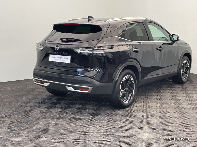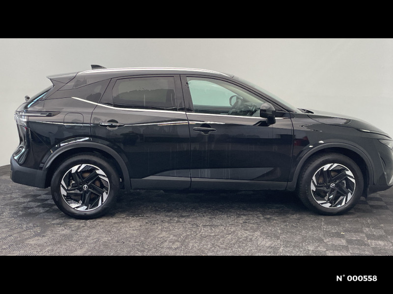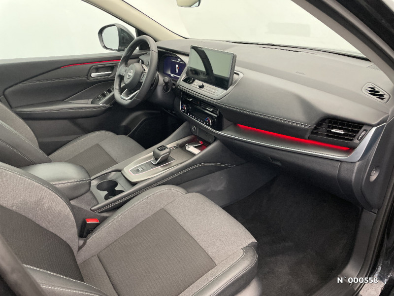 Pare-soleil côté conducteur et passager avec miroir de courtoisie éclairé / Planche de bord en TEP / Plancher de coffre modulable / Poignées de maintien pour passager AV et AR / Combiné d'instrumentation digital 12,3'' / Commandes au volant: contrôle de l'ordinateur de bord, audio, téléphone, régulateur et limiteur de vitesse / Points d'ancrage pour sièges enfants ISOFIX à l'AR (x2) / Pommeau de levier de vitesse gainé de cuir / Porte-gobelets (x2) / Prise 12V à l'AV (x1) et dans le coffre (x1) / ProPILOT avec Navi-link : technologie de conduite assistée Aide au maintien dans la voie, Freinage anticipé dans les courbes via la navigation, Assistant de conduite en embouteillage, Ajustement aux limitations de vitesse (automatique ou sur commande) / Rails de toit longitudinaux chromés / ABS (système antiblocage des freins) / Accoudoir central AR avec porte-gobelets (2) / Alarme périmétrique / Alerte et prévention de sortie de voie / Antenne aileron de requin Noir / Système d'alerte anticollision AR intelligent / Système d'alerte prédictif anticollision frontale / Système de navigation NissanConnect avec services Google intégrés Google Maps, Google Assistant, Google Play Store, Live Traffic et cartes 3D, Navigation porte-à-porte, Recherche par Points d'Intérêt, Google Street View, Vue Satellite et Météo, Mise à jour des cartes et logiciels, Prix des carburants / Système d'ouverture et de démarrage sans clé "Intelligent key" avec fonction de verrouillage/ déverrouillage à l'approche du véhicule / Trappe de carburant sans bouchon / 6 crochets de fixation dans le coffre (4 au plancher, 2 sur les côtés) / Boîte de vitesses automatique 7 rapports / Bouton d'accès rapide aux réglages des aides à la conduite / Buses de ventilation AR / Cache-bagages amovible / Chargeur à induction pour Smartphone 15W / Ciel de toit Gris clair / Clignotants AV et AR LED / Compartiment pour lunettes de soleil / Contre-portes et console centrale en TEP / Contrôle de la traction (TCS) / Double port USB AR (USB-A et USB-C) / Double port USB AV et AR (USB-C) / Eclairage d'ambiance personnalisable / Eclairage du coffre (x2) / Feu stop central LED / Feux de détresse à déclenchement automatique / Feux de route adaptatifs / Frein à main électrique avec aide au stationnement/démarrage et fonction Autohold / Freinage d'urgence anticollision AR / Freinage d'urgence intelligent avec détection piétons, cyclistes et intersections / Garantie anticorrosion - perforation 12 ans, kilométrage illimité / Garantie Nissan Privilège Jusqu'à 8 ans de Garantie (moteur, boîte, pont) + Jusqu'à 8 ans d'Assistance 24h/24, 7j/7. Jusqu'à 8 ans ou 160 000 km, conditionnéà entretien annuel dans le réseau Nissan / Garantie peinture 3 ans, kilométrage illimité / Garantie véhicule neuf 3 ans (limitée à 100 000 km) / Inserts de pare-chocs AV et AR Gris satiné / Kit de réparation pneumatique / Liseuses LED à l'AV et à l'AR / NBAS (amplificateur de freinage d'urgence) / Nissan AVM 3D - Vision Intelligente à 360° : système d'aide au stationnement qui facilite les manoeuvres de stationnement en vous offrant une vision à 360° : Caméra AR avec repères de gabarit, Caméra AV, Caméras latérales situées dans les rétroviseurs extérieurs, Radars 360°, Fonction ''capot transparent'', Mémorisation stationnement régulier et intersections / NissanConnect Services - Services télématiques avec accès à distance depuis un smartphone - Géolocalisation du véhicule - Historique de navigation - Point d'accès WiFi / NissanConnect Services - Services télématiques avec accès à distance depuis un smartphone Services de commandes à distance - Historique de conduite - Mise à jour à distance - Rapports sur l'état de santé du véhicule et alertes de dysfonctionnement - Rappels des pas d'entretien - Aide et assistance Nissan - Alertes intelligentes / Ouverture des portières AR à 85° / Pare-chocs AV et AR Noir mat / Régulateur de vitesse intelligent avec ajustement aux limitations de vitesse sur commande / Repose-genoux en TEP / Rétroviseur intérieur électrochromatique sans contour / Sélection du mode de conduite (ECO, STANDARD et SPORT) / Sellerie mixte TEP/Tissu (Noir) / Siège conducteur avec réglage lombaire électrique 2 voies / Système audio radio avec écran tactile 12,3" et 6 HP / Système "Chassis Control" (contrôle actif de trajectoire et de l'assiette)