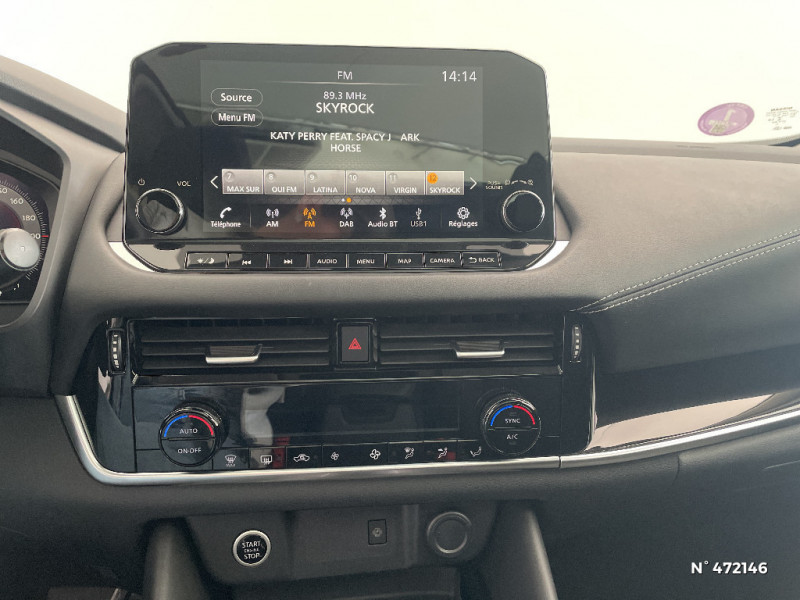 Peinture opaque monoton / Plancher de coffre modulable / Poignées de maintien AV et AR / Points d'ancrage pour sièges enfants ISOFIX à l'AR (x2) / ProPILOT avec Navi-link : technologie de conduite assistée / Rails de toit longitudinaux / Repose-genoux en TEP (Tissu Enduit) / Rétroviseur intérieur électrochromatique / Sélection du mode de conduite (ECO, STANDARD et SPORT) / Sellerie Tissu Noir et Gris / Siège conducteur avec réglage lombaire électrique 8 voies / Siège conducteur avec réglage lombaire 2 voies / Système "Chassis Control" (contrôle actif de trajectoire et de l'assiette) / Système d'alerte anticollision AR intelligent avec détection des objets en mouvement / Système d'alerte prédictif anticollision frontale / Système de navigation NissanConnect avec écran tactile 9" / Système d'ouverture et de démarrage sans clé "Intelligent key" / Port USB AV (USB-A) / Porte-gobelets (x2) / Prise 12V dans le coffre / Trappe de carburant sans bouchon / Volant et pommeau de levier de vitesses gainé cuir / Wi-Fi (service payant) et reconnaissance vocale / ABS et EBD / Antenne aileron de requin / Bacs de rangement dans les contre-portes AV et AR / Cache-bagages amovible / Chargeur à induction pour Smartphone 15W / Combiné d'instrumentation digital avec écran 12,3'' TFT / Commandes au volant: contrôle de l'ordinateur de bord, audio, téléphone, régulateur et limiteur de vitesse / Compartiment pour lunettes de soleil / Crochets d'arrimage (6) dans le coffre / Crochets de cintres à l'AR / Deuxième port USB AV (USB-A et USB-C) / Double port USB AR (USB-A et USB-C) / Eclairage d'ambiance linéaire / Eclairage du coffre (x2) / Feu stop central LED / Feux de détresse à déclenchement automatique / Feux de route adaptatifs / Feux de route intelligents avec 12 fasceaux indépendants / Feux diurnes LED avec système Follow Me Home / Frein à main électrique avec aide au stationnement/démarrage et fonction Autohold / Freinage d'urgence anticollision AR / Freinage d'urgence intelligent avec détection piétons, cyclistes et intersections / Habillage console centrale et contre-portes en TEP / Liseuses AV et AR / NBAS (amplificateur de freinage d'urgence) / Nissan AVM - Vision Intelligente à 360° / Nissan Connect Services / Pare-soleil côté conducteur et passager avec miroir de courtoisie éclairé
