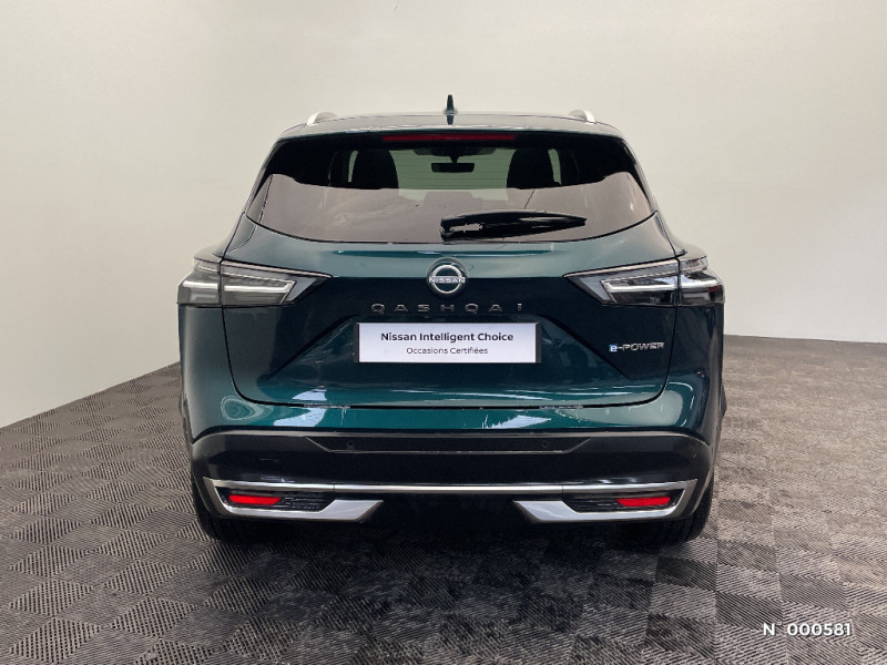 Freinage d'urgence anticollision AR / Freinage d'urgence intelligent avec détection piétons, cyclistes et intersections / Hayon électrique avec ouverture mains libres / Inserts de pare-chocs AV et AR Gris satiné / Kit de réparation pneumatique / Liseuses LED à l'AV et à l'AR / Mémorisation des réglages via l'Intelligent Key (siège conducteur et rétroviseurs extérieurs) / NBAS (amplificateur de freinage d'urgence) / Nissan AVM 3D - Vision Intelligente à 360° : système d'aide au stationnement qui facilite les manoeuvres de stationnement en vous offrant une vision à 360° : Caméra AR avec repères de gabarit, Caméra AV, Caméras latérales situées dans les rétroviseurs extérieurs, Radars 360°, Fonction ''capot transparent'', Mémorisation stationnement régulier et intersections / Régulateur de vitesse intelligent avec ajustement aux limitations de vitesse sur commande / Repose-genoux en TEP / Rétroviseur intérieur électrochromatique sans contour / Rétroviseurs extérieurs avec fonction mémoire et fonction marche AR / Sélection du mode de conduite (ECO, STANDARD et SPORT) / Sellerie TEP Noir / Inserts Brun / Siège conducteur avec fonction mémoire / Siège conducteur avec réglage lombaire électrique 2 voies / Siège conducteur avec réglages électriques 8 voies / Siège passager avec réglage lombaire manuel 2 voies / Système audio radio avec écran tactile 12,3" et 6 HP / Système "Chassis Control" (contrôle actif de trajectoire et de l'assiette) / Système d'alerte anticollision AR intelligent / Système d'alerte prédictif anticollision frontale / 6 crochets de fixation dans le coffre (4 au plancher, 2 sur les côtés) / Trappe de carburant sans bouchon / Système de navigation NissanConnect avec services Google intégrés Google Maps, Google Assistant, Google Play Store, Live Traffic et cartes 3D, Navigation porte-à-porte, Recherche par Points d'Intérêt, Google Street View, Vue Satellite et Météo, Mise à jour des cartes et logiciels, Prix des carburants / Système d'ouverture et de démarrage sans clé "Intelligent key" avec fonction de verrouillage/ déverrouillage à l'approche du véhicule / Technologie e-Pedal Step / NissanConnect Services - Services télématiques avec accès à distance depuis un smartphone Service de commandes à distance, Géolocalisation du véhicule, Historique de conduite et de navigation, Rapports sur l'état de santé du véhicule et alertes de dysfonctionnement, Rappel des pas d'entretien, Aide et assistance Nissan, Point d'accès Wi-Fi, Alertes intelligentes, Compatibilité Amazon Alexa / Ouverture des portières AR à 85° / Pare-chocs AV et AR Noir brillant / Pare-chocs AV et AR Noir mat / Pare-soleil côté conducteur et passager avec miroir de courtoisie éclairé / Plancher de coffre modulable / Poignées de maintien pour passager AV et AR / Points d'ancrage pour sièges enfants ISOFIX à l'AR (x2) / Porte-gobelets (x2) / Prise 12V à l'AV (x1) et dans le coffre (x1) / ProPILOT avec Navi-link : technologie de conduite assistée Aide au maintien dans la voie, Freinage anticipé dans les courbes via la navigation, Assistant de conduite en embouteillage, Ajustement aux limitations de vitesse (automatique ou sur commande) / ProPILOT Park : technologie de stationnement automatique / Rails de toit longitudinaux chromés / ABS (système antiblocage des freins) / Accoudoir central AR avec porte-gobelets (2) / Alarme périmétrique / Alerte et prévention de sortie de voie / Antenne aileron de requin / Badges e-POWER / Boîte de vitesses automatique 1 rapports / Bouton d'accès rapide aux réglages des aides à la conduite / Buses de ventilation AR / Cache-bagages amovible / Chargeur à induction pour Smartphone 15W / Ciel de toit Noir / Clignotants AV et AR à défilement / Clignotants AV et AR LED / Combiné d'instrumentation digital 12,3'' / Commandes au volant: contrôle de l'ordinateur de bord, audio, téléphone, régulateur et limiteur de vitesse / Compartiment pour lunettes de soleil (non disponible avec toit panoramique en verre) / Contre-portes et console centrale en TEP / Contrôle de traction électronique / Double port USB AR (USB-A et USB-C) / Double port USB AV et AR (USB-C) / Eclairage d'ambiance personnalisable (11 points lumineux) / Eclairage du coffre (x2) / Feu stop central LED / Feux AR "Super-RED" / Feux de détresse à déclenchement automatique / Feux de route adaptatifs / Feux de route intelligents avec 12 fasceaux indépendants / Frein à main électrique avec aide au stationnement/démarrage et fonction Autohold