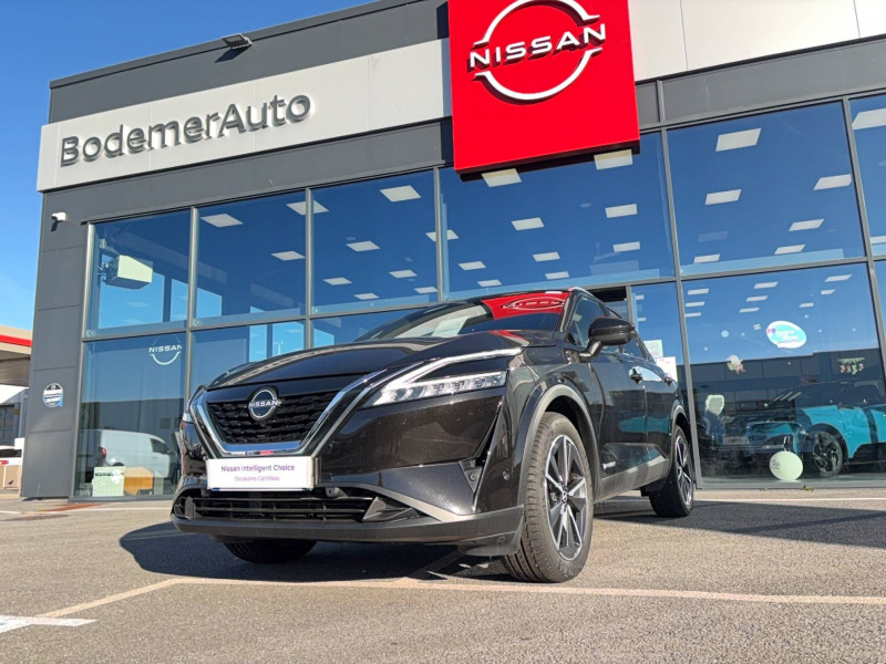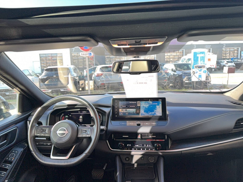 ABS et EBD / Accoudoir central AR avec porte-gobelets (2) / Alarme périmétrique / Antenne aileron de requin / Badges e-POWER / Buses de ventilation AR / Cache-bagages amovible / Chargeur à induction pour Smartphone 15W / Ciel de toit Noir / Clignotants AV et AR LED / Combiné d'instrumentation digital avec écran 12,3'' TFT / Commandes au volant: contrôle de l'ordinateur de bord, audio, téléphone, régulateur et limiteur de vitesse / Compartiment pour lunettes de soleil / Crochets d'arrimage (6) dans le coffre / Deuxième port USB AV (USB-A et USB-C) / Double port USB AR (USB-A et USB-C) / Eclairage d'ambiance (contre-portes et console centrale) / Eclairage du coffre (x2) / Feu stop central LED / Feux de détresse à déclenchement automatique / Feux de route intelligents avec 12 fasceaux indépendants / Freinage d'urgence anticollision AR / Freinage d'urgence intelligent avec détection piétons, cyclistes et intersections / Frein à main électrique avec aide au stationnement/démarrage et fonction Autohold / Habillage console centrale et contre-portes en TEP / Hayon électrique avec ouverture mains libres / Insert de pare-chocs AR Gris satiné / Kit de réparation pneumatique / Liseuses AV et AR / NBAS (amplificateur de freinage d'urgence) / Nissan Connect Services / Ouverture des portières AR à 85° / Pare-soleil côté conducteur et passager avec miroir de courtoisie éclairé / Peinture opaque monoton / Plancher de coffre modulable / Poignées de maintien pour passager AV et AR / Points d'ancrage pour sièges enfants ISOFIX à l'AR (x2) / Porte-gobelets AV (x2) / Port USB AV (USB-A) / Prise 12V dans le coffre / ProPILOT Park : technologie de stationnement automatique / Repose-genoux en TEP (Tissu Enduit) / Rétroviseur intérieur électrochromatique / Sélection du mode de conduite (ECO, STANDARD et SPORT) / Sellerie mixte TEP/Tissu Noir Bleuté ou Gris Clair / Siège conducteur avec réglage lombaire électrique 8 voies / Siège passager avec réglage lombaire manuel 2 voies / Système "Chassis Control" (contrôle actif de trajectoire et de l'assiette) / Système d'alerte anticollision AR intelligent avec détection des objets en mouvement / Système d'alerte prédictif anticollision frontale / Système d'ouverture et de démarrage sans clé "Intelligent key" / Technologie e-Pedal Step / Trappe de carburant sans bouchon / Pack Navigation: Nissan AVM - Vision Intelligente à 360°, Android Auto avec fil, Apple Car Play sans fil, Nissan Connect Services, Système de navigation NissanConnect avec écran tactile 12,3" : Live Traffic et cartes 3D, Navigation porte-à-porte, Recherche par Points d'Intérêt, Google Street View, Vue Satellite et Météo, Mise à jour des cartes et logiciels, Prix des carburants, Commandes vocales avancées avec Amazon Alexa® / Pack ProPilot: Feux de route intelligents, ProPILOT avec Navi-link : technologie de conduite assistée, Affichage tête haute 10,8", Clignotants AV et AR LED /