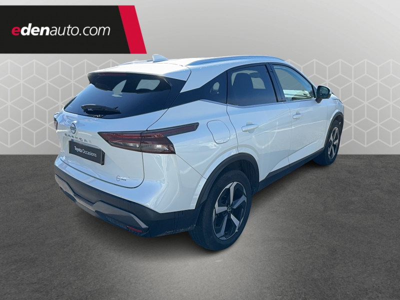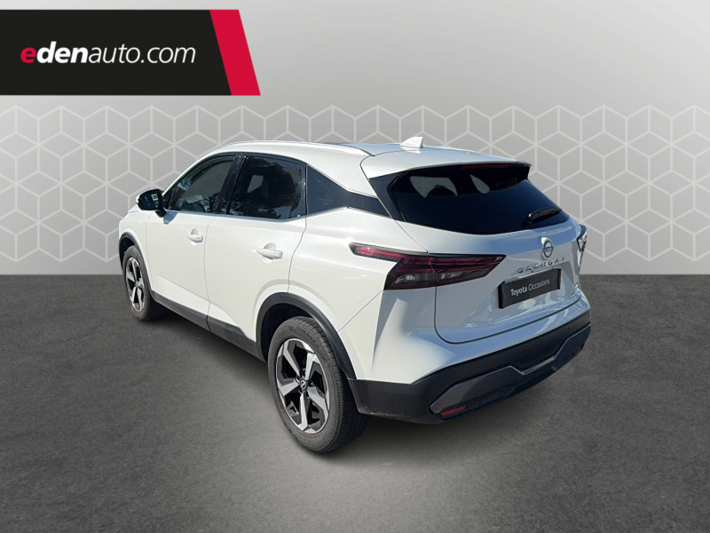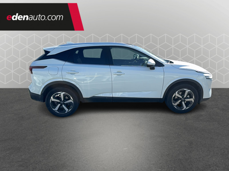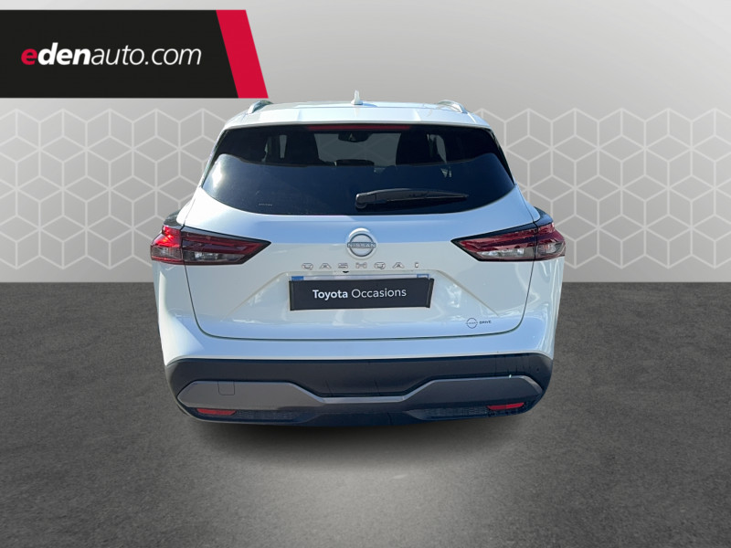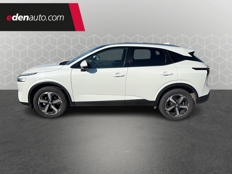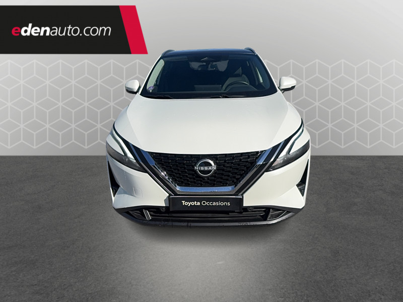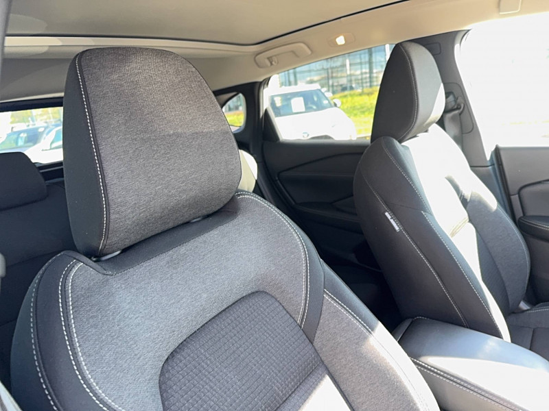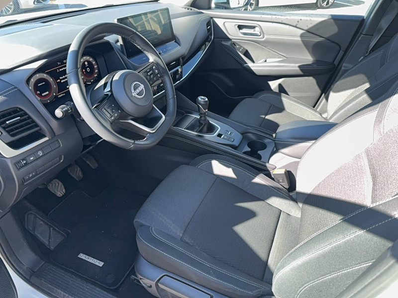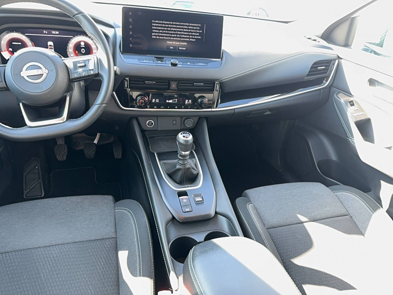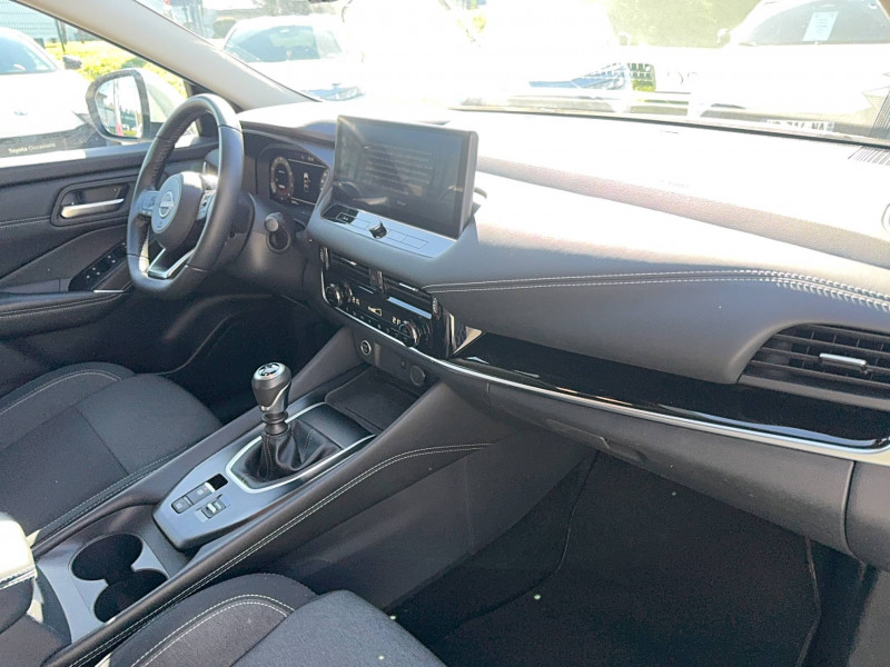 ABS et EBD / Accoudoir central AR avec porte-gobelets (2) / Alarme périmétrique / Antenne aileron de requin / Buses de ventilation AR / Cache-bagages amovible / Chargeur à induction pour Smartphone 15W / Combiné d'instrumentation digital avec écran 12,3'' TFT / Commandes au volant: contrôle de l'ordinateur de bord, audio, téléphone, régulateur et limiteur de vitesse / Compartiment pour lunettes de soleil / Crochets d'arrimage (6) dans le coffre / Deuxième port USB AV (USB-A et USB-C) / Double port USB AR (USB-A et USB-C) / Eclairage d'ambiance (console centrale) / Eclairage du coffre (x2) / Feu stop central LED / Feux de détresse à déclenchement automatique / Feux de route adaptatifs / Freinage d'urgence anticollision AR / Freinage d'urgence intelligent avec détection piétons, cyclistes et intersections / Frein à main électrique avec aide au stationnement/démarrage et fonction Autohold / Habillage console centrale et contre-portes en TEP / Insert de pare-chocs AR Gris satiné / Kit de réparation pneumatique / Liseuses AV et AR / NBAS (amplificateur de freinage d'urgence) / Nissan Connect Services / Ouverture des portières AR à 85° / Pack Navigation / Pare-soleil côté conducteur et passager avec miroir de courtoisie éclairé / Peinture opaque monoton / Plancher de coffre modulable / Poignées de maintien pour passager AV et AR / Points d'ancrage pour sièges enfants ISOFIX à l'AR (x2) / Pommeau de levier de vitesse gainé de cuir / Porte-gobelets AV (x2) / Port USB AV (USB-A) / Prise 12V dans le coffre / Repose-genoux en TEP (Tissu Enduit) / Rétroviseur intérieur électrochromatique / Sélection du mode de conduite (ECO, STANDARD et SPORT) / Sellerie Tissu Noir et Gris / Siège conducteur avec réglage lombaire électrique 2 voies / Système "Chassis Control" (contrôle actif de trajectoire et de l'assiette) / Système d'alerte anticollision AR intelligent avec détection des objets en mouvement / Système d'alerte prédictif anticollision frontale / Système d'ouverture et de démarrage sans clé "Intelligent key" / Trappe de carburant sans bouchon