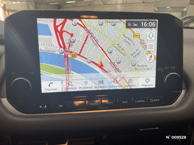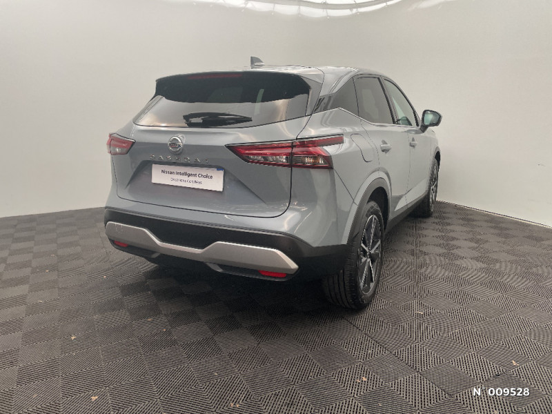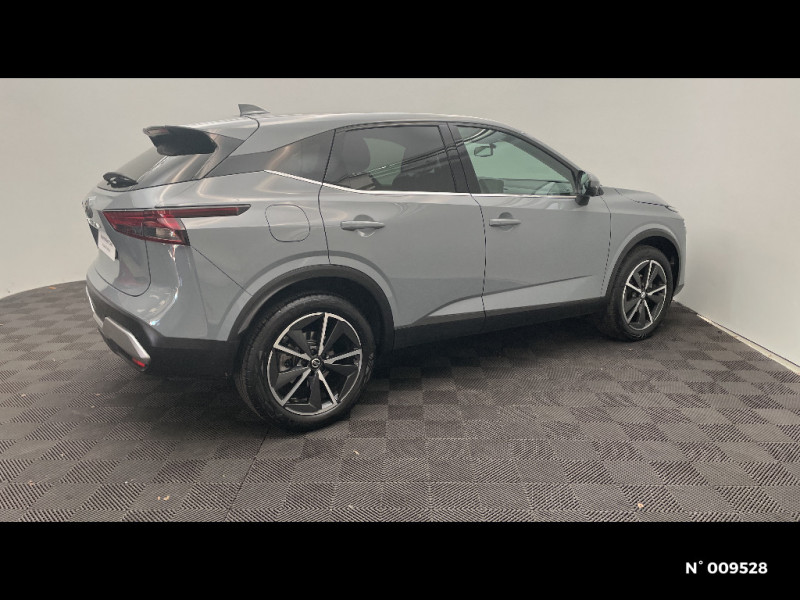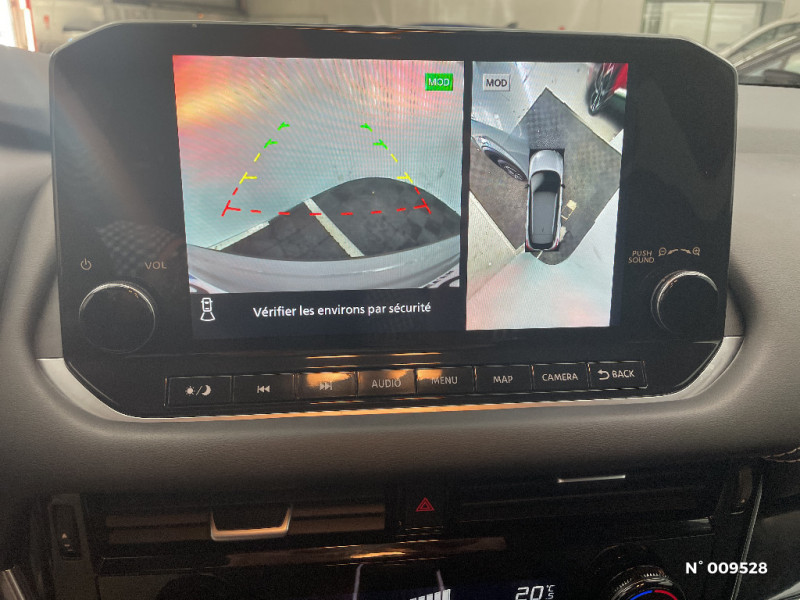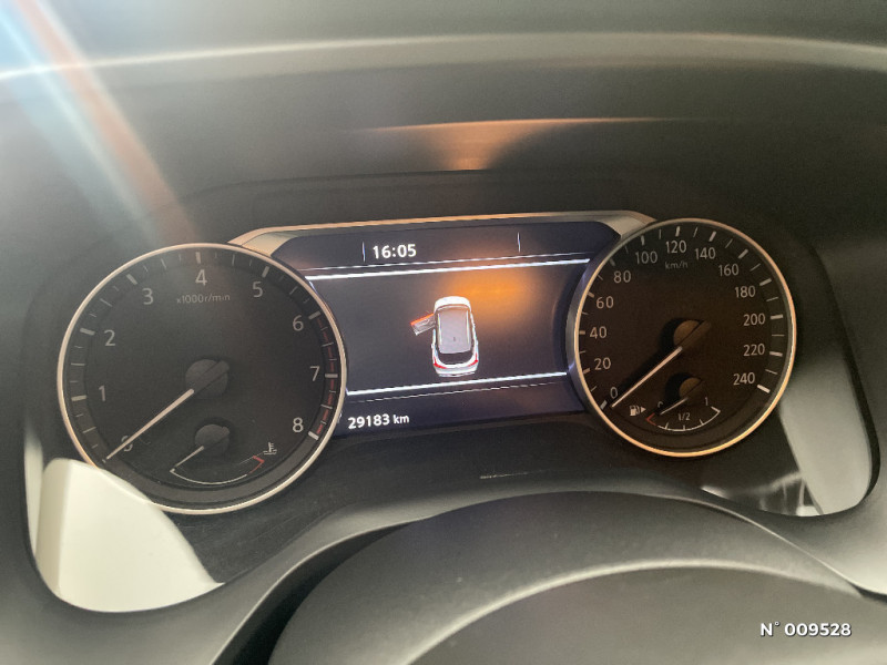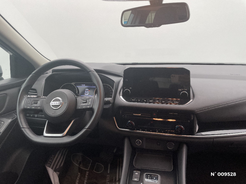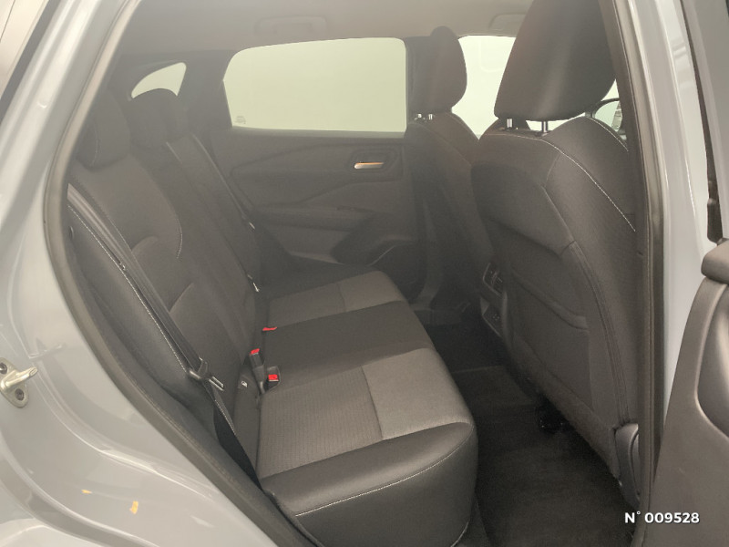 Système "Chassis Control" (contrôle actif de trajectoire et de l'assiette) / Système d'alerte anticollision AR intelligent avec détection des objets en mouvement / Système d'alerte prédictif anticollision frontale / Système de navigation NissanConnect avec écran tactile 9" / Système d'ouverture et de démarrage sans clé "Intelligent key" / Trappe de carburant sans bouchon / Feux diurnes LED avec système Follow Me Home / Frein à main électrique avec aide au stationnement/démarrage et fonction Autohold / Freinage d'urgence anticollision AR / Freinage d'urgence intelligent avec détection piétons, cyclistes et intersections / Habillage console centrale et contre-portes en TEP / Insert de pare-chocs AR couleur Argent / Kit de réparation pneumatique / Liseuses AV et AR / NBAS (amplificateur de freinage d'urgence) / Nissan AVM - Vision Intelligente à 360° / Nissan Connect Services / Ouverture des portières AR à 85° / Buses de ventilation AR / Cache-bagages amovible / Chargeur à induction pour Smartphone 15W / Combiné d'instrumentation avec écran couleur TFT 7" / Commandes au volant: contrôle de l'ordinateur de bord, audio, téléphone, régulateur et limiteur de vitesse / Compartiment pour lunettes de soleil / Crochets d'arrimage (6) dans le coffre / Crochets de cintres à l'AR / Deuxième port USB AV (USB-A et USB-C) / Double port USB AR (USB-A et USB-C) / Eclairage d'ambiance linéaire / Eclairage du coffre (x2) / Feu stop central LED / Vitres électriques avec mode impulsionnel AV et AR et commande à distance / ABS et EBD / Alarme périmétrique / Antenne aileron de requin / Volant et pommeau de levier de vitesses gainé cuir / Pare-soleil côté conducteur et passager avec miroir de courtoisie éclairé / Peinture opaque monoton / Plancher de coffre modulable / Poignées de maintien AV et AR / Points d'ancrage pour sièges enfants ISOFIX à l'AR (x2) / Port USB AV (USB-A) / Porte-gobelets (x2) / Prise 12V dans le coffre / Repose-genoux en TEP (Tissu Enduit) / Rétroviseur intérieur électrochromatique / Sélection du mode de conduite (ECO, STANDARD et SPORT) / Sellerie Tissu Noir et Gris / Siège conducteur avec réglage lombaire 2 voies / Feux de détresse à déclenchement automatique / Feux de route adaptatifs