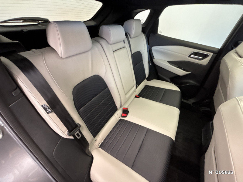 Feux diurnes LED avec système Follow Me Home / ABS et EBD / Accoudoir central AR avec porte-gobelets (2) / Frein à main électrique avec aide au stationnement/démarrage et fonction Autohold / Alarme périmétrique / Antenne aileron de requin / Badges e-POWER / Buses de ventilation AR / Cache-bagages amovible / Chargeur à induction pour Smartphone 15W / Ciel de toit Noir / Clignotants AV et AR LED / Combiné d'instrumentation digital avec écran 12,3'' TFT / Commandes au volant: contrôle de l'ordinateur de bord, audio, téléphone, régulateur et limiteur de vitesse / Compartiment pour lunettes de soleil / Crochets d'arrimage (6) dans le coffre / Deuxième port USB AV (USB-A et USB-C) / Double port USB AR (USB-A et USB-C) / Eclairage d'ambiance (contre-portes et console centrale) / Eclairage du coffre (x2) / Feu stop central LED / Feux de détresse à déclenchement automatique / Ouverture des portières AR à 85° / Pack Navigation / Pack ProPilot / Pare-soleil côté conducteur et passager avec miroir de courtoisie éclairé / Peinture opaque monoton / Plancher de coffre modulable / Poignées de maintien AV et AR / Poignées de maintien pour passager AV et AR / Points d'ancrage pour sièges enfants ISOFIX à l'AR (x2) / Port USB AV (USB-A) / Porte-gobelets AV (x2) / Prise 12V dans le coffre / ProPILOT Park : technologie de stationnement automatique / Repose-genoux en TEP (Tissu Enduit) / Rétroviseur intérieur électrochromatique / Sélection du mode de conduite (ECO, STANDARD et SPORT) / Sellerie mixte TEP/Tissu Noir Bleuté ou Gris Clair / Siège conducteur avec réglage lombaire électrique 8 voies / Siège passager avec réglage lombaire manuel 2 voies / Système "Chassis Control" (contrôle actif de trajectoire et de l'assiette) / Système d'alerte anticollision AR intelligent avec détection des objets en mouvement / Système d'alerte prédictif anticollision frontale / Système d'ouverture et de démarrage sans clé "Intelligent key" / Technologie e-Pedal Step / Trappe de carburant sans bouchon / Vitres électriques avec mode impulsionnel AV et AR et commande à distance / Volant et pommeau de levier de vitesses gainé cuir / Freinage d'urgence anticollision AR / Freinage d'urgence intelligent avec détection piétons, cyclistes et intersections / Habillage console centrale et contre-portes en TEP / Hayon électrique avec ouverture mains libres / Insert de pare-chocs AR Gris satiné / Kit de réparation pneumatique / Liseuses AV et AR / NBAS (amplificateur de freinage d'urgence) / Nissan Connect Services / Feux de route intelligents avec 12 fasceaux indépendants
