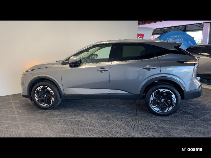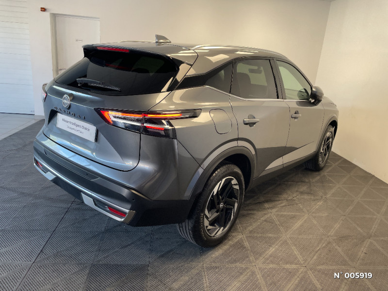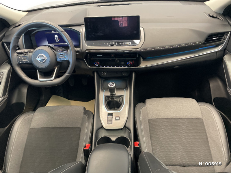 Nissan Connect Services / Pack Navigation / Pare-soleil côté conducteur et passager avec miroir de courtoisie éclairé / Peinture opaque monoton / Plancher de coffre modulable / Poignées de maintien AV et AR / Points d'ancrage pour sièges enfants ISOFIX à l'AR (x2) / Port USB AV (USB-A) / Porte-gobelets (x2) / Prise 12V dans le coffre / Repose-genoux en TEP (Tissu Enduit) / Rétroviseur intérieur électrochromatique / Sélection du mode de conduite (ECO, STANDARD et SPORT) / Sellerie Tissu Noir et Gris / Siège conducteur avec réglage lombaire 2 voies / Feu stop central LED / Feux de détresse à déclenchement automatique / Feux de route adaptatifs / Feux diurnes LED avec système Follow Me Home / Frein à main électrique avec aide au stationnement/démarrage et fonction Autohold / Freinage d'urgence anticollision AR / Freinage d'urgence intelligent avec détection piétons, cyclistes et intersections / Système "Chassis Control" (contrôle actif de trajectoire et de l'assiette) / Système d'alerte anticollision AR intelligent avec détection des objets en mouvement / Système d'alerte prédictif anticollision frontale / ABS et EBD / Alarme périmétrique / Antenne aileron de requin / Système de navigation NissanConnect avec écran tactile 9" / Système d'ouverture et de démarrage sans clé "Intelligent key" / Trappe de carburant sans bouchon / Vitres électriques avec mode impulsionnel AV et AR et commande à distance / Volant et pommeau de levier de vitesses gainé cuir / Cache-bagages amovible / Combiné d'instrumentation digital avec écran 12,3'' TFT / Commandes au volant: contrôle de l'ordinateur de bord, audio, téléphone, régulateur et limiteur de vitesse / Compartiment pour lunettes de soleil / Crochets d'arrimage (6) dans le coffre / Crochets de cintres à l'AR / Deuxième port USB AV (USB-A et USB-C) / Double port USB AR (USB-A et USB-C) / Eclairage d'ambiance linéaire / Eclairage du coffre (x2) / Habillage console centrale et contre-portes en TEP / Insert de pare-chocs AR couleur Argent / Kit de réparation pneumatique / Liseuses AV et AR / NBAS (amplificateur de freinage d'urgence) / Nissan AVM - Vision Intelligente à 360°