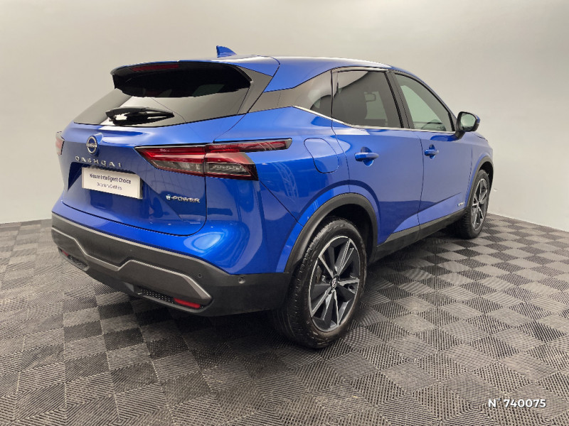 Alarme périmétrique / Antenne aileron de requin / Badges e-POWER / Buses de ventilation AR / Cache-bagages amovible / Chargeur à induction pour Smartphone 15W / Ciel de toit Noir / Clignotants AV et AR LED / Combiné d'instrumentation digital avec écran 12,3'' TFT / Commandes au volant: contrôle de l'ordinateur de bord, audio, téléphone, régulateur et limiteur de vitesse / Compartiment pour lunettes de soleil / Crochets d'arrimage (6) dans le coffre / Deuxième port USB AV (USB-A et USB-C) / Double port USB AR (USB-A et USB-C) / Eclairage d'ambiance (contre-portes et console centrale) / Eclairage du coffre (x2) / Feu stop central LED / Feux de détresse à déclenchement automatique / Feux de route intelligents avec 12 fasceaux indépendants / Feux diurnes LED avec système Follow Me Home / Frein à main électrique avec aide au stationnement/démarrage et fonction Autohold / Freinage d'urgence anticollision AR / Freinage d'urgence intelligent avec détection piétons, cyclistes et intersections / Habillage console centrale et contre-portes en TEP / Hayon électrique avec ouverture mains libres / Insert de pare-chocs AR Gris satiné / Kit de réparation pneumatique / ABS et EBD / Accoudoir central AR avec porte-gobelets (2) / NBAS (amplificateur de freinage d'urgence) / Nissan Connect Services / Ouverture des portières AR à 85° / Pack Navigation / Pack ProPilot / Pare-soleil côté conducteur et passager avec miroir de courtoisie éclairé / Peinture opaque monoton / Plancher de coffre modulable / Poignées de maintien AV et AR / Poignées de maintien pour passager AV et AR / Points d'ancrage pour sièges enfants ISOFIX à l'AR (x2) / Port USB AV (USB-A) / Porte-gobelets AV (x2) / Prise 12V dans le coffre / ProPILOT Park : technologie de stationnement automatique / Repose-genoux en TEP (Tissu Enduit) / Rétroviseur intérieur électrochromatique / Sélection du mode de conduite (ECO, STANDARD et SPORT) / Sellerie mixte TEP/Tissu Noir Bleuté ou Gris Clair / Siège conducteur avec réglage lombaire électrique 8 voies / Siège passager avec réglage lombaire manuel 2 voies / Système "Chassis Control" (contrôle actif de trajectoire et de l'assiette) / Système d'alerte anticollision AR intelligent avec détection des objets en mouvement / Système d'alerte prédictif anticollision frontale / Système d'ouverture et de démarrage sans clé "Intelligent key" / Technologie e-Pedal Step / Trappe de carburant sans bouchon / Vitres électriques avec mode impulsionnel AV et AR et commande à distance / Volant et pommeau de levier de vitesses gainé cuir / Liseuses AV et AR