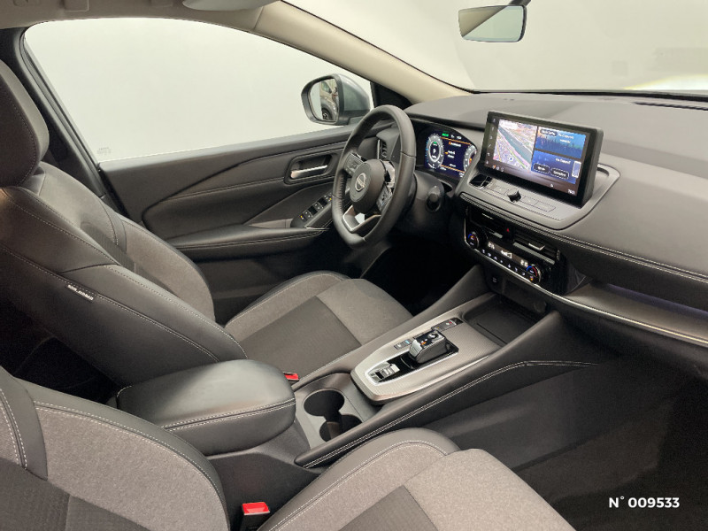 Trappe de carburant sans bouchon / 6 crochets de fixation dans le coffre (4 au plancher, 2 sur les côtés) / Inserts de pare-chocs AV et AR Gris satiné / Kit de réparation pneumatique / Liseuses LED à l'AV et à l'AR / NBAS (amplificateur de freinage d'urgence) / Nissan AVM 3D - Vision Intelligente à 360° : système d'aide au stationnement qui facilite les manoeuvres de stationnement en vous offrant une vision à 360° : Caméra AR avec repères de gabarit, Caméra AV, Caméras latérales situées dans les rétroviseurs extérieurs, Radars 360°, Fonction ''capot transparent'', Mémorisation stationnement régulier et intersections / Ouverture des portières AR à 85° / Pare-chocs AV et AR Noir mat / Pare-soleil côté conducteur et passager avec miroir de courtoisie éclairé / Plancher de coffre modulable / Accoudoir central AR avec porte-gobelets (2) / Antenne aileron de requin / Badges e-POWER / Boîte de vitesses automatique 1 rapports / Bouton d'accès rapide aux réglages des aides à la conduite / Buses de ventilation AR / Cache-bagages amovible / Chargeur à induction pour Smartphone 15W / Ciel de toit Gris clair / Clignotants AV et AR LED / Combiné d'instrumentation digital 12,3'' / Commandes au volant: contrôle de l'ordinateur de bord, audio, téléphone, régulateur et limiteur de vitesse / Compartiment pour lunettes de soleil (non disponible avec toit panoramique en verre) / Contre-portes et console centrale en TEP / Contrôle de traction électronique / Double port USB AR (USB-A et USB-C) / Double port USB AV et AR (USB-C) / Eclairage d'ambiance personnalisable (7 points lumineux) / Eclairage du coffre (x2) / ABS (système antiblocage des freins) / Feu stop central LED / Feux de détresse à déclenchement automatique / Feux de route adaptatifs / Frein à main électrique avec aide au stationnement/démarrage et fonction Autohold / Freinage d'urgence anticollision AR / Freinage d'urgence intelligent avec détection piétons, cyclistes et intersections / Poignées de maintien pour passager AV et AR / Points d'ancrage pour sièges enfants ISOFIX à l'AR (x2) / Porte-gobelets (x2) / Prise 12V à l'AV (x1) et dans le coffre (x1) / NissanConnect Services - Services télématiques avec accès à distance depuis un smartphone Service de commandes à distance, Géolocalisation du véhicule, Historique de conduite et de navigation, Rapports sur l'état de santé du véhicule et alertes de dysfonctionnement, Rappel des pas d'entretien, Aide et assistance Nissan, Point d'accès Wi-Fi, Alertes intelligentes, Compatibilité Amazon Alexa / ProPILOT avec Navi-link : technologie de conduite assistée Aide au maintien dans la voie, Freinage anticipé dans les courbes via la navigation, Assistant de conduite en embouteillage, Ajustement aux limitations de vitesse (automatique ou sur commande) / Rails de toit longitudinaux chromés / Régulateur de vitesse intelligent avec ajustement aux limitations de vitesse sur commande / Repose-genoux en TEP / Rétroviseur intérieur électrochromatique sans contour / Sélection du mode de conduite (ECO, STANDARD et SPORT) / Sellerie mixte TEP/Tissu (Noir) / Siège conducteur avec réglage lombaire électrique 2 voies / Système audio radio avec écran tactile 12,3" et 6 HP / Système "Chassis Control" (contrôle actif de trajectoire et de l'assiette) / Système d'alerte anticollision AR intelligent / Alarme périmétrique / Alerte et prévention de sortie de voie / Système d'alerte prédictif anticollision frontale / Système de navigation NissanConnect avec services Google intégrés Google Maps, Google Assistant, Google Play Store, Live Traffic et cartes 3D, Navigation porte-à-porte, Recherche par Points d'Intérêt, Google Street View, Vue Satellite et Météo, Mise à jour des cartes et logiciels, Prix des carburants / Système d'ouverture et de démarrage sans clé "Intelligent key" avec fonction de verrouillage/ déverrouillage à l'approche du véhicule / Technologie e-Pedal Step