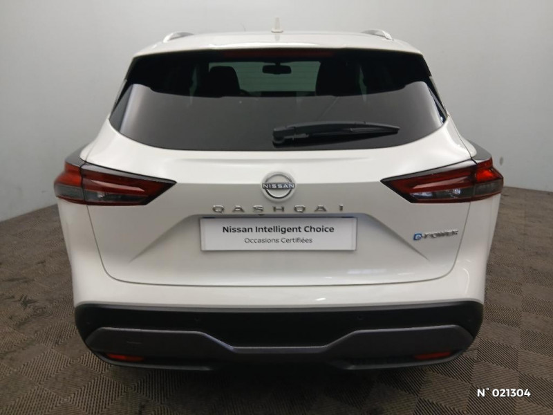 Vitres électriques avec mode impulsionnel AV et AR et commande à distance / Port USB AV (USB-A) / Porte-gobelets AV (x2) / Prise 12V dans le coffre / ABS et EBD / Accoudoir central AR avec porte-gobelets (2) / Alarme périmétrique / Antenne aileron de requin / Badges e-POWER / Buses de ventilation AR / Cache-bagages amovible / Chargeur à induction pour Smartphone 15W / Combiné d'instrumentation digital avec écran 12,3'' TFT / Commandes au volant: contrôle de l'ordinateur de bord, audio, téléphone, régulateur et limiteur de vitesse / Volant et pommeau de levier de vitesses gainé cuir / Compartiment pour lunettes de soleil / Crochets d'arrimage (6) dans le coffre / Deuxième port USB AV (USB-A et USB-C) / Repose-genoux en TEP (Tissu Enduit) / Rétroviseur intérieur électrochromatique / Sélection du mode de conduite (ECO, STANDARD et SPORT) / Sellerie Tissu Noir et Gris / Siège conducteur avec réglage lombaire électrique 2 voies / Siège conducteur avec réglage lombaire 2 voies / Double port USB AR (USB-A et USB-C) / Système "Chassis Control" (contrôle actif de trajectoire et de l'assiette) / Système d'alerte anticollision AR intelligent avec détection des objets en mouvement / Système d'alerte prédictif anticollision frontale / Eclairage d'ambiance (console centrale) / Eclairage d'ambiance linéaire / Eclairage du coffre (x2) / Feu stop central LED / Feux de détresse à déclenchement automatique / Feux de route adaptatifs / Feux diurnes LED avec système Follow Me Home / Frein à main électrique avec aide au stationnement/démarrage et fonction Autohold / Freinage d'urgence anticollision AR / Freinage d'urgence intelligent avec détection piétons, cyclistes et intersections / Habillage console centrale et contre-portes en TEP / Insert de pare-chocs AR Gris satiné / Kit de réparation pneumatique / Liseuses AV et AR / NBAS (amplificateur de freinage d'urgence) / Nissan Connect Services / Ouverture des portières AR à 85° / Pack Navigation / Pare-soleil côté conducteur et passager avec miroir de courtoisie éclairé / Peinture opaque monoton / Plancher de coffre modulable / Poignées de maintien AV et AR / Poignées de maintien pour passager AV et AR / Points d'ancrage pour sièges enfants ISOFIX à l'AR (x2) / Système d'ouverture et de démarrage sans clé "Intelligent key" / Technologie e-Pedal Step / Trappe de carburant sans bouchon