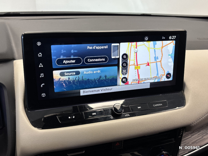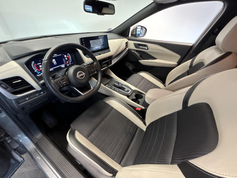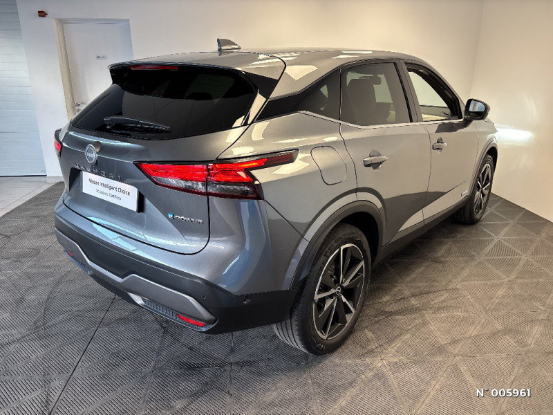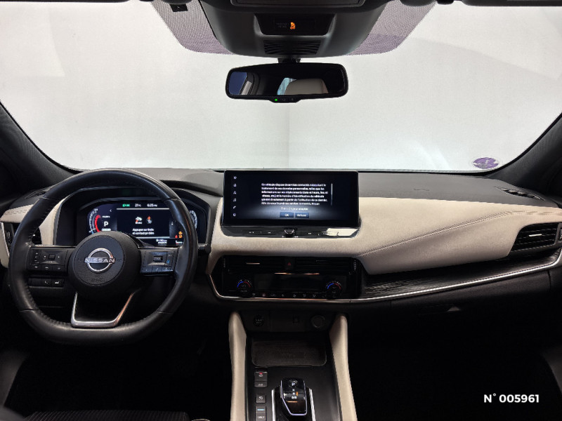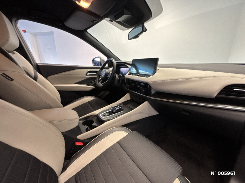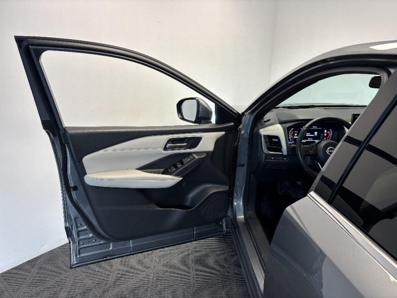 Repose-genoux en TEP (Tissu Enduit) / Rétroviseur intérieur électrochromatique / Sélection du mode de conduite (ECO, STANDARD et SPORT) / Sellerie mixte TEP/Tissu Noir Bleuté ou Gris Clair / Siège conducteur avec réglage lombaire électrique 8 voies / Siège passager avec réglage lombaire manuel 2 voies / Freinage d'urgence anticollision AR / Freinage d'urgence intelligent avec détection piétons, cyclistes et intersections / Habillage console centrale et contre-portes en TEP / Hayon électrique avec ouverture mains libres / Insert de pare-chocs AR Gris satiné / Kit de réparation pneumatique / Liseuses AV et AR / NBAS (amplificateur de freinage d'urgence) / Nissan Connect Services / Ouverture des portières AR à 85° / Pack Navigation / Pack ProPilot / Pare-soleil côté conducteur et passager avec miroir de courtoisie éclairé / Peinture opaque monoton / Plancher de coffre modulable / Poignées de maintien AV et AR / Poignées de maintien pour passager AV et AR / Points d'ancrage pour sièges enfants ISOFIX à l'AR (x2) / Port USB AV (USB-A) / Porte-gobelets AV (x2) / Prise 12V dans le coffre / ProPILOT Park : technologie de stationnement automatique / Système "Chassis Control" (contrôle actif de trajectoire et de l'assiette) / Système d'alerte anticollision AR intelligent avec détection des objets en mouvement / Système d'alerte prédictif anticollision frontale / Système d'ouverture et de démarrage sans clé "Intelligent key" / Technologie e-Pedal Step / Chargeur à induction pour Smartphone 15W / Ciel de toit Noir / Clignotants AV et AR LED / Combiné d'instrumentation digital avec écran 12,3'' TFT / Commandes au volant: contrôle de l'ordinateur de bord, audio, téléphone, régulateur et limiteur de vitesse / Compartiment pour lunettes de soleil / Crochets d'arrimage (6) dans le coffre / Deuxième port USB AV (USB-A et USB-C) / Double port USB AR (USB-A et USB-C) / Eclairage d'ambiance (contre-portes et console centrale) / Eclairage du coffre (x2) / Feu stop central LED / Feux de détresse à déclenchement automatique / Feux de route intelligents avec 12 fasceaux indépendants / Feux diurnes LED avec système Follow Me Home / Frein à main électrique avec aide au stationnement/démarrage et fonction Autohold / Alarme périmétrique / Antenne aileron de requin / Badges e-POWER / Buses de ventilation AR / Cache-bagages amovible / ABS et EBD / Accoudoir central AR avec porte-gobelets (2) / Trappe de carburant sans bouchon / Vitres électriques avec mode impulsionnel AV et AR et commande à distance / Volant et pommeau de levier de vitesses gainé cuir