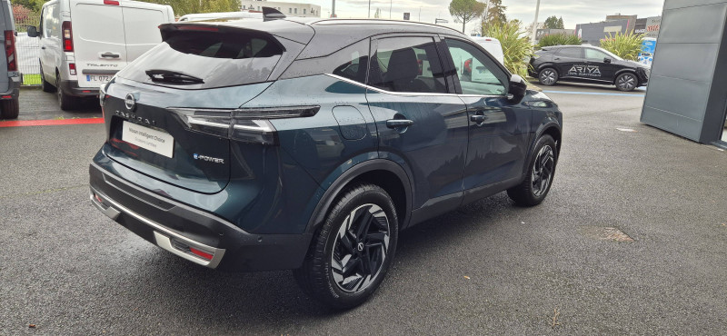 6 crochets de fixation dans le coffre (4 au plancher, 2 sur les côtés) / ABS (système antiblocage des freins) / Accoudoir central AR avec porte-gobelets (2) / Alarme périmétrique / Alerte et prévention de sortie de voie / Antenne aileron de requin Noir / Badges e-POWER / Boîte de vitesses automatique 1 rapports / Bouton d'accès rapide aux réglages des aides à la conduite / Buses de ventilation AR / Cache-bagages amovible / Chargeur à induction pour Smartphone 15W / Ciel de toit Gris clair / Clignotants AV et AR LED / Combiné d'instrumentation digital 12,3'' / Commandes au volant: contrôle de l'ordinateur de bord, audio, téléphone, régulateur et limiteur de vitesse / Compartiment pour lunettes de soleil / Contre-portes et console centrale en TEP / Contrôle de la traction (TCS) / Double port USB AR (USB-A et USB-C) / Double port USB AV et AR (USB-C) / Eclairage d'ambiance personnalisable / Eclairage du coffre (x2) / Feu stop central LED / Feux de détresse à déclenchement automatique / Feux de route adaptatifs / Freinage d'urgence anticollision AR / Freinage d'urgence intelligent avec détection piétons, cyclistes et intersections / Frein à main électrique avec aide au stationnement/démarrage et fonction Autohold / Garantie anticorrosion - perforation 12 ans, kilométrage illimité / Garantie Nissan Privilège Jusqu'à 8 ans de Garantie (moteur, boîte, pont) + Jusqu'à 8 ans d'Assistance 24h/24, 7j/7. Jusqu'à 8 ans ou 160 000 km, conditionnéà entretien annuel dans le réseau Nissan / Garantie peinture 3 ans, kilométrage illimité / Garantie sur tous les composants spécifiques Hybrid, e-POWER 5 ans (limitée à 100 000 km) Liste non exhaustive des composants inclus : batterie lithium-ion, moteur électrique, onduleur, générateur, système de refroidissement de la batterie, etc... / Garantie véhicule neuf 3 ans (limitée à 100 000 km) / Inserts de pare-chocs AV et AR Gris satiné / Kit de réparation pneumatique / Liseuses LED à l'AV et à l'AR / NBAS (amplificateur de freinage d'urgence) / Nissan AVM 3D - Vision Intelligente à 360° : système d'aide au stationnement qui facilite les manoeuvres de stationnement en vous offrant une vision à 360° : Caméra AR avec repères de gabarit, Caméra AV, Caméras latérales situées dans les rétroviseurs extérieurs, Radars 360°, Fonction ''capot transparent'', Mémorisation stationnement régulier et intersections / NissanConnect Services - Services télématiques avec accès à distance depuis un smartphone - Géolocalisation du véhicule - Historique de navigation - Point d'accès WiFi / NissanConnect Services - Services télématiques avec accès à distance depuis un smartphone Services de commandes à distance - Historique de conduite - Mise à jour à distance - Rapports sur l'état de santé du véhicule et alertes de dysfonctionnement - Rappels des pas d'entretien - Aide et assistance Nissan - Alertes intelligentes / Ouverture des portières AR à 85° / Pare-chocs AV et AR Noir mat / Pare-soleil côté conducteur et passager avec miroir de courtoisie éclairé / Planche de bord en TEP / Plancher de coffre modulable / Poignées de maintien pour passager AV et AR / Points d'ancrage pour sièges enfants ISOFIX à l'AR (x2) / Porte-gobelets (x2) / Prise 12V à l'AV (x1) et dans le coffre (x1) / ProPILOT avec Navi-link : technologie de conduite assistée Aide au maintien dans la voie, Freinage anticipé dans les courbes via la navigation, Assistant de conduite en embouteillage, Ajustement aux limitations de vitesse (automatique ou sur commande) / ProPILOT Park : technologie de stationnement automatique / Rails de toit longitudinaux chromés / Régulateur de vitesse intelligent avec ajustement aux limitations de vitesse sur commande / Repose-genoux en TEP / Rétroviseur intérieur électrochromatique sans contour / Sélection du mode de conduite (ECO, STANDARD et SPORT) / Sellerie mixte TEP/Tissu (Noir) / Siège conducteur avec réglage lombaire électrique 2 voies / Système audio radio avec écran tactile 12,3" et 6 HP / Système "Chassis Control" (contrôle actif de trajectoire et de l'assiette) / Système d'alerte anticollision AR intelligent / Système d'alerte prédictif anticollision frontale / Système de navigation NissanConnect avec services Google intégrés Google Maps, Google Assistant, Google Play Store, Live Traffic et cartes 3D, Navigation porte-à-porte, Recherche par Points d'Intérêt, Google Street View, Vue Satellite et Météo, Mise à jour des cartes et logiciels, Prix des carburants / Système d'ouverture et de démarrage sans clé "Intelligent key" avec fonction de verrouillage/ déverrouillage à l'approche du véhicule / Technologie e-Pedal Step / Trappe de carburant sans bouchon