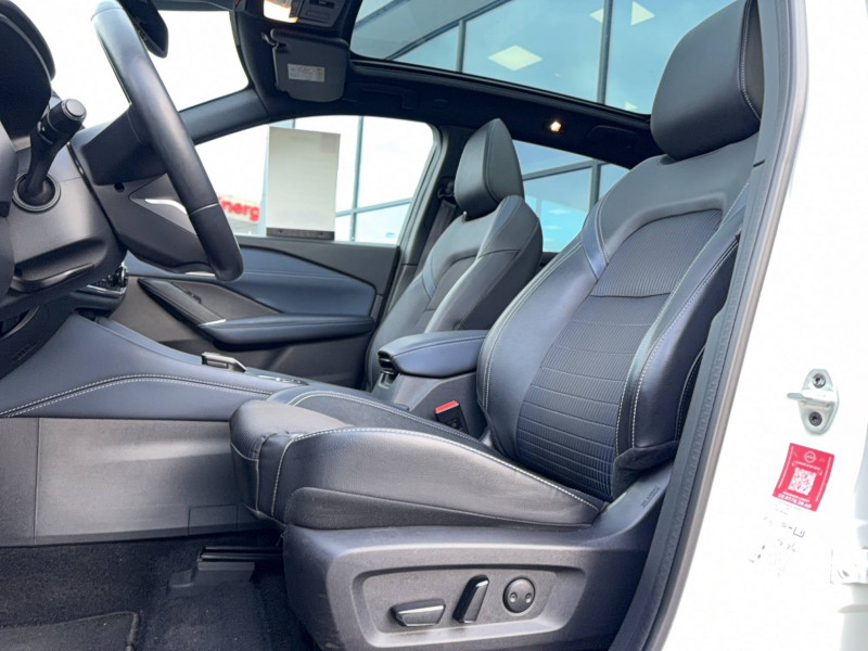 ABS et EBD / Alarme périmétrique / Antenne aileron de requin / Buses de ventilation AR / Cache-bagages amovible / Chargeur à induction pour Smartphone 15W / Ciel de toit Noir / Clignotants AV et AR LED / Combiné d'instrumentation digital avec écran 12,3'' TFT / Commandes au volant: contrôle de l'ordinateur de bord, audio, téléphone, régulateur et limiteur de vitesse / Compartiment pour lunettes de soleil / Crochets d'arrimage (6) dans le coffre / Deuxième port USB AV (USB-A et USB-C) / Double port USB AR (USB-A et USB-C) / Eclairage d'ambiance (contre-portes et console centrale) / Eclairage du coffre (x2) / Feu stop central LED / Feux de détresse à déclenchement automatique / Feux de route intelligents avec 12 fasceaux indépendants / Feux diurnes LED avec système Follow Me Home / Freinage d'urgence anticollision AR / Freinage d'urgence intelligent avec détection piétons, cyclistes et intersections / Frein à main électrique avec aide au stationnement/démarrage et fonction Autohold / Habillage console centrale et contre-portes en TEP / Hayon électrique avec ouverture mains libres / Insert de pare-chocs AR Gris satiné / Kit de réparation pneumatique / Liseuses AV et AR / NBAS (amplificateur de freinage d'urgence) / Ouverture des portières AR à 85° / Pare-soleil côté conducteur et passager avec miroir de courtoisie éclairé / Peinture opaque monoton / Plancher de coffre modulable / Poignées de maintien AV et AR / Points d'ancrage pour sièges enfants ISOFIX à l'AR (x2) / Porte-gobelets AV (x2) / Port USB AV (USB-A) / Prise 12V dans le coffre / ProPILOT Park : technologie de stationnement automatique / Repose-genoux en TEP (Tissu Enduit) / Rétroviseur intérieur électrochromatique / Sélection du mode de conduite (ECO, STANDARD et SPORT) / Sellerie mixte TEP/Tissu Noir Bleuté ou Gris Clair / Siège conducteur avec réglage lombaire électrique 8 voies / Siège passager avec réglage lombaire manuel 2 voies / Système "Chassis Control" (contrôle actif de trajectoire et de l'assiette) / Système d'alerte anticollision AR intelligent avec détection des objets en mouvement / Système d'alerte prédictif anticollision frontale / Système d'ouverture et de démarrage sans clé "Intelligent key" / Technologie e-Pedal Step / Trappe de carburant sans bouchon / Vitres électriques avec mode impulsionnel AV et AR et commande à distance / Volant et pommeau de levier de vitesses gainé cuir / Pack Navigation: Nissan Connect Services, Nissan AVM - Vision Intelligente à 360°, Système de navigation NissanConnect avec écran tactile 12,3" : Live Traffic et cartes 3D, Navigation porte-à-porte, Recherche par Points d'Intérêt, Google Street View, Vue Satellite et Météo, Mise à jour des cartes et logiciels, Prix des carburants, Commandes vocales avancées avec Amazon Alexa® / Pack Techno: Nissan AVM - Vision Intelligente à 360°, Nissan Connect Services, ProPILOT avec Navi-link : technologie de conduite assistée, Feux de route intelligents avec 12 fasceaux indépendants, Système de navigation NissanConnect avec écran tactile 12,3" : Live Traffic et cartes 3D, Navigation porte-à-porte, Recherche par Points d'Intérêt, Google Street View, Vue Satellite et Météo, Mise à jour des cartes et logiciels, Prix des carburants, Commandes vocales avancées avec Amazon Alexa®, Clignotants AV et AR LED /