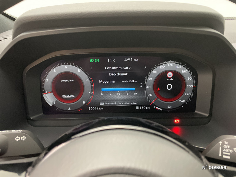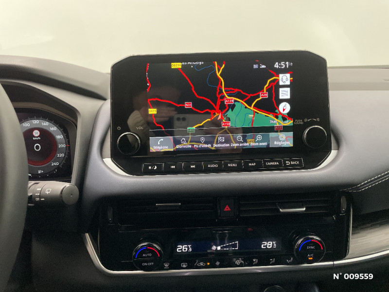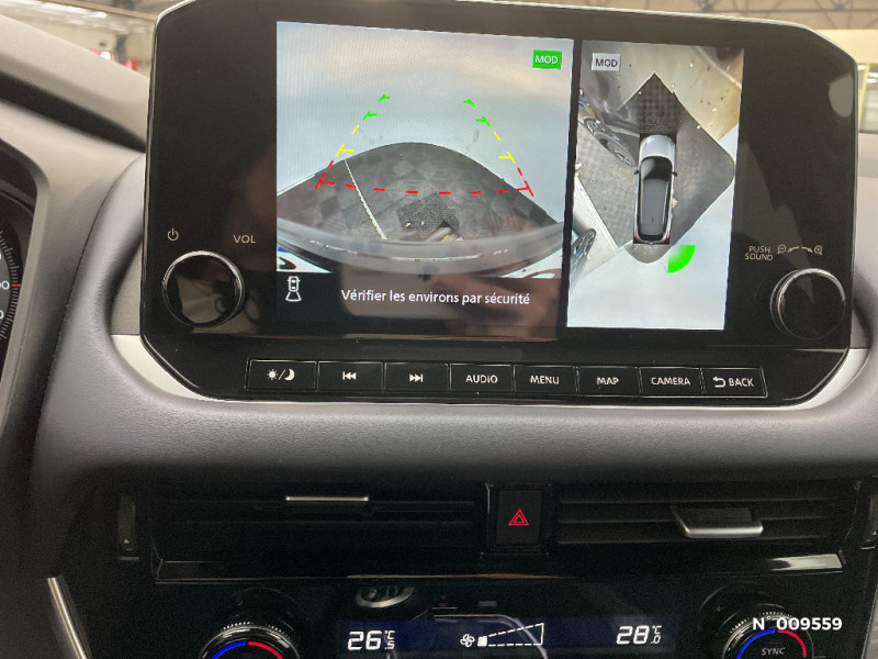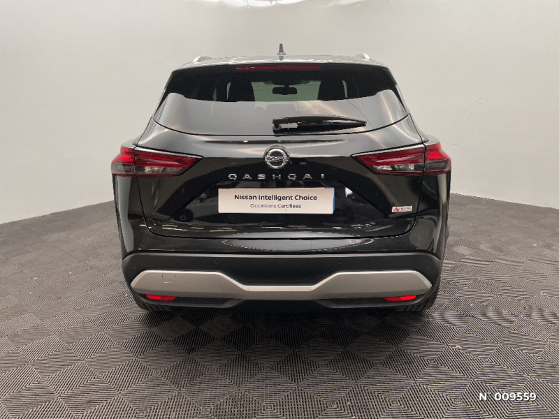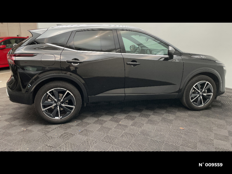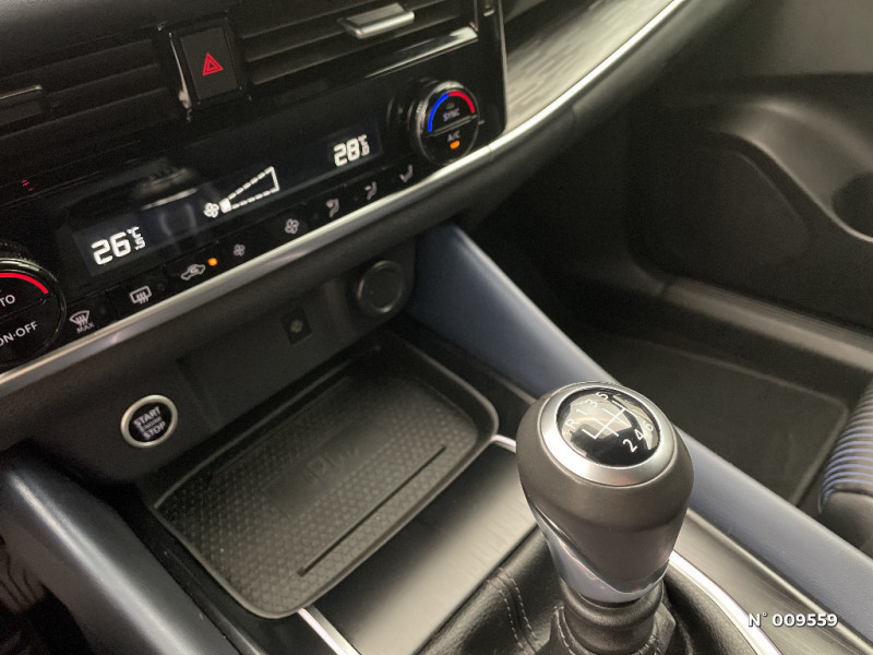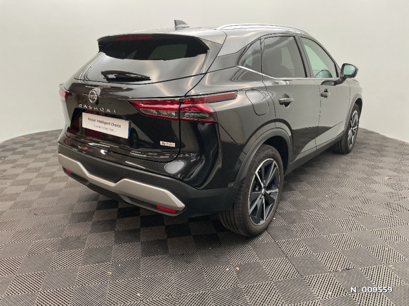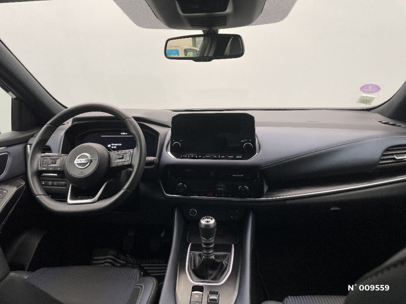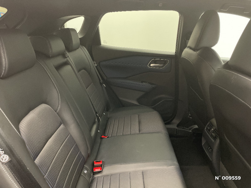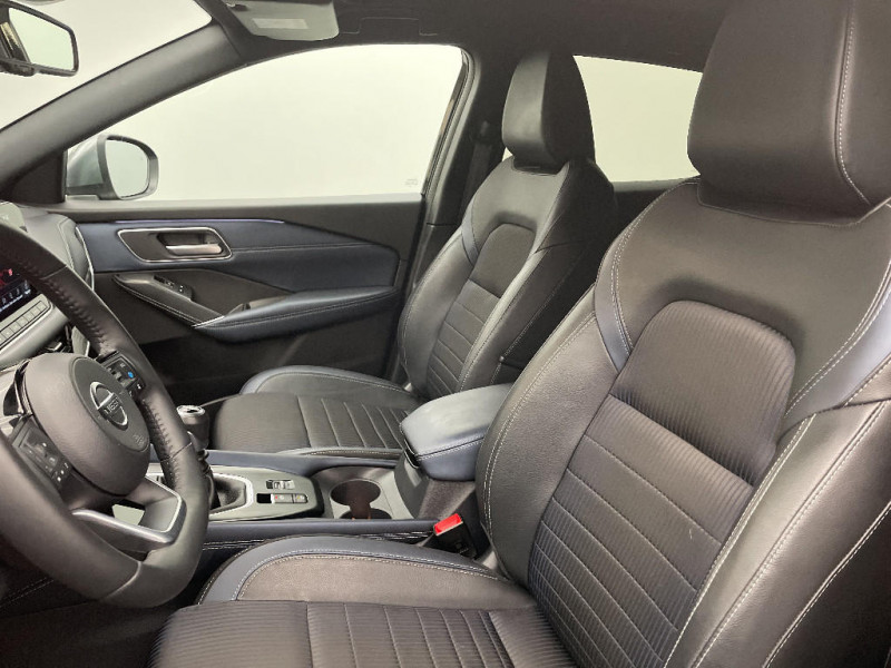 Eclairage d'ambiance (contre-portes et console centrale) / Eclairage du coffre (x2) / Feu stop central LED / Feux de détresse à déclenchement automatique / Feux de route intelligents avec 12 fasceaux indépendants / Feux diurnes LED avec système Follow Me Home / Frein à main électrique avec aide au stationnement/démarrage et fonction Autohold / Freinage d'urgence anticollision AR / Freinage d'urgence intelligent avec détection piétons, cyclistes et intersections / Prise 12V dans le coffre / ABS et EBD / Compartiment pour lunettes de soleil / Crochets d'arrimage (6) dans le coffre / Kit de réparation pneumatique / Liseuses AV et AR / NBAS (amplificateur de freinage d'urgence) / Nissan AVM - Vision Intelligente à 360° / Nissan Connect Services / Pack Driver Assist / Pack Navigation / Pare-soleil côté conducteur et passager avec miroir de courtoisie éclairé / Peinture opaque monoton / Plancher de coffre modulable / Poignées de maintien AV et AR / Points d'ancrage pour sièges enfants ISOFIX à l'AR (x2) / Port USB AV (USB-A) / Porte-gobelets (x2) / Alarme périmétrique / Antenne aileron de requin / Cache-bagages amovible / Chargeur à induction pour Smartphone 15W / Ciel de toit Noir / Combiné d'instrumentation digital avec écran 12,3'' TFT / Commandes au volant: contrôle de l'ordinateur de bord, audio, téléphone, régulateur et limiteur de vitesse / Vitres électriques avec mode impulsionnel AV et AR et commande à distance / Volant et pommeau de levier de vitesses gainé cuir / Repose-genoux en TEP (Tissu Enduit) / Rétroviseur intérieur électrochromatique / Sélection du mode de conduite (ECO, STANDARD et SPORT) / Sellerie mixte TEP/Tissu Noir Bleuté ou Gris Clair / Siège conducteur avec réglage lombaire électrique 8 voies / Siège passager avec réglage lombaire électrique 2 voies / Système "Chassis Control" (contrôle actif de trajectoire et de l'assiette) / Système d'alerte anticollision AR intelligent avec détection des objets en mouvement / Crochets de cintres à l'AR / Deuxième port USB AV (USB-A et USB-C) / Double port USB AR (USB-A et USB-C) / Système d'alerte prédictif anticollision frontale / Système de navigation NissanConnect avec écran tactile 9" / Système d'ouverture et de démarrage sans clé "Intelligent key" / Trappe de carburant sans bouchon / Habillage console centrale et contre-portes en TEP / Hayon électrique avec ouverture mains libres / Insert de pare-chocs AR couleur Argent
