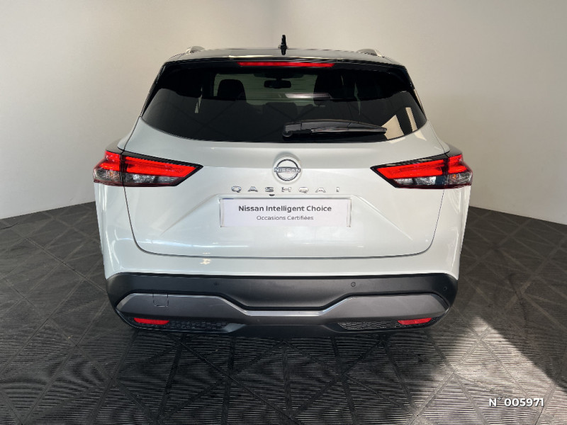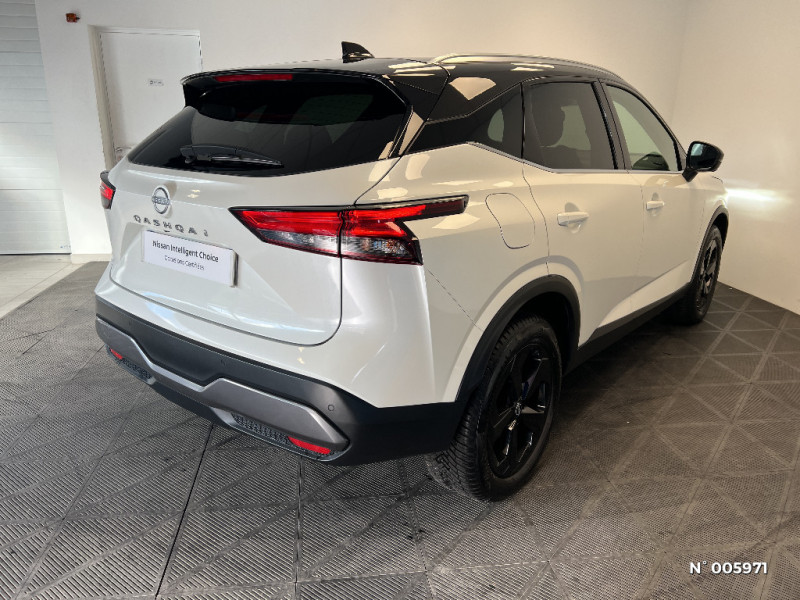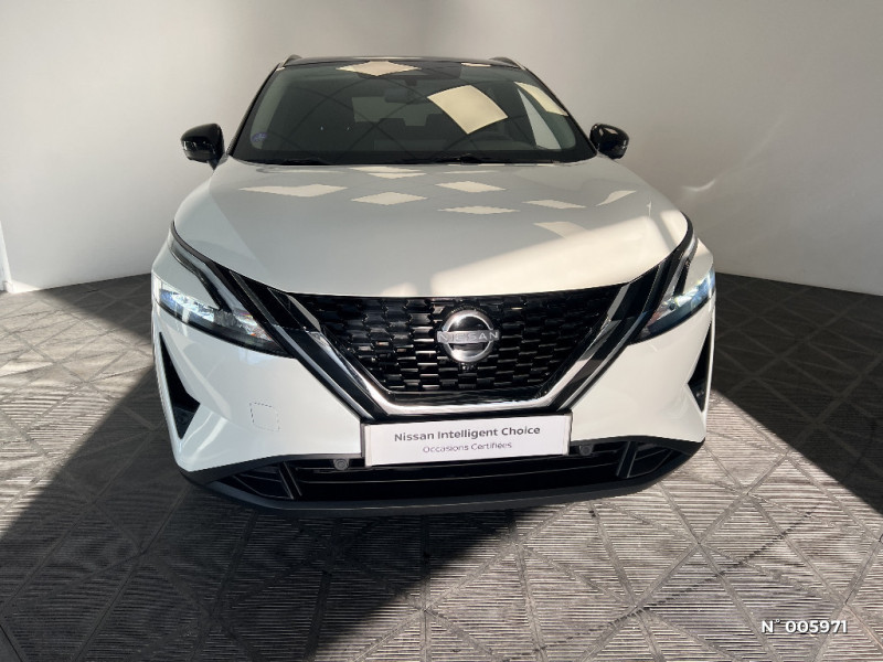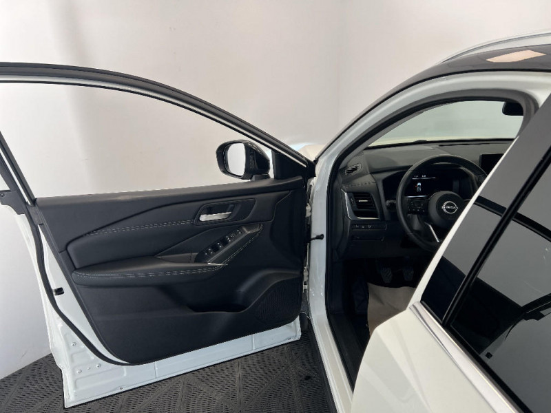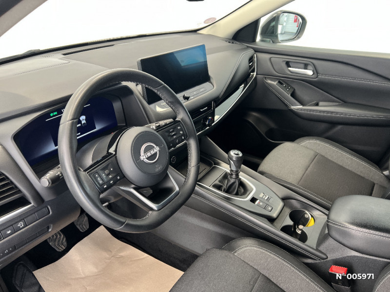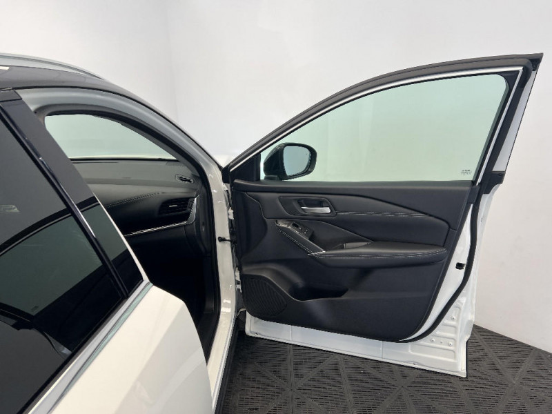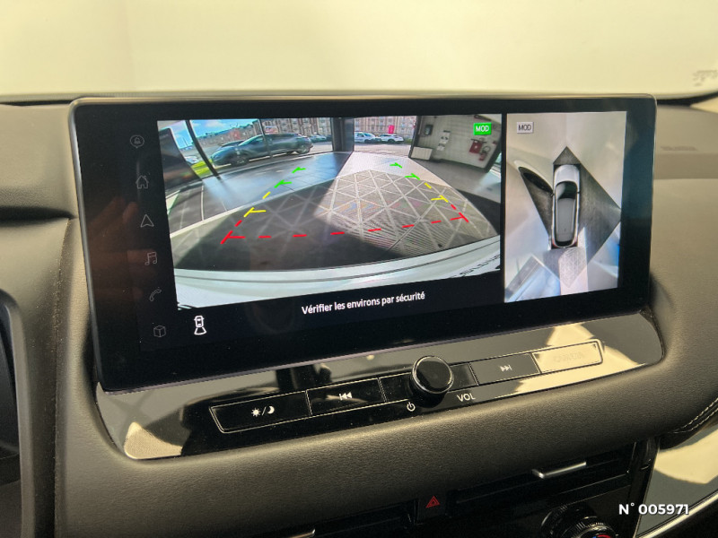 Pommeau de levier de vitesse gainé de cuir / Port USB AV (USB-A) / Porte-gobelets AV (x2) / Prise 12V dans le coffre / Repose-genoux en TEP (Tissu Enduit) / Rétroviseur intérieur électrochromatique / ABS et EBD / Accoudoir central AR avec porte-gobelets (2) / Alarme périmétrique / Antenne aileron de requin / Sélection du mode de conduite (ECO, STANDARD et SPORT) / Sellerie Tissu Noir et Gris / Siège conducteur avec réglage lombaire électrique 2 voies / Système "Chassis Control" (contrôle actif de trajectoire et de l'assiette) / Système d'alerte anticollision AR intelligent avec détection des objets en mouvement / Système d'alerte prédictif anticollision frontale / Système d'ouverture et de démarrage sans clé "Intelligent key" / Trappe de carburant sans bouchon / Buses de ventilation AR / Cache-bagages amovible / Chargeur à induction pour Smartphone 15W / Combiné d'instrumentation digital avec écran 12,3'' TFT / Commandes au volant: contrôle de l'ordinateur de bord, audio, téléphone, régulateur et limiteur de vitesse / Compartiment pour lunettes de soleil / Crochets d'arrimage (6) dans le coffre / Deuxième port USB AV (USB-A et USB-C) / Double port USB AR (USB-A et USB-C) / Eclairage d'ambiance (console centrale) / Eclairage du coffre (x2) / Feu stop central LED / Feux de détresse à déclenchement automatique / Feux de route adaptatifs / Frein à main électrique avec aide au stationnement/démarrage et fonction Autohold / Freinage d'urgence anticollision AR / Freinage d'urgence intelligent avec détection piétons, cyclistes et intersections / Habillage console centrale et contre-portes en TEP / Insert de pare-chocs AR Gris satiné / Kit de réparation pneumatique / Liseuses AV et AR / NBAS (amplificateur de freinage d'urgence) / Nissan Connect Services / Ouverture des portières AR à 85° / Pack Navigation / Pare-soleil côté conducteur et passager avec miroir de courtoisie éclairé / Peinture opaque monoton / Plancher de coffre modulable / Poignées de maintien pour passager AV et AR / Points d'ancrage pour sièges enfants ISOFIX à l'AR (x2)