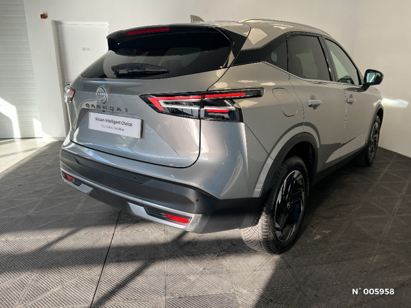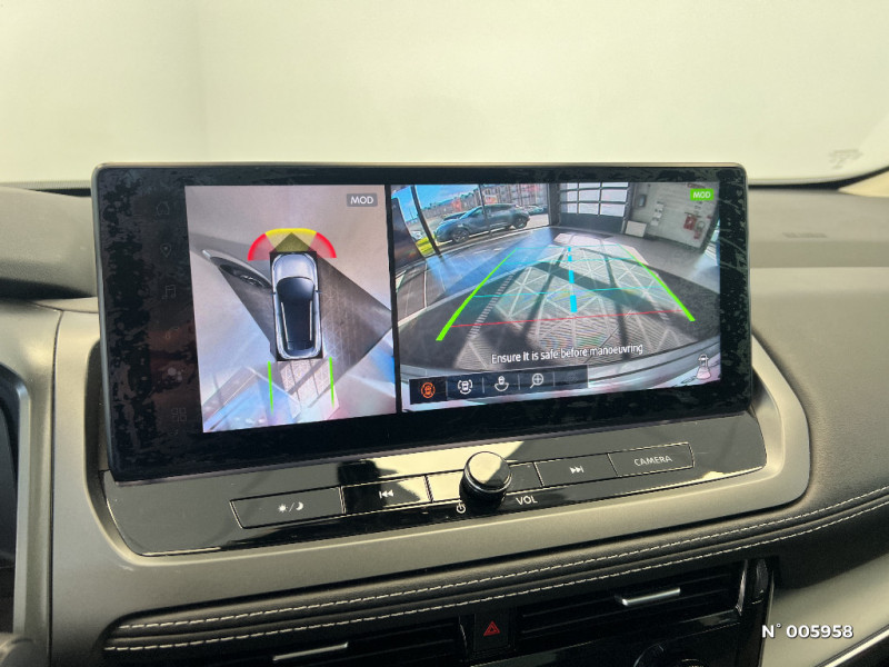 NissanConnect Services - Services télématiques avec accès à distance depuis un smartphone - Géolocalisation du véhicule - Historique de navigation - Point d'accès WiFi / NissanConnect Services - Services télématiques avec accès à distance depuis un smartphone Services de commandes à distance - Historique de conduite - Mise à jour à distance - Rapports sur l'état de santé du véhicule et alertes de dysfonctionnement - Rappels des pas d'entretien - Aide et assistance Nissan - Alertes intelligentes / Pare-soleil côté conducteur et passager avec miroir de courtoisie éclairé / Ciel de toit Gris clair / Clignotants AV et AR LED / Combiné d'instrumentation digital 12,3'' / Commandes au volant: contrôle de l'ordinateur de bord, audio, téléphone, régulateur et limiteur de vitesse / Compartiment pour lunettes de soleil / Contre-portes et console centrale en TEP / Contrôle de la traction (TCS) / ABS (système antiblocage des freins) / Double port USB AR (USB-A et USB-C) / Double port USB AV et AR (USB-C) / Eclairage d'ambiance personnalisable / Eclairage du coffre (x2) / Accoudoir central AR avec porte-gobelets (2) / Alarme périmétrique / Alerte et prévention de sortie de voie / Antenne aileron de requin Noir / Ouverture des portières AR à 85° / Pare-chocs AV et AR Noir mat / Feu stop central LED / Feux de détresse à déclenchement automatique / Feux de route adaptatifs / Frein à main électrique avec aide au stationnement/démarrage et fonction Autohold / Freinage d'urgence anticollision AR / Freinage d'urgence intelligent avec détection piétons, cyclistes et intersections / Garantie anticorrosion - perforation 12 ans, kilométrage illimité / Garantie Nissan Privilège Jusqu'à 8 ans de Garantie (moteur, boîte, pont) + Jusqu'à 8 ans d'Assistance 24h/24, 7j/7. Jusqu'à 8 ans ou 160 000 km, conditionnéà entretien annuel dans le réseau Nissan / Garantie peinture 3 ans, kilométrage illimité / Garantie véhicule neuf 3 ans (limitée à 100 000 km) / Inserts de pare-chocs AV et AR Gris satiné / Kit de réparation pneumatique / Liseuses LED à l'AV et à l'AR / NBAS (amplificateur de freinage d'urgence) / Nissan AVM 3D - Vision Intelligente à 360° : système d'aide au stationnement qui facilite les manoeuvres de stationnement en vous offrant une vision à 360° : Caméra AR avec repères de gabarit, Caméra AV, Caméras latérales situées dans les rétroviseurs extérieurs, Radars 360°, Fonction ''capot transparent'', Mémorisation stationnement régulier et intersections / Système de navigation NissanConnect avec services Google intégrés Google Maps, Google Assistant, Google Play Store, Live Traffic et cartes 3D, Navigation porte-à-porte, Recherche par Points d'Intérêt, Google Street View, Vue Satellite et Météo, Mise à jour des cartes et logiciels, Prix des carburants / Système d'ouverture et de démarrage sans clé "Intelligent key" avec fonction de verrouillage/ déverrouillage à l'approche du véhicule / Trappe de carburant sans bouchon / 6 crochets de fixation dans le coffre (4 au plancher, 2 sur les côtés) / Régulateur de vitesse intelligent avec ajustement aux limitations de vitesse sur commande / Repose-genoux en TEP / Rétroviseur intérieur électrochromatique sans contour / Sélection du mode de conduite (ECO, STANDARD et SPORT) / Sellerie mixte TEP/Tissu (Noir) / Siège conducteur avec réglage lombaire électrique 2 voies / Système audio radio avec écran tactile 12,3" et 6 HP / Système "Chassis Control" (contrôle actif de trajectoire et de l'assiette) / Système d'alerte anticollision AR intelligent / Boîte de vitesses automatique 7 rapports / Bouton d'accès rapide aux réglages des aides à la conduite / Buses de ventilation AR / Cache-bagages amovible / Chargeur à induction pour Smartphone 15W / Peinture métallisée spéciale Rouge Fuji / Planche de bord en TEP / Plancher de coffre modulable / Poignées de maintien pour passager AV et AR / Points d'ancrage pour sièges enfants ISOFIX à l'AR (x2) / Pommeau de levier de vitesse gainé de cuir / Porte-gobelets (x2) / Prise 12V à l'AV (x1) et dans le coffre (x1) / ProPILOT avec Navi-link : technologie de conduite assistée Aide au maintien dans la voie, Freinage anticipé dans les courbes via la navigation, Assistant de conduite en embouteillage, Ajustement aux limitations de vitesse (automatique ou sur commande) / Rails de toit longitudinaux chromés / Système d'alerte prédictif anticollision frontale