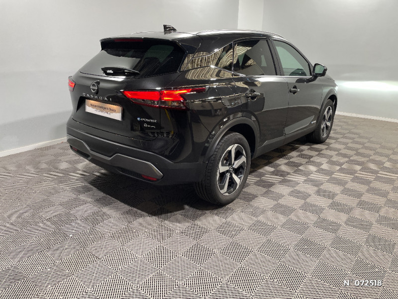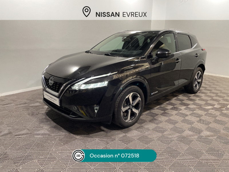 Feux de détresse à déclenchement automatique / ABS et EBD / Accoudoir central AR avec porte-gobelets (2) / Alarme périmétrique / Système d'alerte prédictif anticollision frontale / Système d'alerte anticollision AR intelligent avec détection des objets en mouvement / Feux de route adaptatifs / Feux diurnes LED avec système Follow Me Home / Frein à main électrique avec aide au stationnement/démarrage et fonction Autohold / Freinage d'urgence anticollision AR / Freinage d'urgence intelligent avec détection piétons, cyclistes et intersections / Habillage console centrale et contre-portes en TEP / Insert de pare-chocs AR Gris satiné / Kit de réparation pneumatique / Système d'ouverture et de démarrage sans clé "Intelligent key" / Technologie e-Pedal Step / Trappe de carburant sans bouchon / Vitres électriques avec mode impulsionnel AV et AR et commande à distance / Volant et pommeau de levier de vitesses gainé cuir / Antenne aileron de requin / Badges e-POWER / Buses de ventilation AR / Cache-bagages amovible / Chargeur à induction pour Smartphone 15W / Liseuses AV et AR / NBAS (amplificateur de freinage d'urgence) / Nissan Connect Services / Ouverture des portières AR à 85° / Pack Navigation / Pare-soleil côté conducteur et passager avec miroir de courtoisie éclairé / Peinture opaque monoton / Plancher de coffre modulable / Poignées de maintien AV et AR / Poignées de maintien pour passager AV et AR / Points d'ancrage pour sièges enfants ISOFIX à l'AR (x2) / Port USB AV (USB-A) / Porte-gobelets AV (x2) / Prise 12V dans le coffre / Repose-genoux en TEP (Tissu Enduit) / Rétroviseur intérieur électrochromatique / Sélection du mode de conduite (ECO, STANDARD et SPORT) / Sellerie Tissu Noir et Gris / Siège conducteur avec réglage lombaire électrique 2 voies / Siège conducteur avec réglage lombaire 2 voies / Système "Chassis Control" (contrôle actif de trajectoire et de l'assiette) / Combiné d'instrumentation digital avec écran 12,3'' TFT / Commandes au volant: contrôle de l'ordinateur de bord, audio, téléphone, régulateur et limiteur de vitesse / Compartiment pour lunettes de soleil / Crochets d'arrimage (6) dans le coffre / Deuxième port USB AV (USB-A et USB-C) / Double port USB AR (USB-A et USB-C) / Eclairage d'ambiance (console centrale) / Eclairage d'ambiance linéaire / Eclairage du coffre (x2) / Feu stop central LED