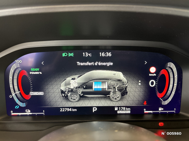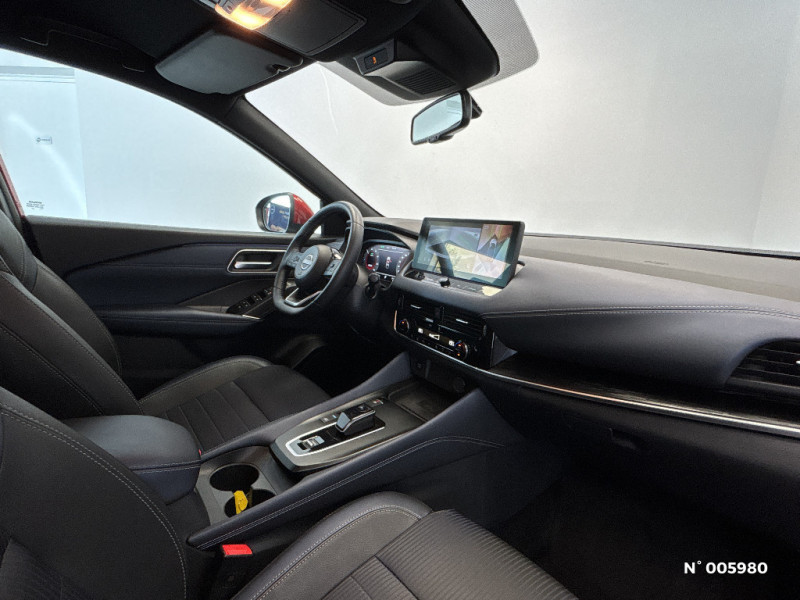 Chargeur à induction pour Smartphone 15W / Ciel de toit Noir / Clignotants AV et AR LED / Combiné d'instrumentation digital avec écran 12,3'' TFT / Commandes au volant: contrôle de l'ordinateur de bord, audio, téléphone, régulateur et limiteur de vitesse / Compartiment pour lunettes de soleil / Crochets d'arrimage (6) dans le coffre / Deuxième port USB AV (USB-A et USB-C) / Double port USB AR (USB-A et USB-C) / Eclairage d'ambiance (contre-portes et console centrale) / Eclairage du coffre (x2) / Technologie e-Pedal Step / Liseuses AV et AR / NBAS (amplificateur de freinage d'urgence) / Nissan Connect Services / Ouverture des portières AR à 85° / Pack Navigation / Pack ProPilot / Pare-soleil côté conducteur et passager avec miroir de courtoisie éclairé / Peinture opaque monoton / Plancher de coffre modulable / Poignées de maintien AV et AR / Poignées de maintien pour passager AV et AR / Points d'ancrage pour sièges enfants ISOFIX à l'AR (x2) / Port USB AV (USB-A) / Porte-gobelets AV (x2) / ABS et EBD / Accoudoir central AR avec porte-gobelets (2) / Alarme périmétrique / Feu stop central LED / Feux de détresse à déclenchement automatique / Feux de route intelligents avec 12 fasceaux indépendants / Feux diurnes LED avec système Follow Me Home / Frein à main électrique avec aide au stationnement/démarrage et fonction Autohold / Freinage d'urgence anticollision AR / Freinage d'urgence intelligent avec détection piétons, cyclistes et intersections / Habillage console centrale et contre-portes en TEP / Hayon électrique avec ouverture mains libres / Insert de pare-chocs AR Gris satiné / Kit de réparation pneumatique / Antenne aileron de requin / Trappe de carburant sans bouchon / Vitres électriques avec mode impulsionnel AV et AR et commande à distance / Volant et pommeau de levier de vitesses gainé cuir / Prise 12V dans le coffre / ProPILOT Park : technologie de stationnement automatique / Repose-genoux en TEP (Tissu Enduit) / Rétroviseur intérieur électrochromatique / Sélection du mode de conduite (ECO, STANDARD et SPORT) / Sellerie mixte TEP/Tissu Noir Bleuté ou Gris Clair / Siège conducteur avec réglage lombaire électrique 8 voies / Siège passager avec réglage lombaire manuel 2 voies / Système "Chassis Control" (contrôle actif de trajectoire et de l'assiette) / Système d'alerte anticollision AR intelligent avec détection des objets en mouvement / Système d'alerte prédictif anticollision frontale / Système d'ouverture et de démarrage sans clé "Intelligent key" / Badges e-POWER / Buses de ventilation AR / Cache-bagages amovible