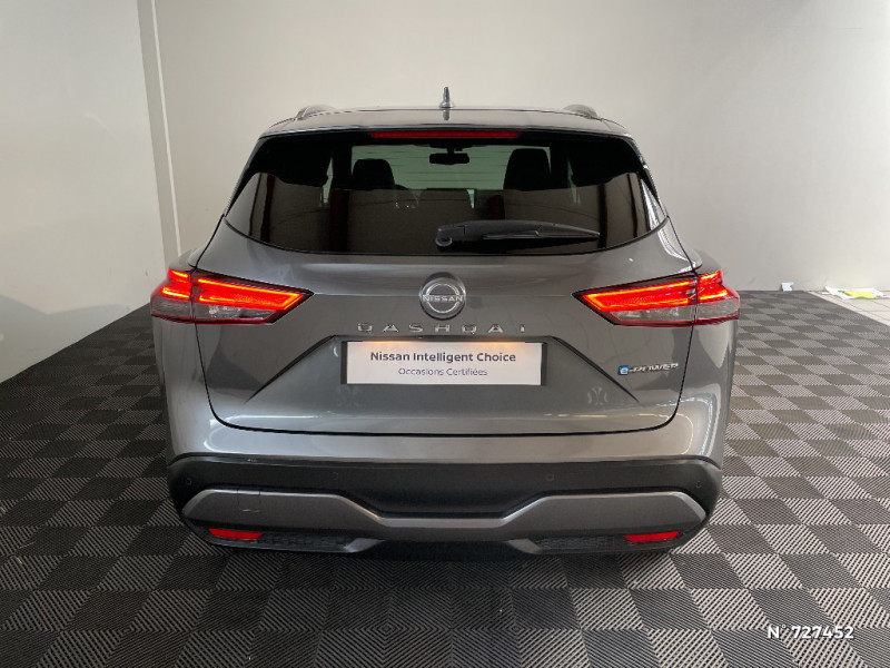 Freinage d'urgence anticollision AR / Freinage d'urgence intelligent avec détection piétons, cyclistes et intersections / Habillage console centrale et contre-portes en TEP / Hayon électrique avec ouverture mains libres / Insert de pare-chocs AR Gris satiné / Kit de réparation pneumatique / Liseuses AV et AR / NBAS (amplificateur de freinage d'urgence) / Nissan Connect Services / Ouverture des portières AR à 85° / Pack Navigation / Pack ProPilot / Pare-soleil côté conducteur et passager avec miroir de courtoisie éclairé / Peinture opaque monoton / Plancher de coffre modulable / Poignées de maintien AV et AR / Buses de ventilation AR / Cache-bagages amovible / Chargeur à induction pour Smartphone 15W / ABS et EBD / Accoudoir central AR avec porte-gobelets (2) / Alarme périmétrique / Antenne aileron de requin / Badges e-POWER / Système "Chassis Control" (contrôle actif de trajectoire et de l'assiette) / Système d'alerte anticollision AR intelligent avec détection des objets en mouvement / Système d'alerte prédictif anticollision frontale / Système d'ouverture et de démarrage sans clé "Intelligent key" / Technologie e-Pedal Step / Trappe de carburant sans bouchon / Vitres électriques avec mode impulsionnel AV et AR et commande à distance / Volant et pommeau de levier de vitesses gainé cuir / Ciel de toit Noir / Clignotants AV et AR LED / Combiné d'instrumentation digital avec écran 12,3'' TFT / Commandes au volant: contrôle de l'ordinateur de bord, audio, téléphone, régulateur et limiteur de vitesse / Compartiment pour lunettes de soleil / Crochets d'arrimage (6) dans le coffre / Deuxième port USB AV (USB-A et USB-C) / Double port USB AR (USB-A et USB-C) / Poignées de maintien pour passager AV et AR / Points d'ancrage pour sièges enfants ISOFIX à l'AR (x2) / Port USB AV (USB-A) / Porte-gobelets AV (x2) / Prise 12V dans le coffre / ProPILOT Park : technologie de stationnement automatique / Repose-genoux en TEP (Tissu Enduit) / Rétroviseur intérieur électrochromatique / Sélection du mode de conduite (ECO, STANDARD et SPORT) / Sellerie mixte TEP/Tissu Noir Bleuté ou Gris Clair / Siège conducteur avec réglage lombaire électrique 8 voies / Siège passager avec réglage lombaire manuel 2 voies / Eclairage d'ambiance (contre-portes et console centrale) / Eclairage du coffre (x2) / Feu stop central LED / Feux de détresse à déclenchement automatique / Feux de route intelligents avec 12 fasceaux indépendants / Feux diurnes LED avec système Follow Me Home / Frein à main électrique avec aide au stationnement/démarrage et fonction Autohold