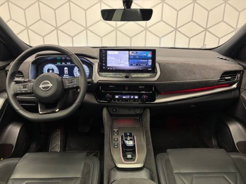 6 crochets de fixation dans le coffre (4 au plancher, 2 sur les côtés) / ABS (système antiblocage des freins) / Accoudoir central AR avec porte-gobelets (2) / Alarme périmétrique / Alerte et prévention de sortie de voie / Antenne aileron de requin / Badges e-POWER / Bouton d'accès rapide aux réglages des aides à la conduite / Buses de ventilation AR / Cache-bagages amovible / Chargeur à induction pour Smartphone 15W / Ciel de toit Noir / Clignotants AV et AR à défilement / Clignotants AV et AR LED / Combiné d'instrumentation digital 12,3'' / Commandes au volant: contrôle de l'ordinateur de bord, audio, téléphone, régulateur et limiteur de vitesse / Contre-portes et console centrale en Alcantara / Double port USB AR (USB-A et USB-C) / Double port USB AV et AR (USB-C) / Eclairage d'ambiance personnalisable (11 points lumineux) / Eclairage du coffre (x2) / Feu stop central LED / Feux AR "Super-RED" / Feux de détresse à déclenchement automatique / Feux de route adaptatifs / Feux de route intelligents avec 12 fasceaux indépendants / Freinage d'urgence anticollision AR / Freinage d'urgence intelligent avec détection piétons, cyclistes et intersections / Frein à main électrique avec aide au stationnement/démarrage et fonction Autohold / Inserts de pare-chocs AV et AR Noir brillant / Jantes alliage 20" avec suspension AR multibras / Kit de réparation pneumatique / Liseuses LED à l'AV et à l'AR / NBAS (amplificateur de freinage d'urgence) / Nissan AVM 3D - Vision Intelligente à 360° : système d'aide au stationnement qui facilite les manoeuvres de stationnement en vous offrant une vision à 360° : Caméra AR avec repères de gabarit, Caméra AV, Caméras latérales situées dans les rétroviseurs extérieurs, Radars 360°, Fonction ''capot transparent'', Mémorisation stationnement régulier et intersections / NissanConnect Services - Services télématiques avec accès à distance depuis un smartphone Service de commandes à distance, Géolocalisation du véhicule, Historique de conduite et de navigation, Rapports sur l'état de santé du véhicule et alertes de dysfonctionnement, Rappel des pas d'entretien, Aide et assistance Nissan, Point d'accès Wi-Fi, Alertes intelligentes, Compatibilité Amazon Alexa / Ouverture des portières AR à 85° / Pare-soleil côté conducteur et passager avec miroir de courtoisie éclairé / Peinture bi-ton Rouge Fuji Toit noir métallisé / Plancher de coffre modulable / Poignées de maintien pour passager AV et AR / Points d'ancrage pour sièges enfants ISOFIX à l'AR (x2) / Porte-gobelets (x2) / Prise 12V à l'AV (x1) et dans le coffre (x1) / ProPILOT avec Navi-link : technologie de conduite assistée Aide au maintien dans la voie, Freinage anticipé dans les courbes via la navigation, Assistant de conduite en embouteillage, Ajustement aux limitations de vitesse (automatique ou sur commande) / ProPILOT Park : technologie de stationnement automatique / Rails de toit longitudinaux noirs / Régulateur de vitesse intelligent avec ajustement aux limitations de vitesse sur commande / Repose-genoux en Alcantara / Rétroviseur intérieur électrochromatique sans contour / Sélection du mode de conduite (ECO, STANDARD et SPORT) / Siège conducteur avec réglage lombaire électrique 2 voies / Système audio radio avec écran tactile 12,3" et 6 HP / Système "Chassis Control" (contrôle actif de trajectoire et de l'assiette) / Système d'alerte anticollision AR intelligent / Système d'alerte prédictif anticollision frontale / Système de navigation NissanConnect avec services Google intégrés Google Maps, Google Assistant, Google Play Store, Live Traffic et cartes 3D, Navigation porte-à-porte, Recherche par Points d'Intérêt, Google Street View, Vue Satellite et Météo, Mise à jour des cartes et logiciels, Prix des carburants / Système d'ouverture et de démarrage sans clé "Intelligent key" avec fonction de verrouillage/ déverrouillage à l'approche du véhicule / Technologie e-Pedal Step / Trappe de carburant sans bouchon