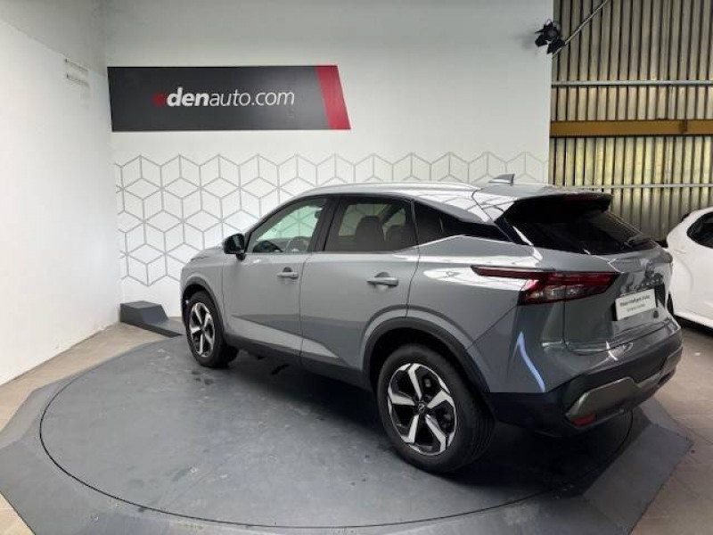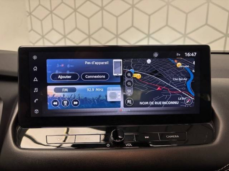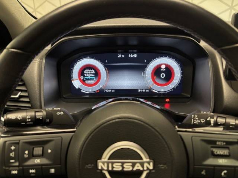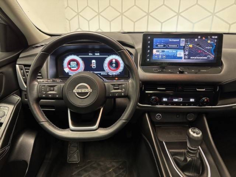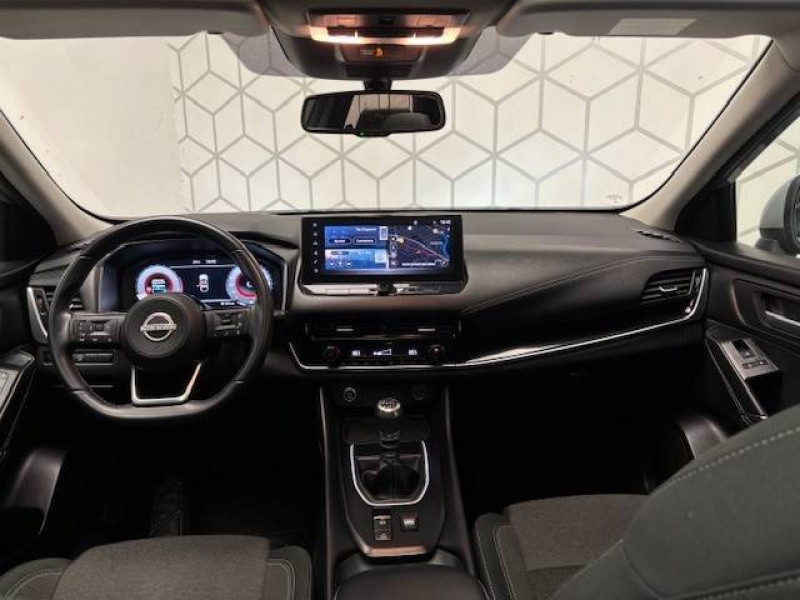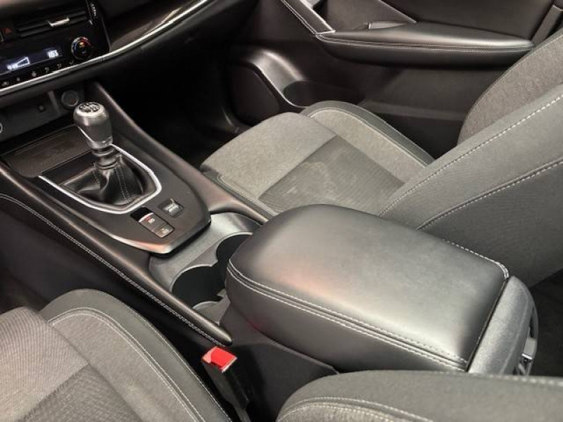 ABS et EBD / Accoudoir central AR avec porte-gobelets (2) / Alarme périmétrique / Antenne aileron de requin / Buses de ventilation AR / Cache-bagages amovible / Chargeur à induction pour Smartphone 15W / Combiné d'instrumentation digital avec écran 12,3'' TFT / Commandes au volant: contrôle de l'ordinateur de bord, audio, téléphone, régulateur et limiteur de vitesse / Compartiment pour lunettes de soleil / Crochets d'arrimage (6) dans le coffre / Deuxième port USB AV (USB-A et USB-C) / Double port USB AR (USB-A et USB-C) / Eclairage d'ambiance (console centrale) / Eclairage du coffre (x2) / Feu stop central LED / Feux de détresse à déclenchement automatique / Feux de route adaptatifs / Freinage d'urgence anticollision AR / Freinage d'urgence intelligent avec détection piétons, cyclistes et intersections / Frein à main électrique avec aide au stationnement/démarrage et fonction Autohold / Habillage console centrale et contre-portes en TEP / Insert de pare-chocs AR Gris satiné / Kit de réparation pneumatique / Liseuses AV et AR / NBAS (amplificateur de freinage d'urgence) / Nissan Connect Services / Ouverture des portières AR à 85° / Pack Navigation / Pare-soleil côté conducteur et passager avec miroir de courtoisie éclairé / Peinture opaque monoton / Plancher de coffre modulable / Poignées de maintien pour passager AV et AR / Points d'ancrage pour sièges enfants ISOFIX à l'AR (x2) / Pommeau de levier de vitesse gainé de cuir / Porte-gobelets AV (x2) / Port USB AV (USB-A) / Prise 12V dans le coffre / Repose-genoux en TEP (Tissu Enduit) / Rétroviseur intérieur électrochromatique / Sélection du mode de conduite (ECO, STANDARD et SPORT) / Sellerie Tissu Noir et Gris / Siège conducteur avec réglage lombaire électrique 2 voies / Système "Chassis Control" (contrôle actif de trajectoire et de l'assiette) / Système d'alerte anticollision AR intelligent avec détection des objets en mouvement / Système d'alerte prédictif anticollision frontale / Système d'ouverture et de démarrage sans clé "Intelligent key" / Trappe de carburant sans bouchon