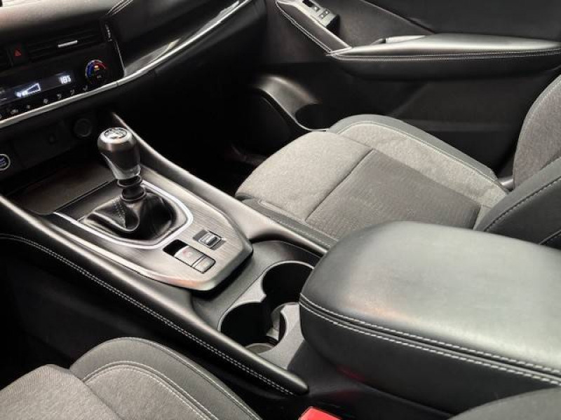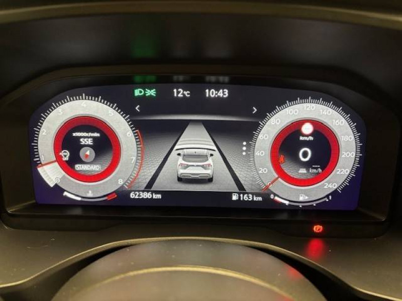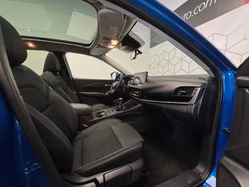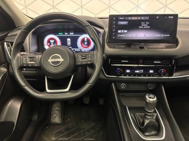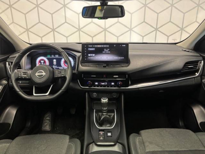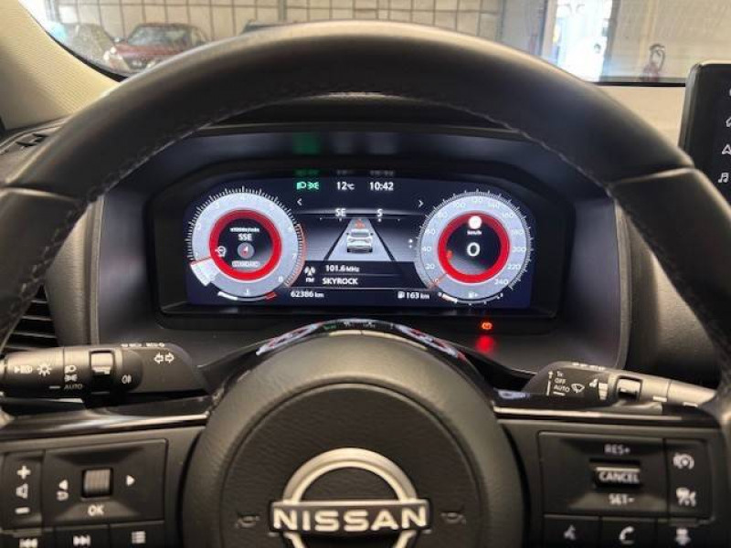 ABS et EBD / Accoudoir central AR avec porte-gobelets (2) / Alarme périmétrique / Antenne aileron de requin / Buses de ventilation AR / Cache-bagages amovible / Chargeur à induction pour Smartphone 15W / Combiné d'instrumentation digital avec écran 12,3'' TFT / Commandes au volant: contrôle de l'ordinateur de bord, audio, téléphone, régulateur et limiteur de vitesse / Compartiment pour lunettes de soleil / Crochets d'arrimage (6) dans le coffre / Deuxième port USB AV (USB-A et USB-C) / Double port USB AR (USB-A et USB-C) / Eclairage d'ambiance (console centrale) / Eclairage du coffre (x2) / Feu stop central LED / Feux de détresse à déclenchement automatique / Feux de route adaptatifs / Freinage d'urgence anticollision AR / Freinage d'urgence intelligent avec détection piétons, cyclistes et intersections / Frein à main électrique avec aide au stationnement/démarrage et fonction Autohold / Habillage console centrale et contre-portes en TEP / Insert de pare-chocs AR Gris satiné / Kit de réparation pneumatique / Liseuses AV et AR / NBAS (amplificateur de freinage d'urgence) / Nissan Connect Services / Ouverture des portières AR à 85° / Pack Navigation / Pare-soleil côté conducteur et passager avec miroir de courtoisie éclairé / Peinture opaque monoton / Plancher de coffre modulable / Poignées de maintien pour passager AV et AR / Points d'ancrage pour sièges enfants ISOFIX à l'AR (x2) / Pommeau de levier de vitesse gainé de cuir / Porte-gobelets AV (x2) / Port USB AV (USB-A) / Prise 12V dans le coffre / Repose-genoux en TEP (Tissu Enduit) / Rétroviseur intérieur électrochromatique / Sélection du mode de conduite (ECO, STANDARD et SPORT) / Sellerie Tissu Noir et Gris / Siège conducteur avec réglage lombaire électrique 2 voies / Système "Chassis Control" (contrôle actif de trajectoire et de l'assiette) / Système d'alerte anticollision AR intelligent avec détection des objets en mouvement / Système d'alerte prédictif anticollision frontale / Système d'ouverture et de démarrage sans clé "Intelligent key" / Trappe de carburant sans bouchon