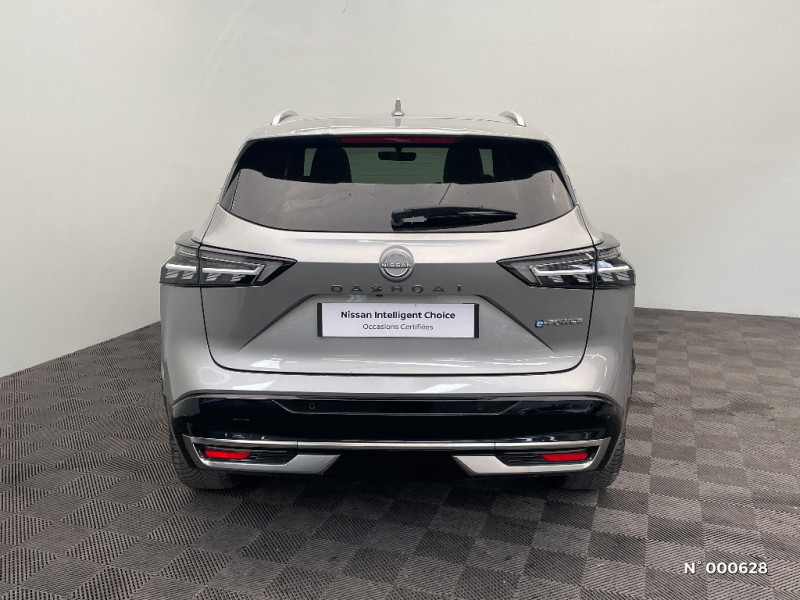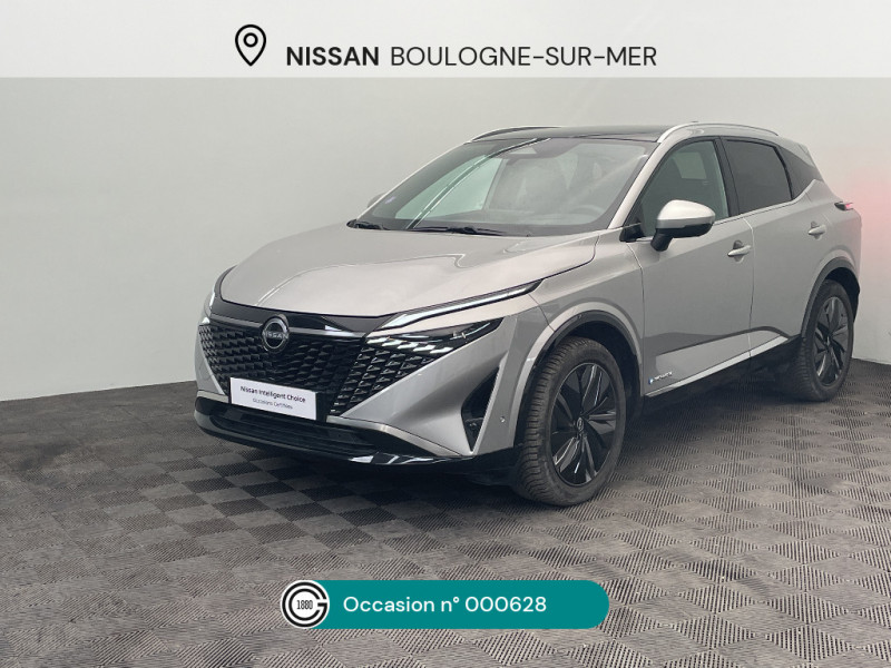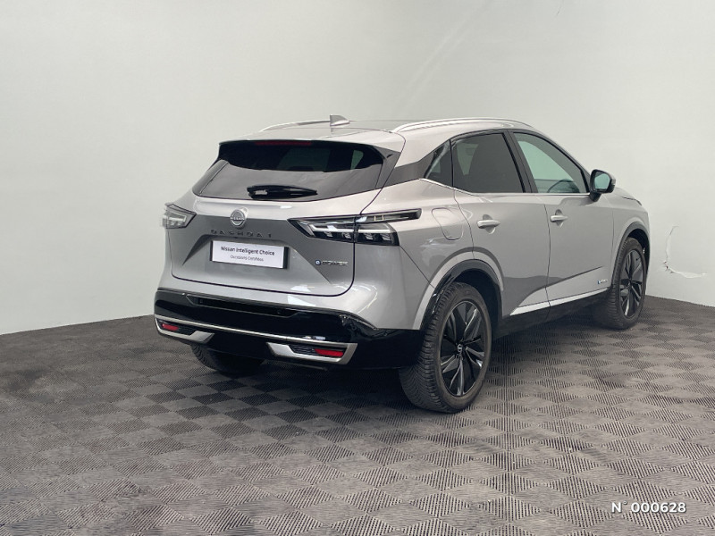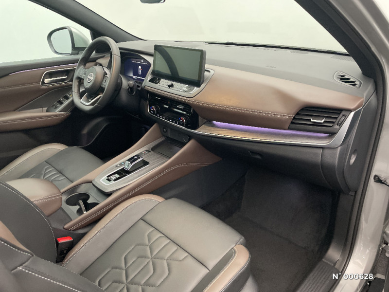 Système d'ouverture et de démarrage sans clé "Intelligent key" avec fonction de verrouillage/ déverrouillage à l'approche du véhicule / Technologie e-Pedal Step / Trappe de carburant sans bouchon / 6 crochets de fixation dans le coffre (4 au plancher, 2 sur les côtés) / Alarme périmétrique / Alerte et prévention de sortie de voie / Antenne aileron de requin / Siège conducteur avec réglages électriques 8 voies / Siège passager avec réglage lombaire manuel 2 voies / Système audio radio avec écran tactile 12,3" et 6 HP / Système "Chassis Control" (contrôle actif de trajectoire et de l'assiette) / Système d'alerte anticollision AR intelligent / Système d'alerte prédictif anticollision frontale / Freinage d'urgence intelligent avec détection piétons, cyclistes et intersections / Hayon électrique avec ouverture mains libres / Inserts de pare-chocs AV et AR Gris satiné / Kit de réparation pneumatique / Liseuses LED à l'AV et à l'AR / Mémorisation des réglages via l'Intelligent Key (siège conducteur et rétroviseurs extérieurs) / NBAS (amplificateur de freinage d'urgence) / Nissan AVM 3D - Vision Intelligente à 360° : système d'aide au stationnement qui facilite les manoeuvres de stationnement en vous offrant une vision à 360° : Caméra AR avec repères de gabarit, Caméra AV, Caméras latérales situées dans les rétroviseurs extérieurs, Radars 360°, Fonction ''capot transparent'', Mémorisation stationnement régulier et intersections / NissanConnect Services - Services télématiques avec accès à distance depuis un smartphone Service de commandes à distance, Géolocalisation du véhicule, Historique de conduite et de navigation, Rapports sur l'état de santé du véhicule et alertes de dysfonctionnement, Rappel des pas d'entretien, Aide et assistance Nissan, Point d'accès Wi-Fi, Alertes intelligentes, Compatibilité Amazon Alexa / Ouverture des portières AR à 85° / Pare-chocs AV et AR Noir brillant / Pare-chocs AV et AR Noir mat / Pare-soleil côté conducteur et passager avec miroir de courtoisie éclairé / Plancher de coffre modulable / Poignées de maintien pour passager AV et AR / Points d'ancrage pour sièges enfants ISOFIX à l'AR (x2) / Porte-gobelets (x2) / Prise 12V à l'AV (x1) et dans le coffre (x1) / ProPILOT avec Navi-link : technologie de conduite assistée Aide au maintien dans la voie, Freinage anticipé dans les courbes via la navigation, Assistant de conduite en embouteillage, Ajustement aux limitations de vitesse (automatique ou sur commande) / ProPILOT Park : technologie de stationnement automatique / Rails de toit longitudinaux chromés / Régulateur de vitesse intelligent avec ajustement aux limitations de vitesse sur commande / Repose-genoux en TEP / Rétroviseur intérieur électrochromatique sans contour / Rétroviseurs extérieurs avec fonction mémoire et fonction marche AR / Sélection du mode de conduite (ECO, STANDARD et SPORT) / Sellerie TEP Noir / Inserts Brun / Siège conducteur avec fonction mémoire / Siège conducteur avec réglage lombaire électrique 2 voies / Système de navigation NissanConnect avec services Google intégrés Google Maps, Google Assistant, Google Play Store, Live Traffic et cartes 3D, Navigation porte-à-porte, Recherche par Points d'Intérêt, Google Street View, Vue Satellite et Météo, Mise à jour des cartes et logiciels, Prix des carburants / Combiné d'instrumentation digital 12,3'' / Commandes au volant: contrôle de l'ordinateur de bord, audio, téléphone, régulateur et limiteur de vitesse / Compartiment pour lunettes de soleil (non disponible avec toit panoramique en verre) / Contre-portes et console centrale en TEP / Contrôle de traction électronique / ABS (système antiblocage des freins) / Accoudoir central AR avec porte-gobelets (2) / Badges e-POWER / Boîte de vitesses automatique 1 rapports / Bouton d'accès rapide aux réglages des aides à la conduite / Buses de ventilation AR / Cache-bagages amovible / Chargeur à induction pour Smartphone 15W / Ciel de toit Noir / Clignotants AV et AR à défilement / Clignotants AV et AR LED / Double port USB AR (USB-A et USB-C) / Double port USB AV et AR (USB-C) / Eclairage d'ambiance personnalisable (11 points lumineux) / Eclairage du coffre (x2) / Feu stop central LED / Feux AR "Super-RED" / Feux de détresse à déclenchement automatique / Feux de route adaptatifs / Feux de route intelligents avec 12 fasceaux indépendants / Frein à main électrique avec aide au stationnement/démarrage et fonction Autohold / Freinage d'urgence anticollision AR