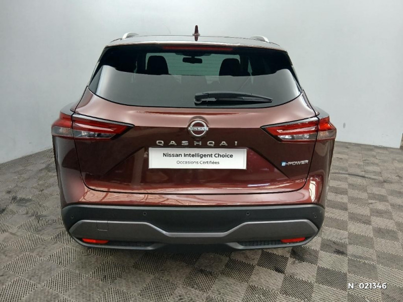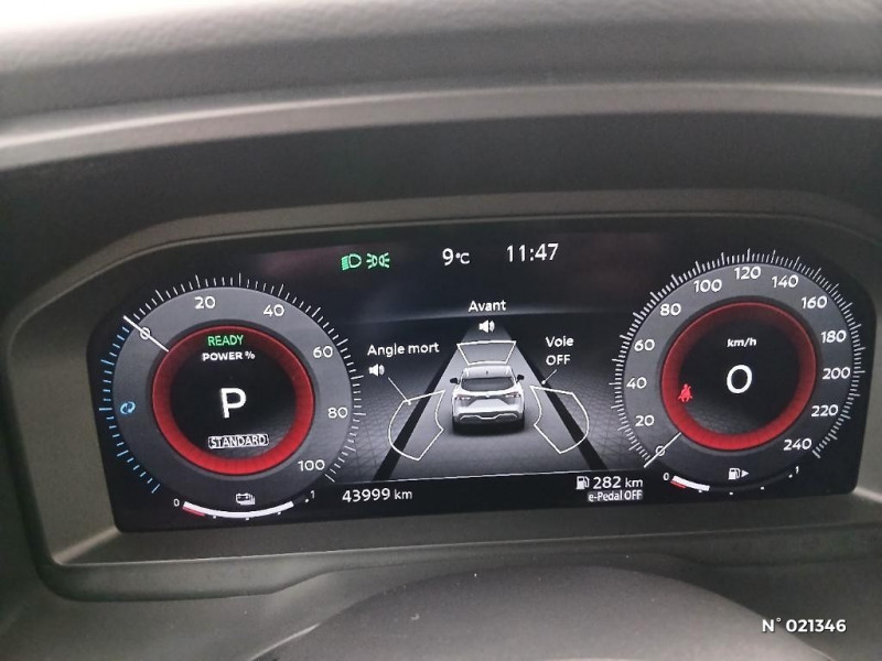Vitres électriques avec mode impulsionnel AV et AR et commande à distance / Volant et pommeau de levier de vitesses gainé cuir / Technologie e-Pedal Step / Trappe de carburant sans bouchon / Accoudoir central AR avec porte-gobelets (2) / Alarme périmétrique / Antenne aileron de requin / Badges e-POWER / Buses de ventilation AR / Cache-bagages amovible / Système "Chassis Control" (contrôle actif de trajectoire et de l'assiette) / Système d'alerte anticollision AR intelligent avec détection des objets en mouvement / Système d'alerte prédictif anticollision frontale / Système d'ouverture et de démarrage sans clé "Intelligent key" / Poignées de maintien pour passager AV et AR / Points d'ancrage pour sièges enfants ISOFIX à l'AR (x2) / Port USB AV (USB-A) / Porte-gobelets AV (x2) / Prise 12V dans le coffre / Chargeur à induction pour Smartphone 15W / Combiné d'instrumentation digital avec écran 12,3'' TFT / Commandes au volant: contrôle de l'ordinateur de bord, audio, téléphone, régulateur et limiteur de vitesse / Compartiment pour lunettes de soleil / Crochets d'arrimage (6) dans le coffre / Deuxième port USB AV (USB-A et USB-C) / Double port USB AR (USB-A et USB-C) / Eclairage d'ambiance (console centrale) / Eclairage d'ambiance linéaire / Eclairage du coffre (x2) / Feu stop central LED / Feux de détresse à déclenchement automatique / Feux de route adaptatifs / Feux diurnes LED avec système Follow Me Home / Frein à main électrique avec aide au stationnement/démarrage et fonction Autohold / Freinage d'urgence anticollision AR / Freinage d'urgence intelligent avec détection piétons, cyclistes et intersections / Habillage console centrale et contre-portes en TEP / Insert de pare-chocs AR Gris satiné / Kit de réparation pneumatique / Liseuses AV et AR / NBAS (amplificateur de freinage d'urgence) / Nissan Connect Services / Ouverture des portières AR à 85° / Pack Navigation / Pare-soleil côté conducteur et passager avec miroir de courtoisie éclairé / Peinture opaque monoton / Plancher de coffre modulable / Poignées de maintien AV et AR / ABS et EBD / Repose-genoux en TEP (Tissu Enduit) / Rétroviseur intérieur électrochromatique / Sélection du mode de conduite (ECO, STANDARD et SPORT) / Sellerie Tissu Noir et Gris / Siège conducteur avec réglage lombaire électrique 2 voies / Siège conducteur avec réglage lombaire 2 voies