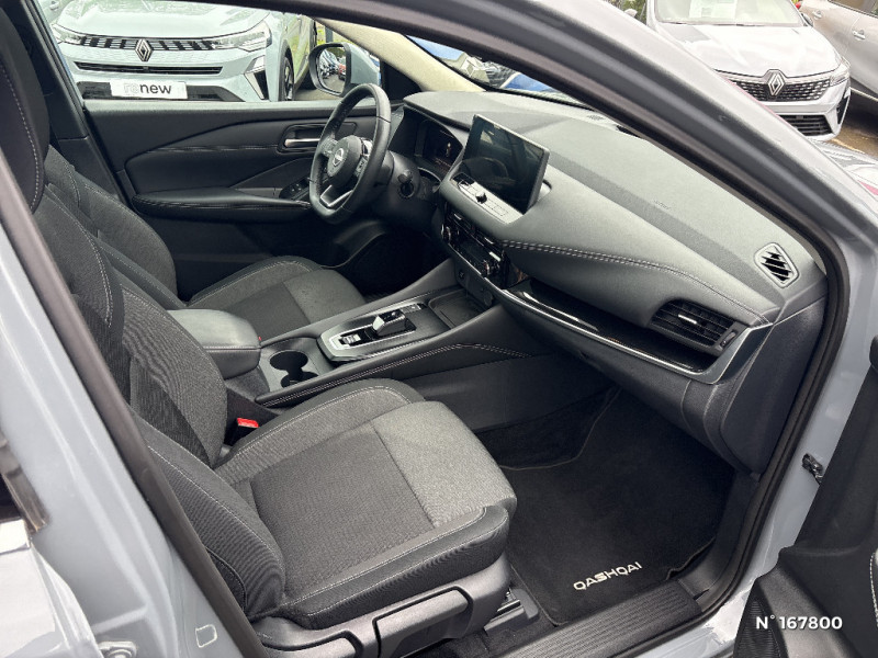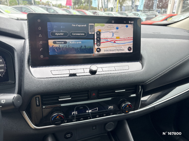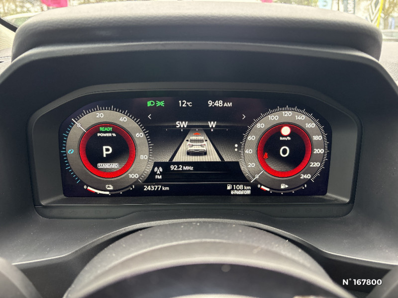Commandes au volant : contrôle de l'ordinateur de bord, audio, téléphone, limiteur / régulateur de de vitesse / Porte-gobelets AV (x2) / Port USB AV (USB-A) / Buses de ventilation AR / Ouverture des portières AR à 85° / Insert de pare-chocs AR Gris satiné / Feux de route adaptatifs / Système "Chassis Control" (contrôle actif de trajectoire et de l'assiette) / Kit de réparation pneumatique / Repose-genoux en TEP (Tissu Enduit) / Système d'alerte anticollision AR intelligent avec détection des objets en mouvement / Frein à main électrique avec aide au stationnement/démarrage et fonction Autohold / Sélection du mode de conduite (ECO, STANDARD et SPORT) / Liseuses AV et AR / Nissan Connect Services / Peinture Opaque / Alarme périmétrique / Feu stop central LED / Trappe de carburant sans bouchon / Eclairage d'ambiance linéaire / Eclairage du coffre (2x) / Compartiment pour lunettes de soleil / Combiné d'instrumentation digital avec écran 12,3'' TFT / Chargeur à induction pour Smartphone 15W / Poignées de maintien pour passager AV et AR / Plancher de coffre modulable / Freinage d'urgence anticollision AR / Antenne aileron de requin / Habillage console centrale et contre-portes en TEP / Sellerie Tissu Noir et Gris / Système d'alerte prédictif anticollision frontale / Freinage d'urgence intelligent avec détection piétons, cyclistes et intersections / Points d'ancrage pour sièges enfants ISOFIX à l'AR (x2) / ABS et EBD / Volant et pommeau de levier de vitesses gainé cuir / Pare-soleil côté conducteur et passager avec miroir de courtoisie éclairé / Rétroviseur intérieur électrochromatique / Deuxième port USB AV (USB-A et USB-C) / Double port USB AR (USB-A et USB-C) / Feux de détresse à déclenchement automatique / Siège conducteur avec réglage lombaire 2 voies / Vitres électriques avec mode impulsionnel AV et AR et commande à distance / NBAS (amplificateur de freinage d'urgence) / Crochets d'arrimage (6) dans le coffre / Système d'ouverture et de démarrage sans clé "Intelligent key" / Technologie e-Pedal Step / Badges e-POWER / Siège conducteur avec réglage lombaire électrique 2 voies / Eclairage d'ambiance (console centrale) / Pack Navigation / Poignées de maintient AV et AR. / Prise 12V dans le coffre / Cache-bagages amovible