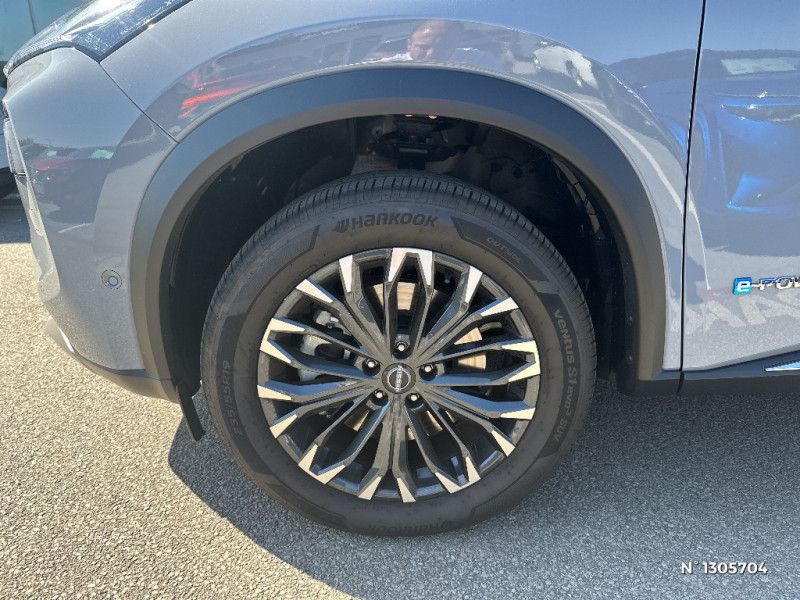 Système audio Bose Premium avec 10 HP et un caisson de basses Acoustimass / Système d'alerte anticollision AR intelligent avec détection des objets en mouvement / Système d'alerte prédictif anticollision frontale / Système de navigation NissanConnect avec écran tactile 12,3" : Live Traffic et cartes 3D, Navigation porte-à -porte, Recherche par Points d'Intérêt, Google Street View, Vue Satellite et Météo, Mise à jour des cartes et logiciels, Prix des carburants, Commandes vocales avancées avec Amazon Alexa® / Système d'ouverture et de démarrage sans clé "Intelligent Key" / Technologie e-Pedal Step / Toit panoramique en verre à ouverture électrique / Trappe de carburant sans bouchon / 6 crochets de fixation dans le coffre / Régulateur de vitesse intelligent avec ajustement aux limitations de vitesse / Repose-genoux en TEP / Rétroviseur intérieur intelligent à affichage numérique / Rétroviseurs extérieurs avec fonction mémoire et fonction marche AR / Sécurité enfants sur les portes AR / Sélection du mode de conduite (ECO, STANDARD et SPORT) / Sellerie en cuir matelassé Noir ou Havane / Siège conducteur avec réglage lombaire électrique 2 voies / Sièges AV réglables électriquement avec fonction mémoire / Rails de toit longitudinaux chromés / Accoudoir central AV avec ouverture papillon / Affichage tête haute avec projection sur le pare-brise 10,8" / Alarme périmétrique / Antenne aileron de requin / ABS (Système antiblocage des freins) avec EBD (Répartiteur électronique de freinage) / Accoudoir central AR avec porte-gobelets (2) / Badges e-POWER / Baguettes latérales Chrome / Boîte de vitesses automatique 1 rapports / Boucliers AV/AR Chrome / Buses de ventilation AR / Cache-bagages amovible / Chargeur à induction pour Smartphone 15W / Clignotants AV LED / Combiné d'instrumentation digital avec écran 12,3'' TFT / Commandes au volant: contrôle de l'ordinateur de bord, audio, téléphone, régulateur et limiteur de vitesse / Compartiment pour lunettes de soleil / Console centrale flottante / Double port USB AR (USB-A et USB-C) / Double port USB AV (USB-A et USB-C) / Eclairage d'ambiance (contre-portes et console centrale) / Eclairage du coffre / Feu stop central LED / Feux de détresse à déclenchement automatique / Feux de route intelligents / Frein à main électrique avec aide au stationnement/démarrage et fonction Autohold / Freinage d'urgence anticollision AR / Freinage d'urgence intelligent avec détection piétons, cyclistes et intersections / Hayon électrique avec ouverture mains libres / Kit de réparation pneumatique / Liseuses AV et AR / NBAS (amplificateur de freinage d'urgence) / Nissan AVM - Vision Intelligente à 360° / Pack Hiver - Climatisation automatique tri-zone - Lave-phares - Pare-brise chauffant - Volant chauffant - Sièges AV et AR chauffants - Pare-soleil intégrés aux vitres AR / Pare-soleil conducteur et passager avec miroirs de courtoisie, jalousies et éclairage / Plancher de coffre modulable / Poignées de maintien pour passager AV et AR / Points d'ancrage pour sièges enfants ISOFIX à l'AR (x2) / Porte-gobelets AV (x2) / Nissan Connect Services / Ouverture des portières AR à 85° / Prise 12V dans le coffre / ProPILOT avec Navi-link : technologie de conduite assistée / ProPILOT Park : technologie de stationnement automatique