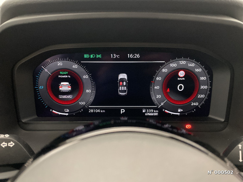 Chargeur à induction pour Smartphone 15W / Combiné d'instrumentation digital avec écran 12,3'' TFT / Commandes au volant: contrôle de l'ordinateur de bord, audio, téléphone, régulateur et limiteur de vitesse / Compartiment pour lunettes de soleil / Console centrale flottante / Double port USB AR (USB-A et USB-C) / Double port USB AV (USB-A et USB-C) / Frein à main électrique avec aide au stationnement/démarrage et fonction Autohold / Freinage d'urgence anticollision AR / Freinage d'urgence intelligent avec détection piétons, cyclistes et intersections / Hayon électrique avec ouverture mains libres / Kit de réparation pneumatique / Liseuses AV et AR / NBAS (amplificateur de freinage d'urgence) / Nissan AVM - Vision Intelligente à 360° / Nissan Connect Services / Ouverture des portières AR à 85° / Pare-soleil conducteur et passager avec miroirs de courtoisie, jalousies et éclairage / Plancher de coffre modulable / Poignées de maintien pour passager AV et AR / Points d'ancrage pour sièges enfants ISOFIX à l'AR (x2) / Porte-gobelets AV (x2) / Prise 12V dans le coffre / ProPILOT avec Navi-link : technologie de conduite assistée / Rails de toit longitudinaux chromés / Régulateur de vitesse intelligent avec ajustement aux limitations de vitesse / Rétroviseur intérieur électrochromatique / Sécurité enfants sur les portes AR / Sélection du mode de conduite (ECO, STANDARD et SPORT) / Siège conducteur avec réglage lombaire électrique 2 voies / Sièges AV réglables électriquement avec fonction mémoire / Système d'alerte anticollision AR intelligent avec détection des objets en mouvement / Système d'alerte prédictif anticollision frontale / Système de navigation NissanConnect avec écran tactile 12,3" : Live Traffic et cartes 3D, Navigation porte-à -porte, Recherche par Points d'Intérêt, Google Street View, Vue Satellite et Météo, Mise à jour des cartes et logiciels, Prix des carburants, Commandes vocales avancées avec Amazon Alexa® / Système d'ouverture et de démarrage sans clé "Intelligent Key" / ABS (Système antiblocage des freins) avec EBD (Répartiteur électronique de freinage) / Accoudoir central AR avec porte-gobelets (2) / Accoudoir central AV avec ouverture papillon / Alarme périmétrique / Antenne aileron de requin / Badges e-POWER / Boîte de vitesses automatique 1 rapports / Buses de ventilation AR / Cache-bagages amovible / Eclairage d'ambiance (console centrale) / Eclairage du coffre / Feu stop central LED / Feux de détresse à déclenchement automatique / Feux de route adaptatifs / Technologie e-Pedal Step / Trappe de carburant sans bouchon / 6 crochets de fixation dans le coffre