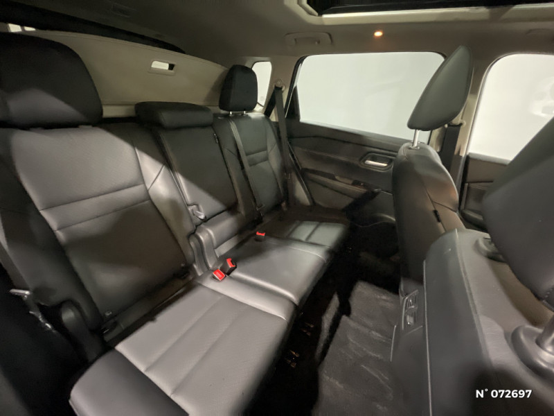 ABS (Système antiblocage des freins) avec EBD (Répartiteur électronique de freinage) / Accoudoir central AR avec porte-gobelets (2) / Accoudoir central AV avec ouverture papillon / Alarme périmétrique / Antenne aileron de requin / Technologie e-Pedal Step / Trappe de carburant sans bouchon / 6 crochets de fixation dans le coffre / Système d'alerte anticollision AR intelligent avec détection des objets en mouvement / Système d'alerte prédictif anticollision frontale / Système de navigation NissanConnect avec écran tactile 12,3" : Live Traffic et cartes 3D, Navigation porte-à-porte, Recherche par Points d'Intérêt, Google Street View, Vue Satellite et Météo, Mise à jour des cartes et logiciels, Prix des carburants, Commandes vocales avancées avec Amazon Alexa® / Système d'ouverture et de démarrage sans clé "Intelligent Key" / Frein à main électrique avec aide au stationnement/démarrage et fonction Autohold / Freinage d'urgence anticollision AR / Freinage d'urgence intelligent avec détection piétons, cyclistes et intersections / Hayon électrique avec ouverture mains libres / Kit de réparation pneumatique / Liseuses AV et AR / NBAS (amplificateur de freinage d'urgence) / Nissan AVM - Vision Intelligente à 360° / Nissan Connect Services / Ouverture des portières AR à 85° / Pare-soleil conducteur et passager avec miroirs de courtoisie, jalousies et éclairage / Plancher de coffre modulable / Sièges AV réglables électriquement avec fonction mémoire / Badges e-POWER / Boîte de vitesses automatique 1 rapports / Buses de ventilation AR / Cache-bagages amovible / Chargeur à induction pour Smartphone 15W / Combiné d'instrumentation digital avec écran 12,3'' TFT / Commandes au volant: contrôle de l'ordinateur de bord, audio, téléphone, régulateur et limiteur de vitesse / Compartiment pour lunettes de soleil / Console centrale flottante / Double port USB AR (USB-A et USB-C) / Double port USB AV (USB-A et USB-C) / Eclairage d'ambiance (console centrale) / Eclairage du coffre / Feu stop central LED / Feux de détresse à déclenchement automatique / Feux de route adaptatifs / Poignées de maintien pour passager AV et AR / Points d'ancrage pour sièges enfants ISOFIX à l'AR (x2) / Porte-gobelets AV (x2) / Prise 12V dans le coffre / ProPILOT avec Navi-link : technologie de conduite assistée / Rails de toit longitudinaux chromés / Régulateur de vitesse intelligent avec ajustement aux limitations de vitesse / Rétroviseur intérieur électrochromatique / Sécurité enfants sur les portes AR / Sélection du mode de conduite (ECO, STANDARD et SPORT) / Siège conducteur avec réglage lombaire électrique 2 voies